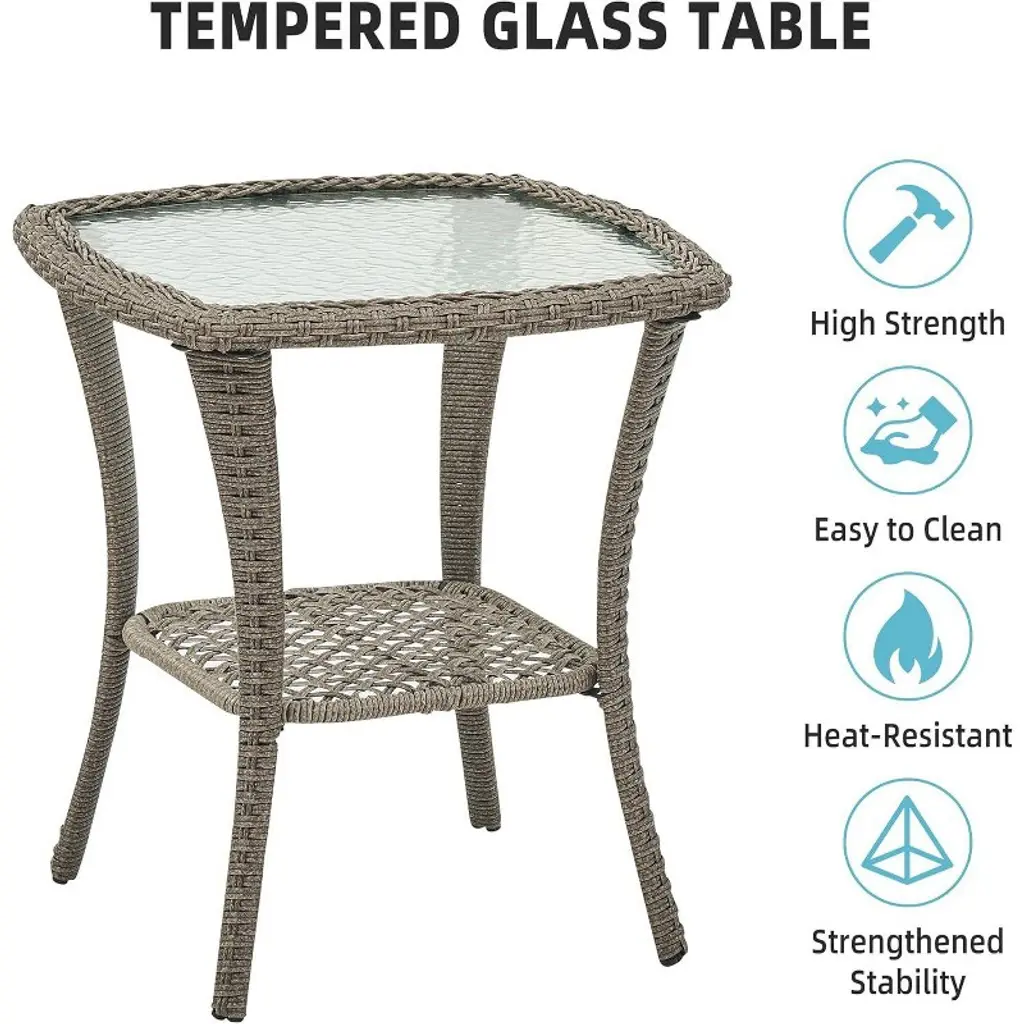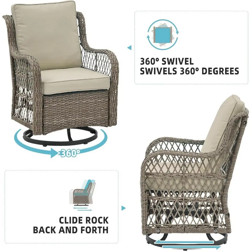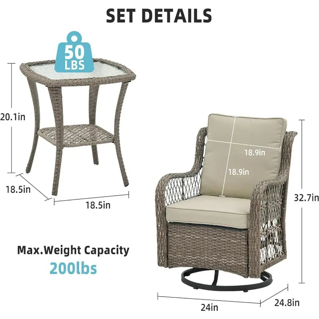 Acekool 3-piece Swivel Gray Rocker Set With Side Table & Beige Thick Cushions – Multiple Color Options For Patio, Porch, Or Poolside