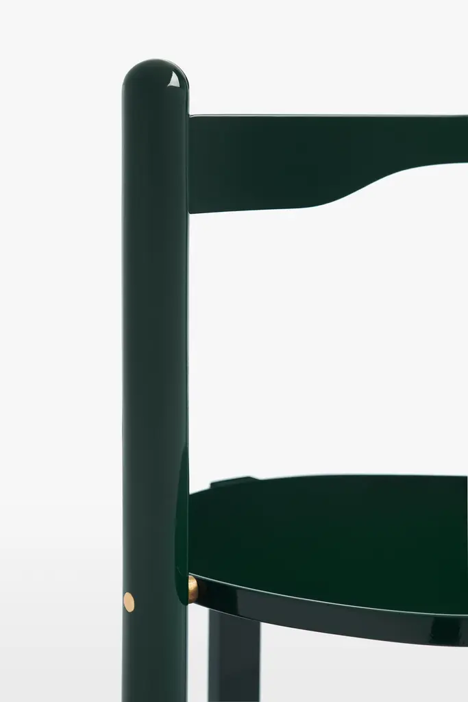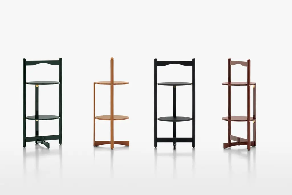 Designed in 1989 by Vico Magistretti, the side table model Florian it is now re-edited in new colors and dimensions while maintaining its function as a service table. Two-tier folding table, with a load-bearing structure in solid wood, and a particular folding system which allows a quick storage while taking up little space or to hang it like an artwork with a simple movement of the central foot. Available in semi-gloss laquered finishes in dark green, mustard yellow, brick red or in the particular open-pore brushed veneer in black ash. Contrasting natural brushed brass hinges and pins highlight the care and refinement of details.Born in Milan in 1920, Magistretti enrolled in the Faculty of Architecture at the Politecnico of Milan in 1939. Between 1943 and 1944 he moved to Switzerland, where he met Ernesto Nathan Rogers, a key influence on his education. He returned to Milan in 1945 where he graduated in Architecture from the Politecnico and immediately began his professional career. The 1950s were a fruitful period for Magistretti, who emerged as one of the most brilliant exponents of the “third generation”. Over the next few years he began working a lot more as a designer as well as an architect, creating furniture and objects which will always be “classics” of modern-day production.Additional Information:Material: Solid woodFrame finish: Glossy lacquered dark green LL22Dimensions: 39.2 W x 39.2 D x 84.2 H cmAvailable in other frame finish options: Black ash ES58, Glossy lacquered mustard yellow LL23, Glossy lacquered brick red LL24Available in other various options
