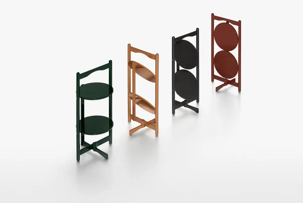 Designed in 1989 by Vico Magistretti, the side table model Florian it is now re-edited in new colors and dimensions while maintaining its function as a service table. Two-tier folding table, with a load-bearing structure in solid wood, and a particular folding system which allows a quick storage while taking up little space or to hang it like an artwork with a simple movement of the central foot. Available in semi-gloss laquered finishes in dark green, mustard yellow, brick red or in the particular open-pore brushed veneer in black ash. Contrasting natural brushed brass hinges and pins highlight the care and refinement of details. Born in Milan in 1920, Magistretti enrolled in the Faculty of Architecture at the Politecnico of Milan in 1939. Between 1943 and 1944 he moved to Switzerland, where he met Ernesto Nathan Rogers, a key influence on his education. He returned to Milan in 1945 where he graduated in Architecture from the Politecnico and immediately began his professional career. The 1950s were a fruitful period for Magistretti, who emerged as one of the most brilliant exponents of the “third generation”. Over the next few years he began working a lot more as a designer as well as an architect, creating furniture and objects which will always be “classics” of modern-day production.Additional Information:Material: Solid woodFrame finish: Glossy lacquered mustard yellow LL23Dimensions: 39.2 W x 39.2 D x 84.2 H cmAvailable in other frame finish options: Black ash ES58, Glossy lacquered dark green LL22, Glossy lacquered brick red LL24Available in other various options