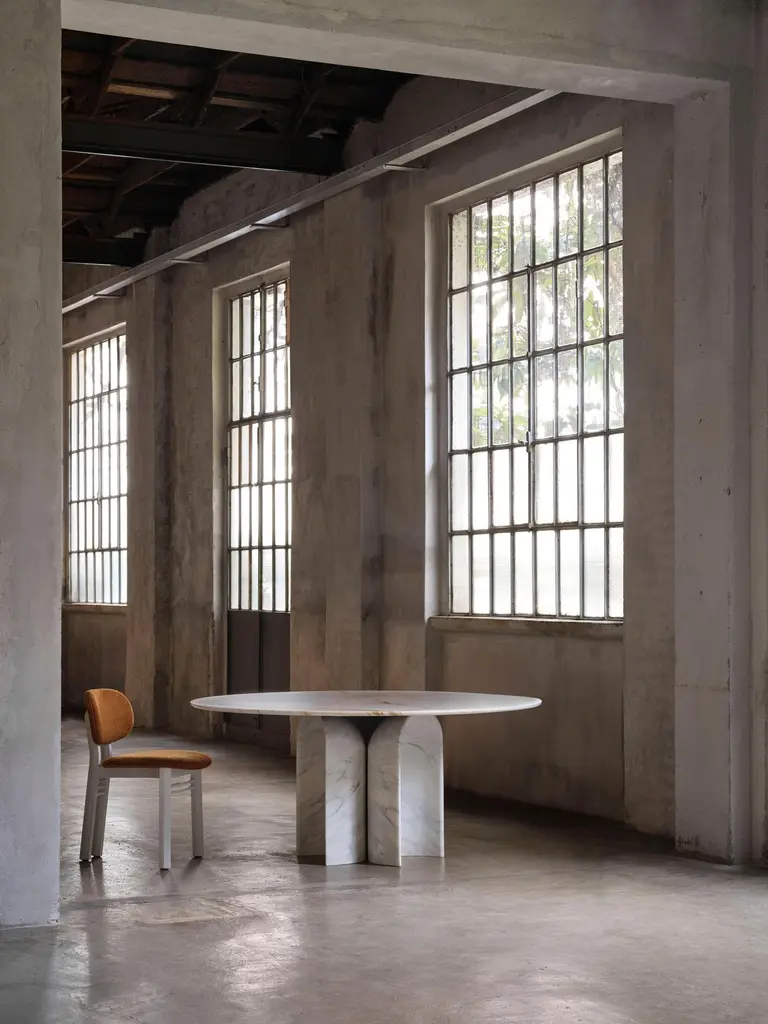 A perfect synthesis of material and form. Le Cupole, the newtable designed by Francesco Meda and David Lopez Quincoces,is a tribute to geometric purity and sculptural elegance.The base, composed of three marble-sculpted domes (cupolein Italian), supports the tabletop with architectural precision,creating a dialogue between stability and visual lightness.The curved surfaces and soft lines of the domes enhance thesense of symmetry and dynamism, while the refined detailsemerge in the rounded forms and brass inserts that enrich thecomposition.The carefully calibrated interplay of proportions accentuatesthe contrast between the solid presence of stone and theessentiality of the design, elevating the harmony between fulland empty, structure and surface.Structure and topThe table base is composed of three domes made from singleblocks of marble with a polished finish, joined together withbrass spacers and screws.The marble top with matt polyester finish is attached to the basewith a plate in black or matt white coated steel.FinishesMonomateric table_ top: matt Calacatta gold marble or matt Marquinia blackmarble. Thickness 20 mm._ base: polished Calacatta gold or Marquinia black marble._ under-top plate: coated in matt black for top in Marquinia blackmarble and matt white for top in Calacatta gold marble.DimensionsØ160 H72.5cmBase Ø67.7xH70 cm