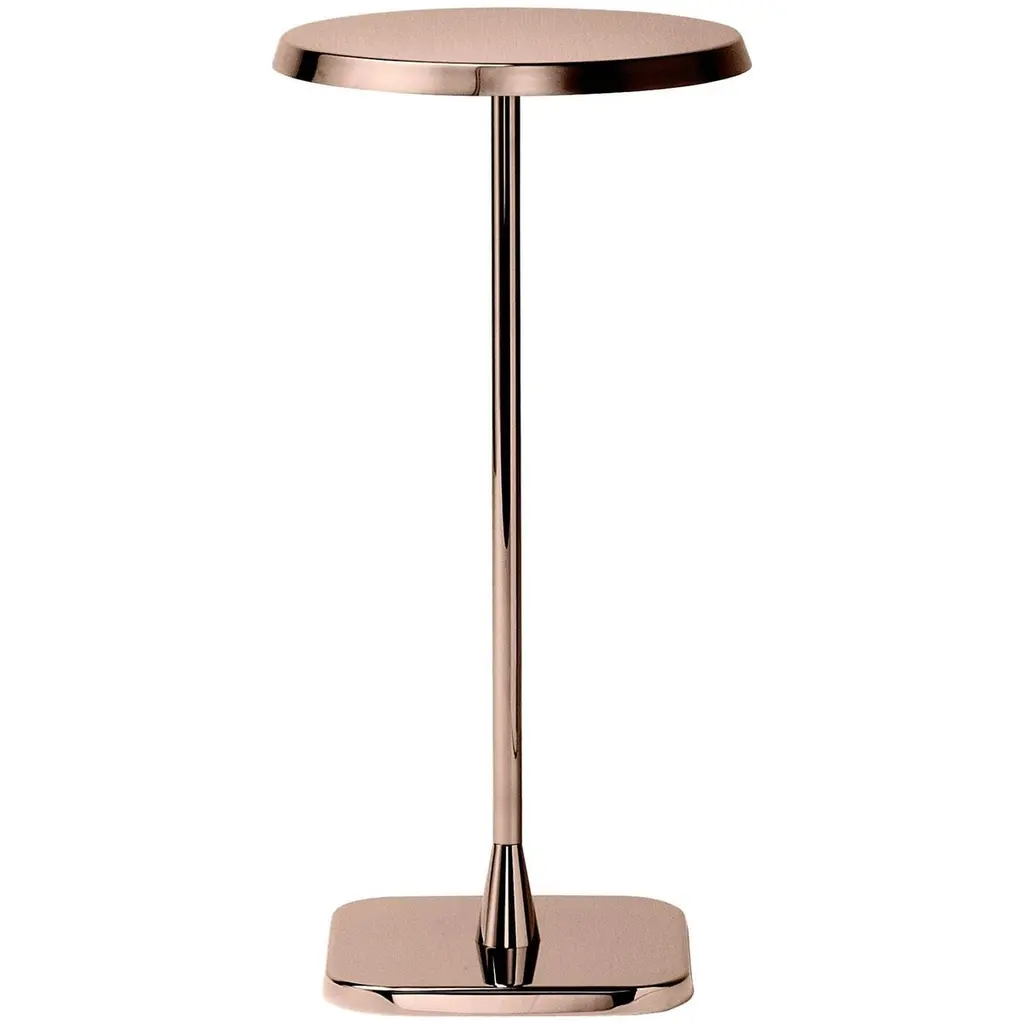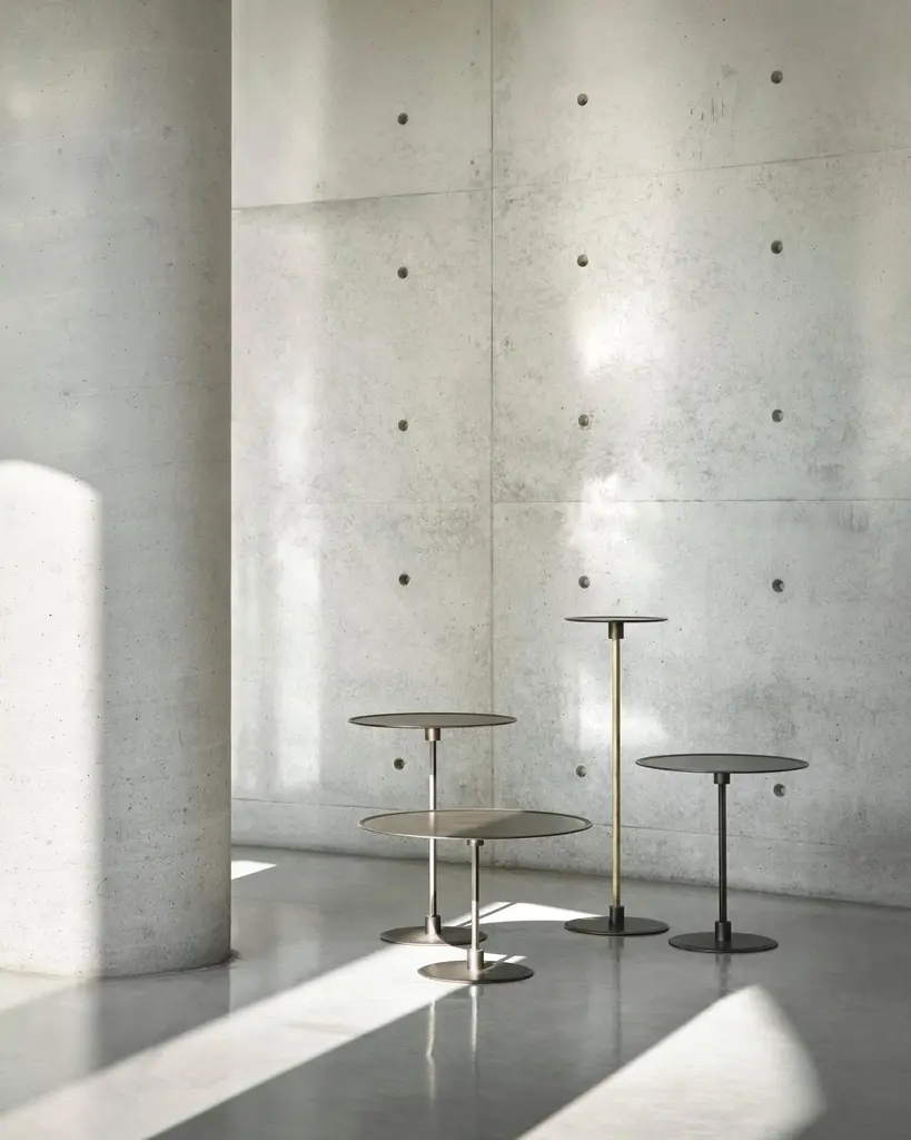 Architect Gianfranco Frattini signed Gong, which was unveiled for the first time in 1987.Gong is a range of round metal tables of formal simplicity and clean lines, which are available in various sizes and heights, and can be used individually or in groups.Today the collection is enriched with more contemporary finishes and an elegant two-colour version.Top and standThe two metal disks of different widths, one for the base and the other for the slightly concave top, are joined by a hexagonal stand through small metal spools. The side tables are entirely painted in gunmetal or an orbital bronze finish. The stand is in brushed brass for the two-coloured version and sharply contrasts with the two finishes.Orbital bronze: hand-brushed handcrafted finish to create the “scratched” effect.The difference between the coffee tables of the same finish is characteristic of the manual processing that can be susceptible to variations in tone and homogeneity.Sizes: Ø27 H80; Ø43 H45; Ø43 H55; Ø55 H35Gianfranco Frattini was born in Padua in 1926. He graduated with a degree in Architecture from the Politecnico di Milano in 1953. Frattini opened his own professional practice in Milan, after having worked in the office of his teacher and mentor Gio Ponti. In 1956 he co-founded ADI – Associazione per il Disegno Industriale – and throughout his career he practised both industrial design and architecture, focusing mostly on interiors. He was a board member of the Triennale di Milano. Great connoisseur of wood craftsmanship, he forged a long and fruitful professional partnership with the master craftsman Pierluigi Ghianda.Additional Information:Material: MetalTop finish: Matt painted orbital bronze MT14Frame finish: Brushed brass MT15Dimensions: Ø 43 x 45 H cmBase: Ø 27Available in other top finish option: Matt painted gunmetal MT13Available in other frame finish options: Matt painted gunmetal MT13, Matt painted orbital bronze MT14Available in other size options: Small, large, extra largeAvailable in other various options