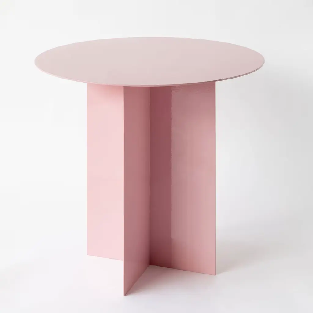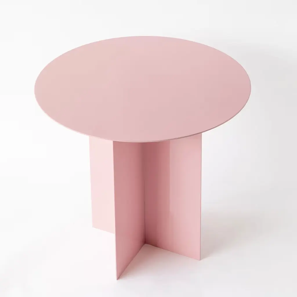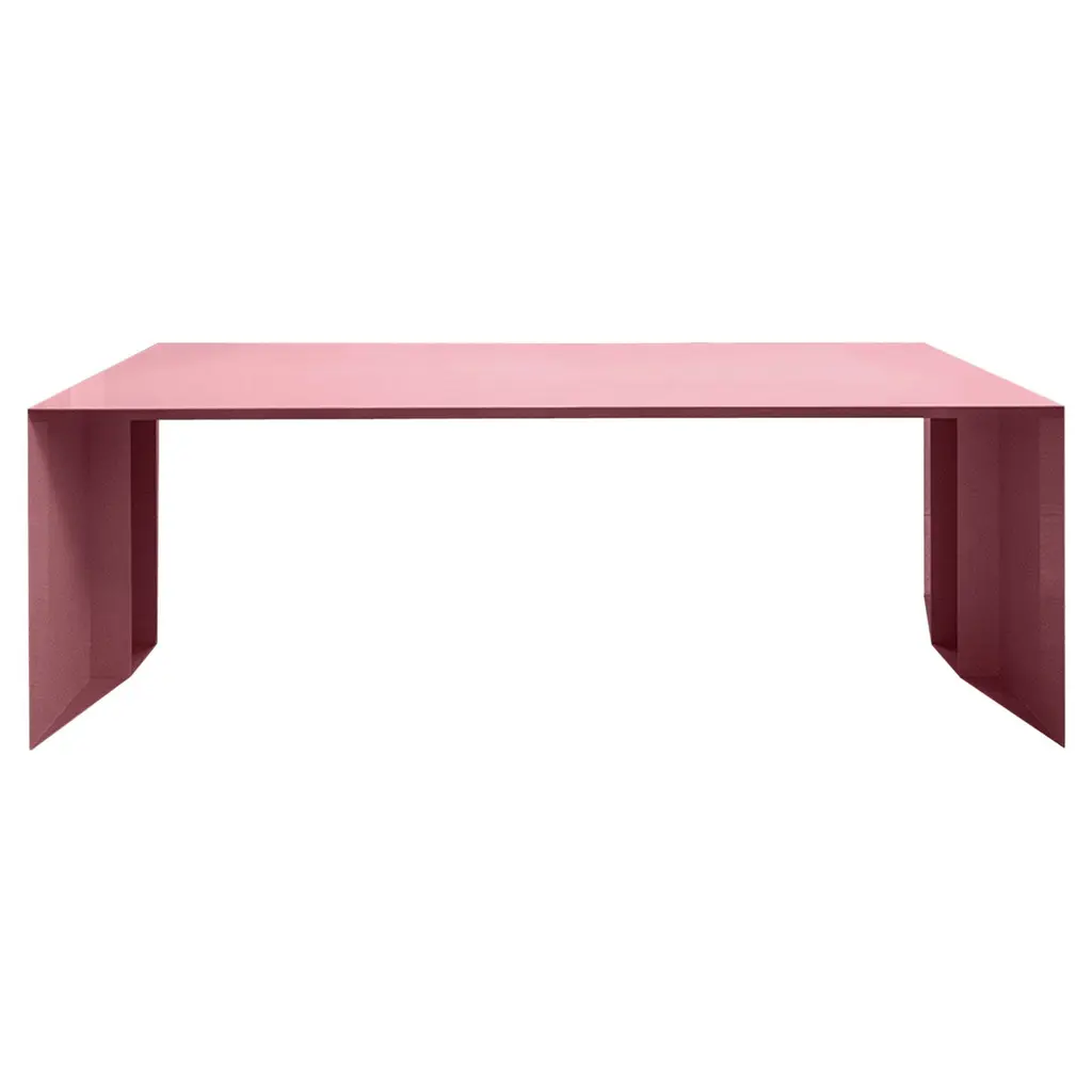 An iron origami that seems light, a game of cross-shaped forms and surfaces of any geometric shape define this collection of tables, characterized by a common color. The cross-shaped base fits any shape of the top, all produced with a 3mm metal plate of customizable color, a project in the making, a construction game in which the end user is free to create their custom table, a project within a project. Please, ask the Concierge Service for any dimensions and colors customization.