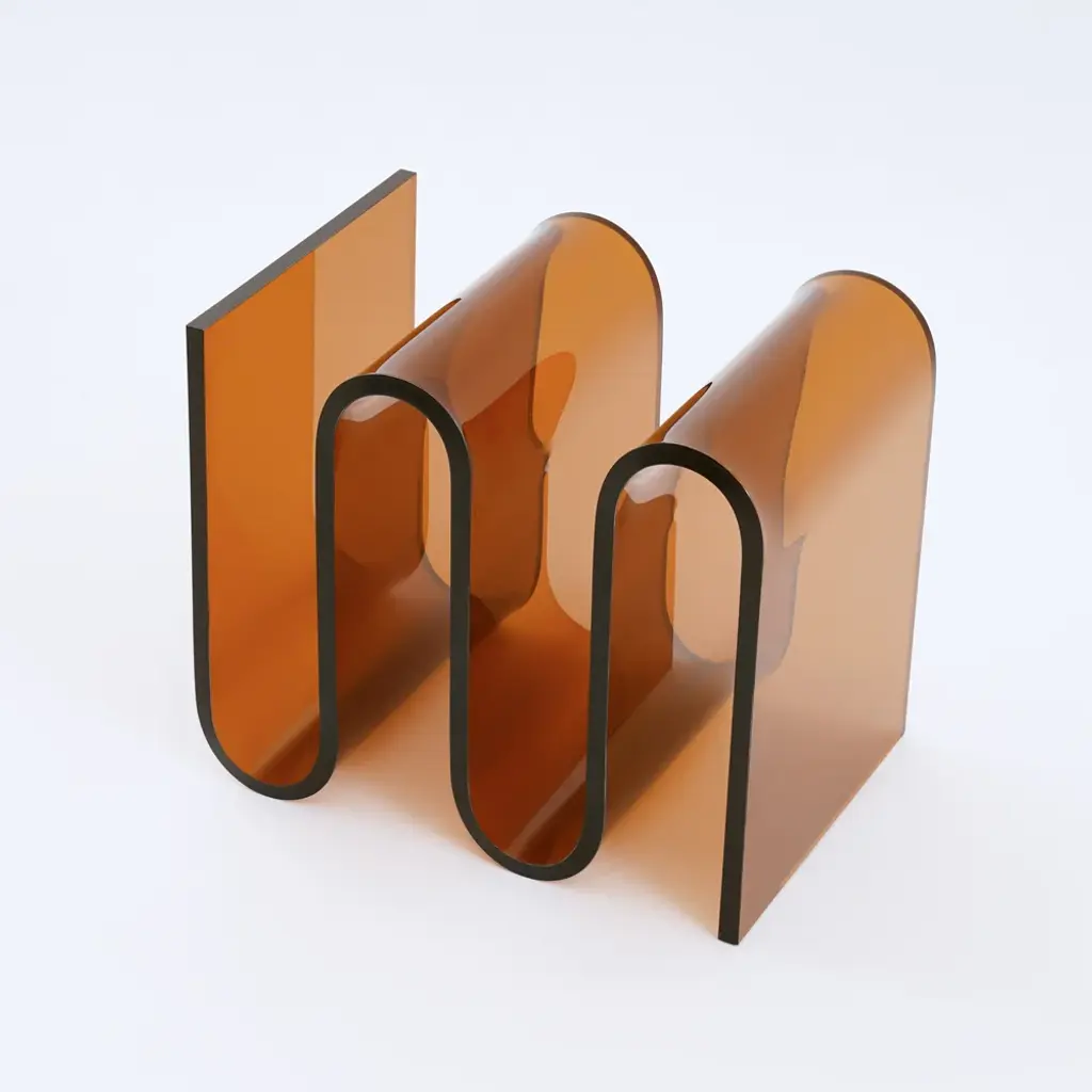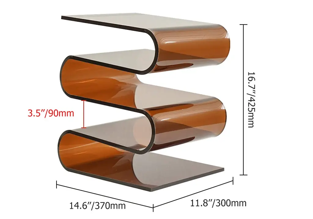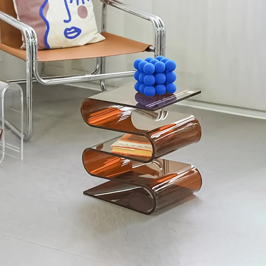 Acrylic End Table Tea Brown With Storage Wavy Shape Side Table