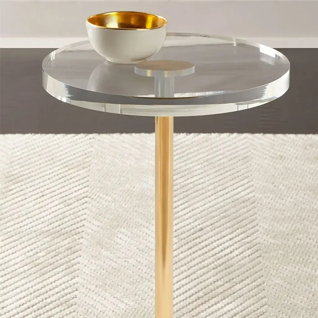 Acrylic Round Side Table Clear Stylish End Table Stainless Steel