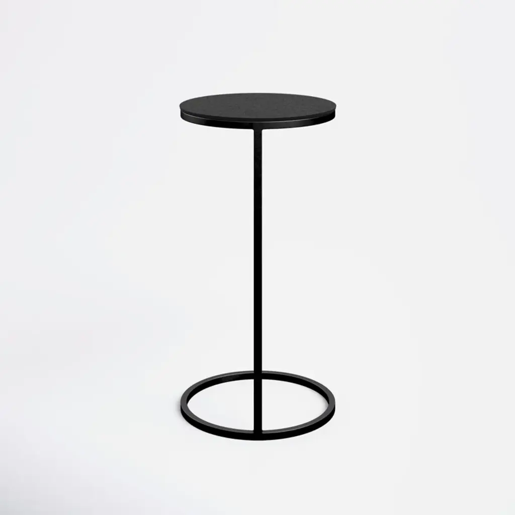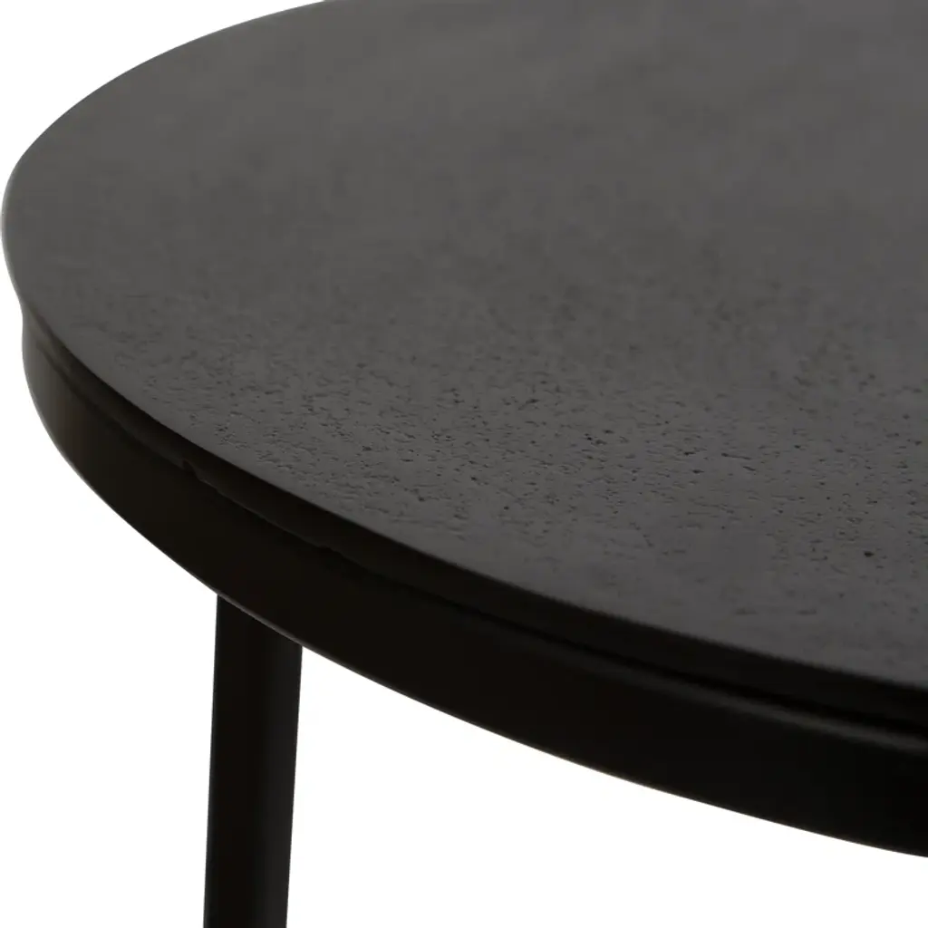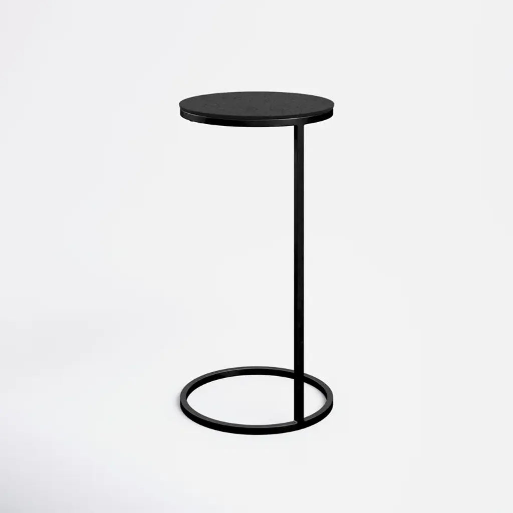 Minimal yet sophisticated, the Addie table displays a frame base in aged black iron with a cast-textured aluminum slab top.