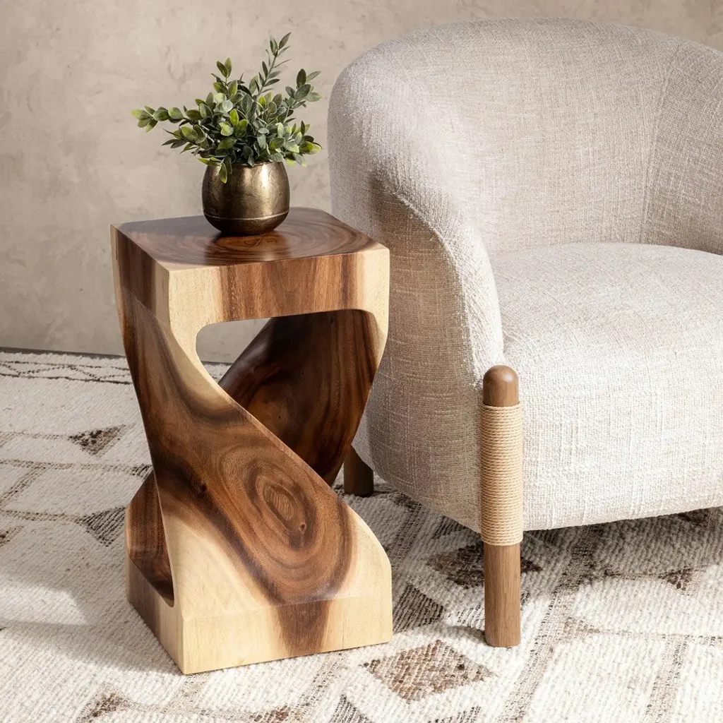 Adelyn Coastal Beach Natural Wood Square Side Table