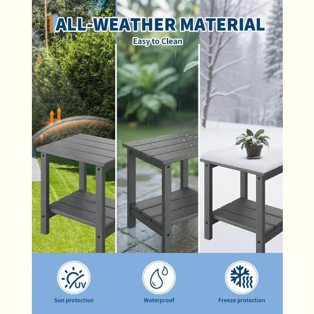 Adirondack Outdoor Side Table 18 X 15 Inch, Hdpe 2-tier Patio Side Tables For Outside,gray