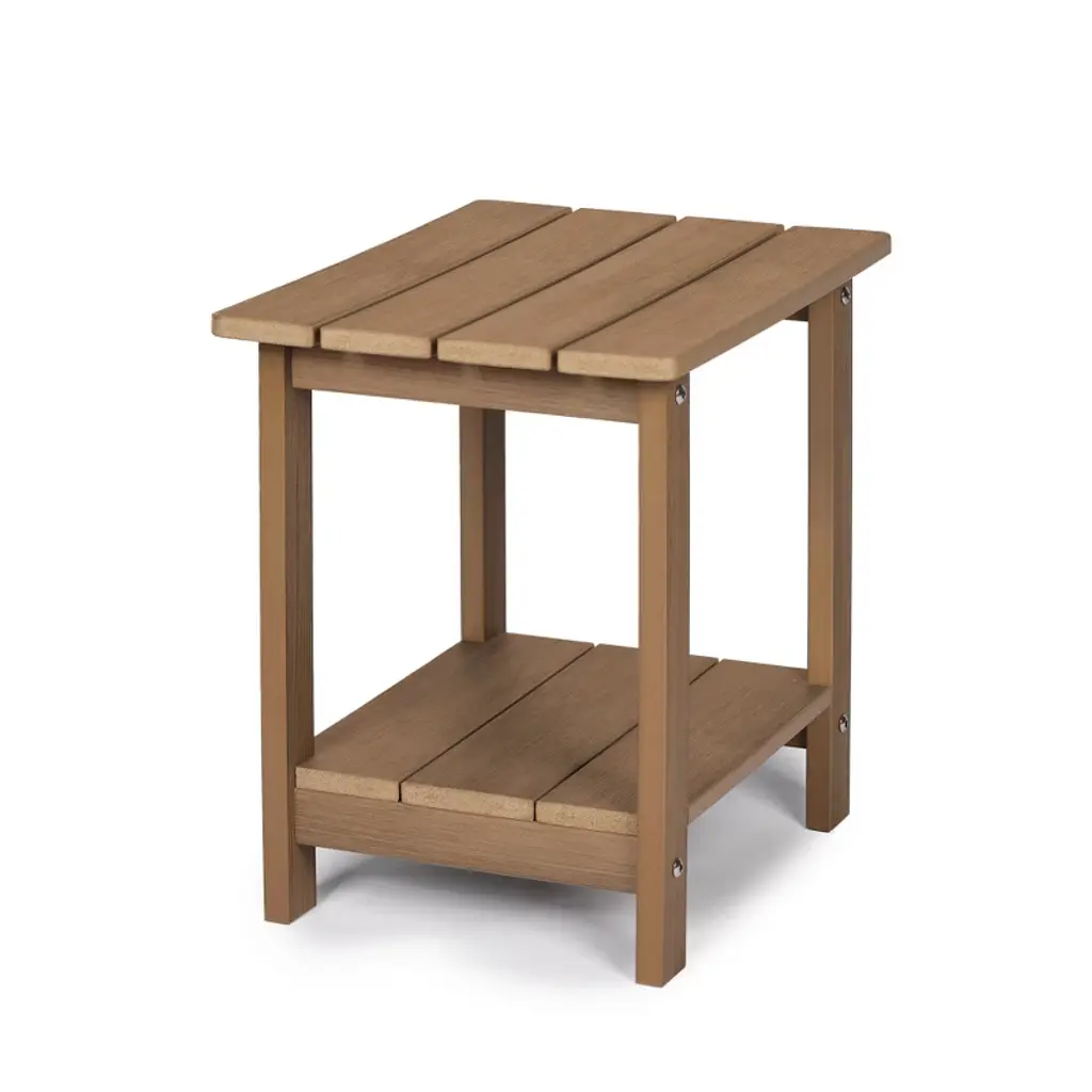 Adirondack Outdoor Side Table, 2-tier Brown Hdps Patio End Table Weather Resistant, Morden Side Table For Patio, Pool, Porch