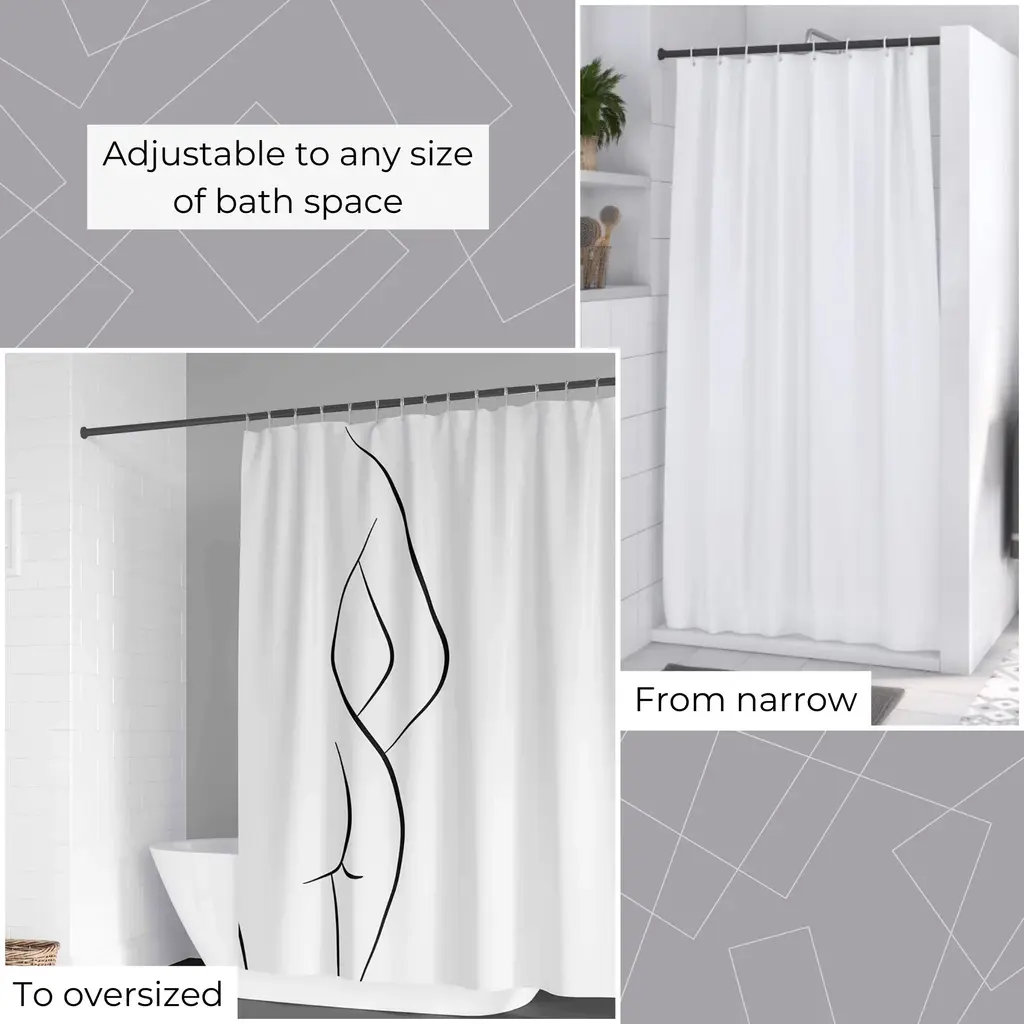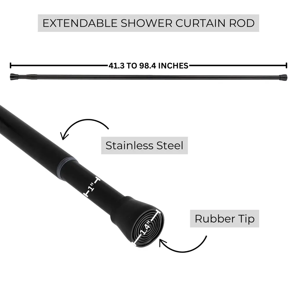 NO DRILLING REQUIRED: Easily install this tension curtain rod without tools or drilling. The spring system protects your walls from damage while ensuring a secure holdRUST-RESISTANT: Crafted from durable stainless steel, this curtain rod resists rust and corrosion, making it excellent for use in wet bathroomsEXTENSIBLE LENGTH: This adjustable tension rod extends from 41.3 to 98.4 inches with its screw-in bar design, perfect for a variety of shower or bath spaces, from standard to oversizedEASY ASSEMBLY: Features five screw-on bars and two screw-on tips, allowing you to adjust and secure the shower rod easily. Simply set the desired length and screw the bars togetherANTI-SLIP RUBBER TIPS: Equipped with rubber endings to provide a stable grip and prevent sliding, ensuring the adjustable curtain rod stays in place on smooth or textured surfacesUpgrade your bathroom with our Adjustable Shower Curtain Rod, a perfect blend of functionality and style. Designed with convenience in mind, this shower tension rod requires no drilling or tools during installation. Moreover, its rust-resistant stainless steel construction ensures long-lasting durability, even in wet conditions. Crafted for versatility, the tension shower curtain rod extends effortlessly from 41.3 to 98.4 inches. It adapts to most standard shower spaces and to oversized or custom shower spaces, such as those in larger bathrooms or walk-in showers. Additionally, the innovative spring tension mechanism keeps the rod firmly in place without slipping. For extra stability, the non-slip rubber tips on both ends provide a secure grip on any surface. For even greater ease of use, the screw-on bars allow quick, trouble-free assembly. Simply twist the bars together and adjust the length to your desired size. Furthermore, in white or black, it complements various bathroom decor styles, from modern to traditional. Not only functional, this tension shower rod is also multipurpose, perfect for hanging shower curtains, liners or light drapes. With its sturdy design and easy installation, this curtain tension rod makes redecorating simple and stress-free. Choose our extra long tension rod to enjoy a hassle-free and stylish solution for your bathroom needs.