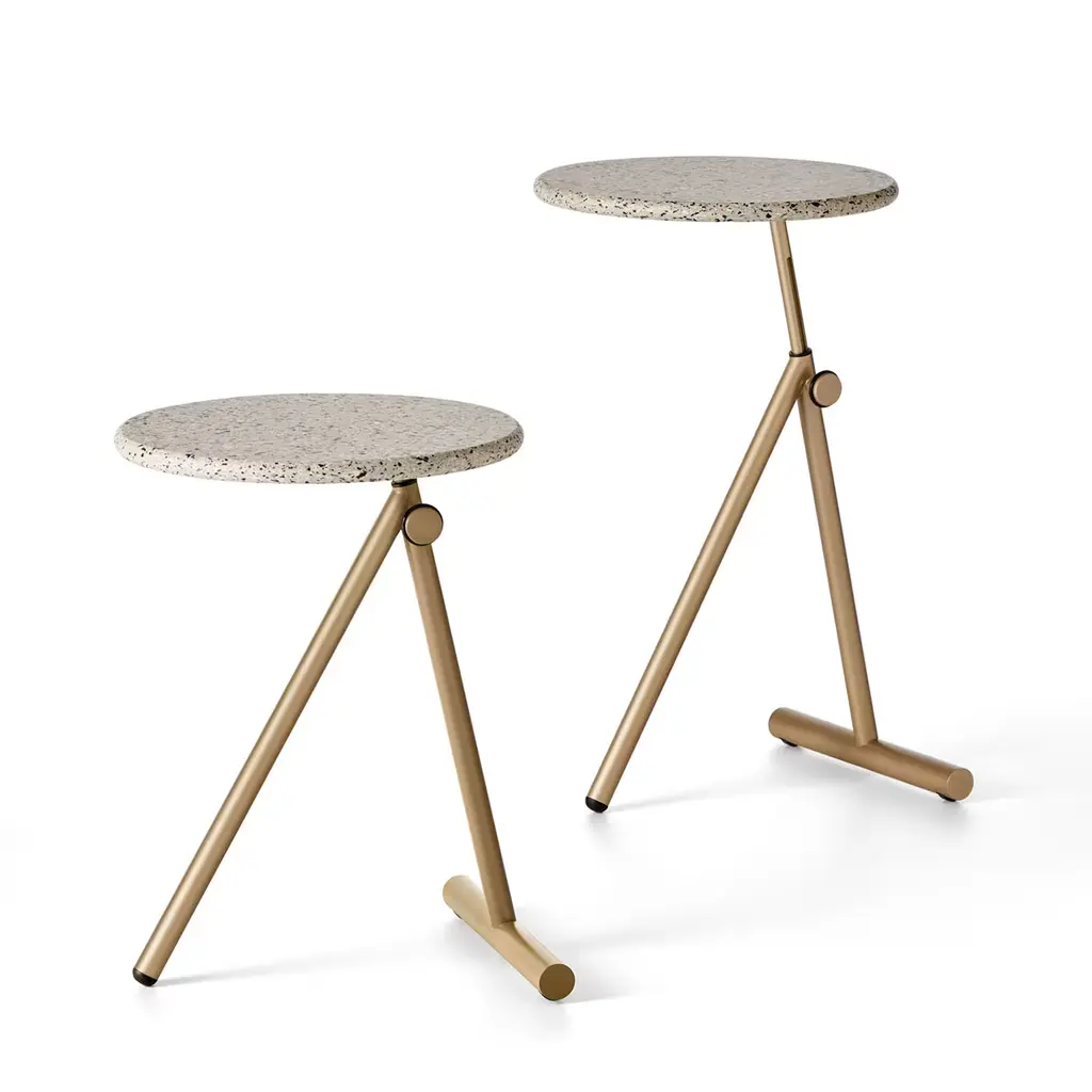 Elevate your living space with this adjustable side table, a perfect blend of functionality and modern design. This table features a sleek, adjustable height mechanism, allowing for versatile use in various settings from bedside companion to stylish accent piece. Crafted with eco-friendly materials and a gold finish, it offers durability while contributing to sustainable living. The convenient wheels provide effortless mobility, making it easy to reposition as needed. Enjoy the perfect combination of style and utility with this exceptional piece.