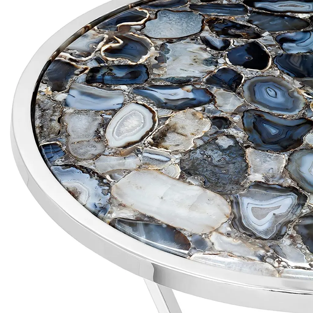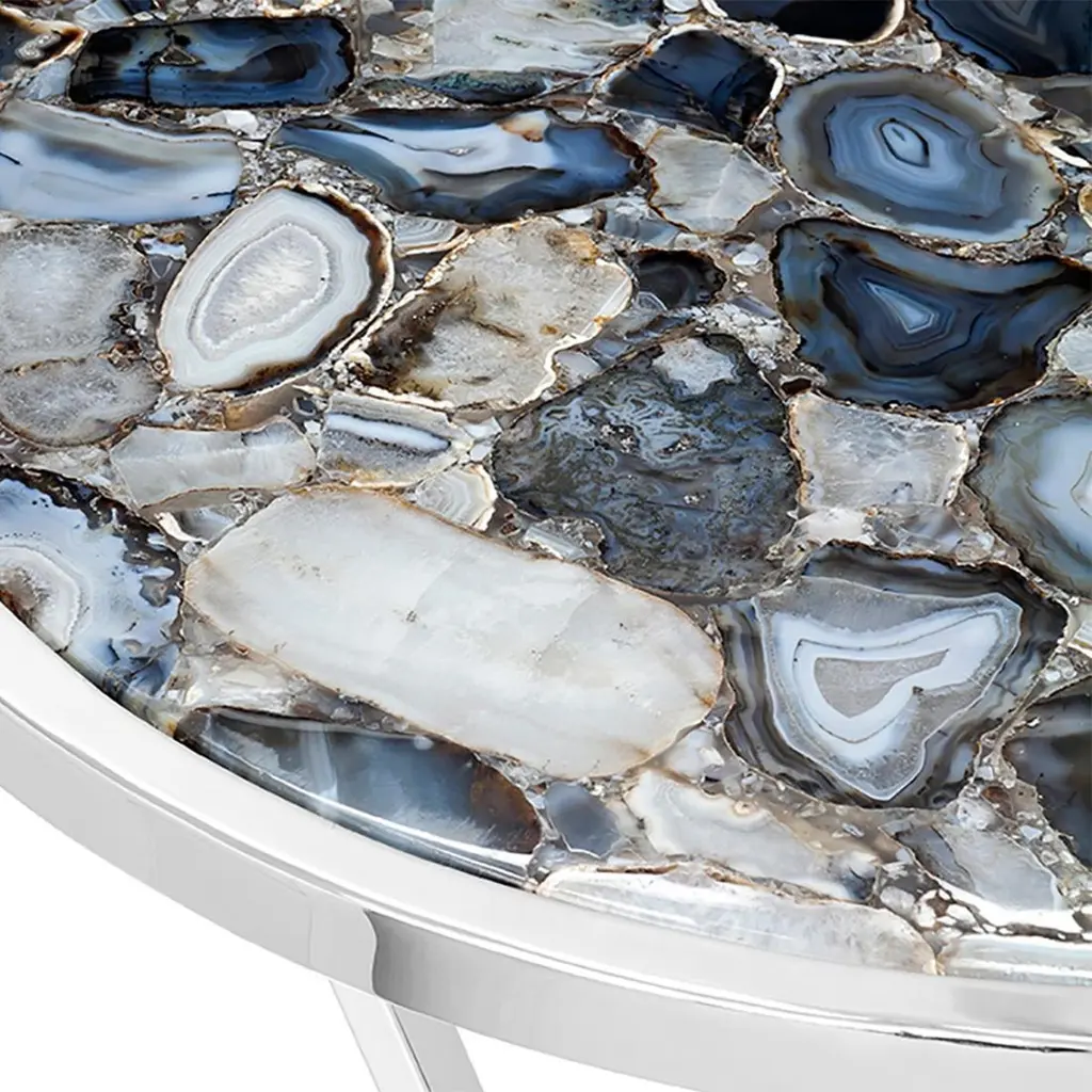 Side table Agate blue with real agate stone topwith polished stainless steel top frame. On polishedstainless steel base (non foldable base).