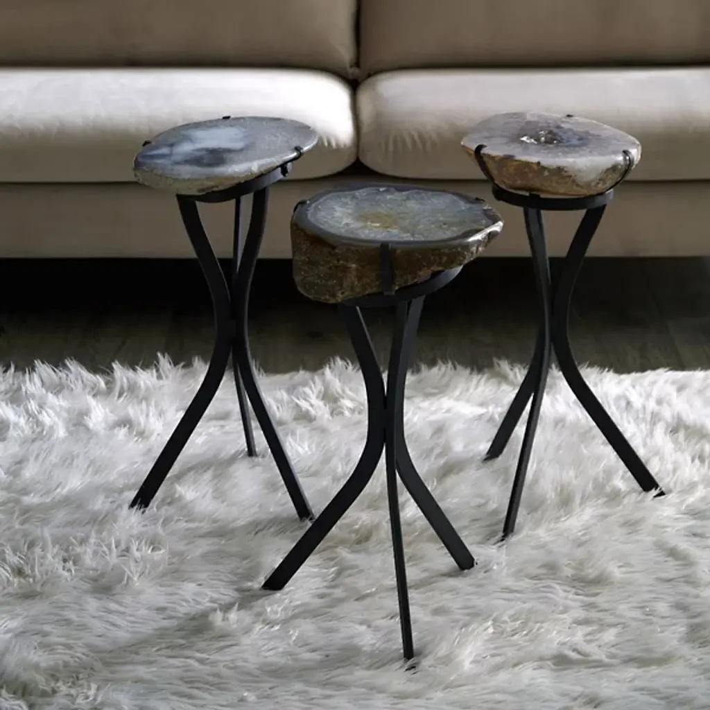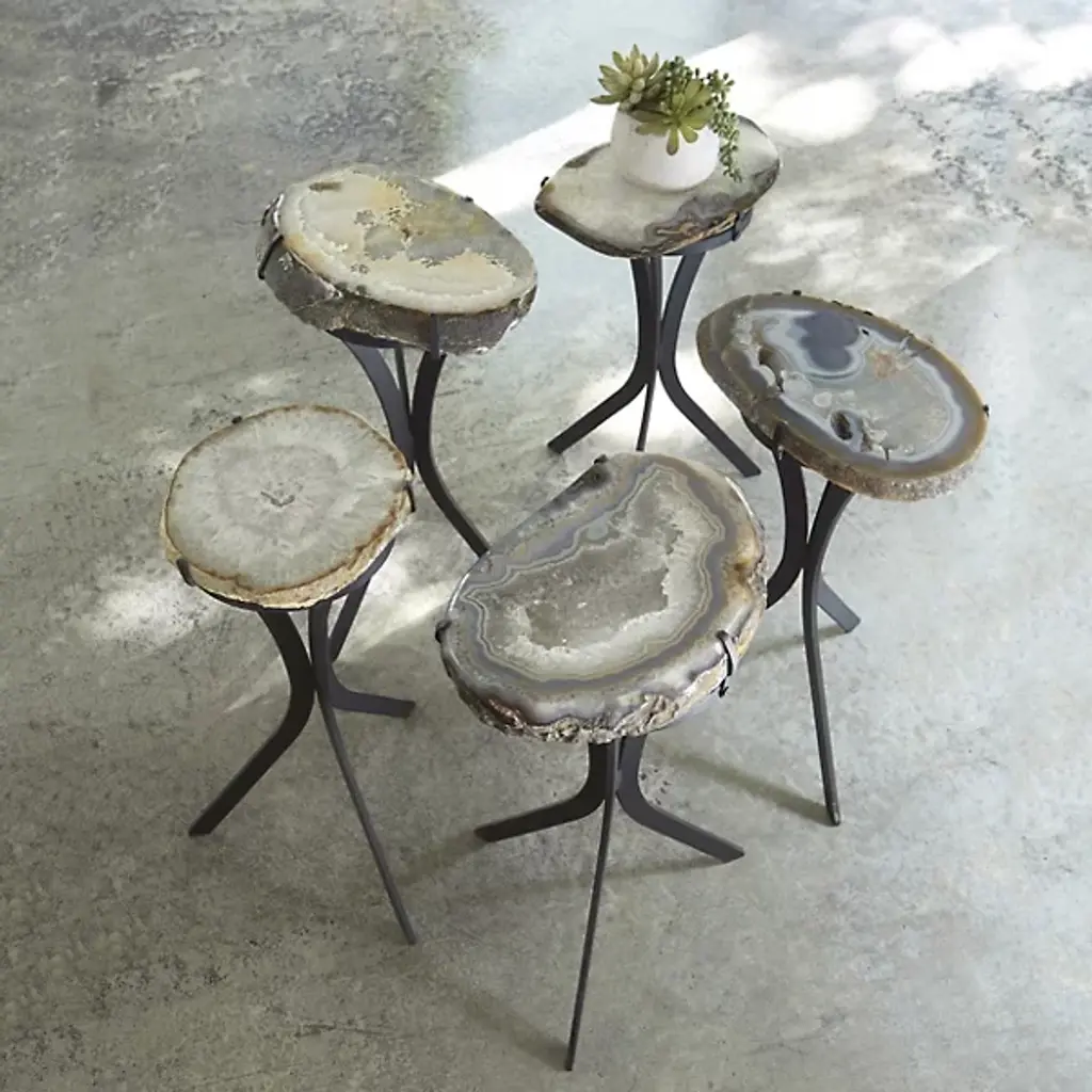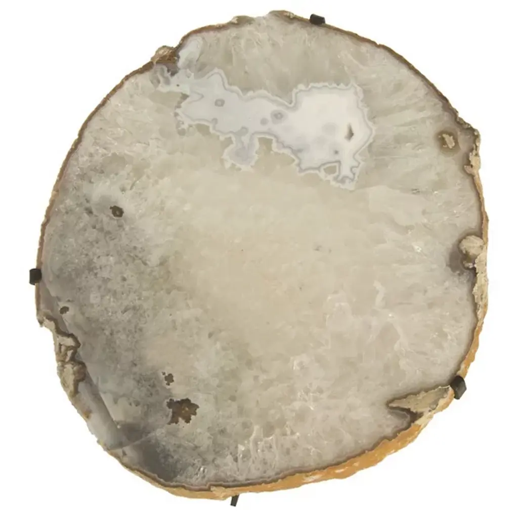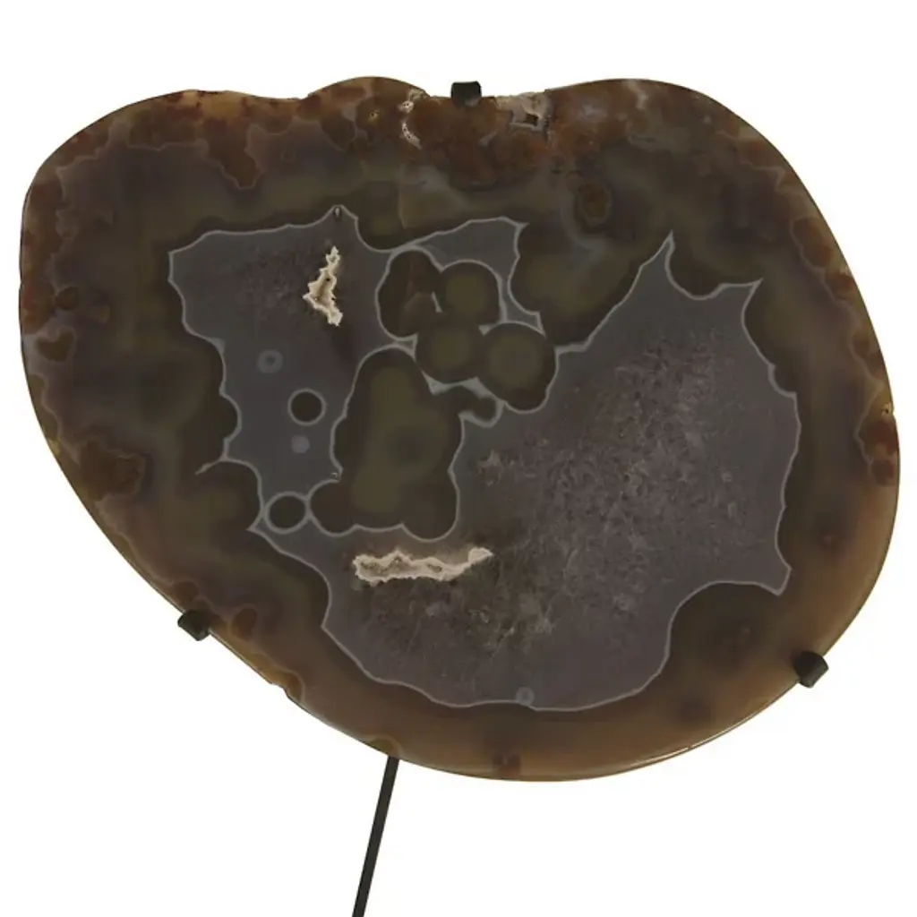 The Agate Side Table from the Phillips Collection captures the beauty of natural stone in a striking, rustic-modern design. Made in Brazil, this stunning piece features a smooth, hand-cut agate stone top, showcasing the unique grains and vibrant colors found in volcanic rock formations. Its iron base provides sturdy support, while each table retains organic variations in color, texture, and shape, ensuring every piece is one-of-a-kind while offering a welcoming character to its surroundings.
