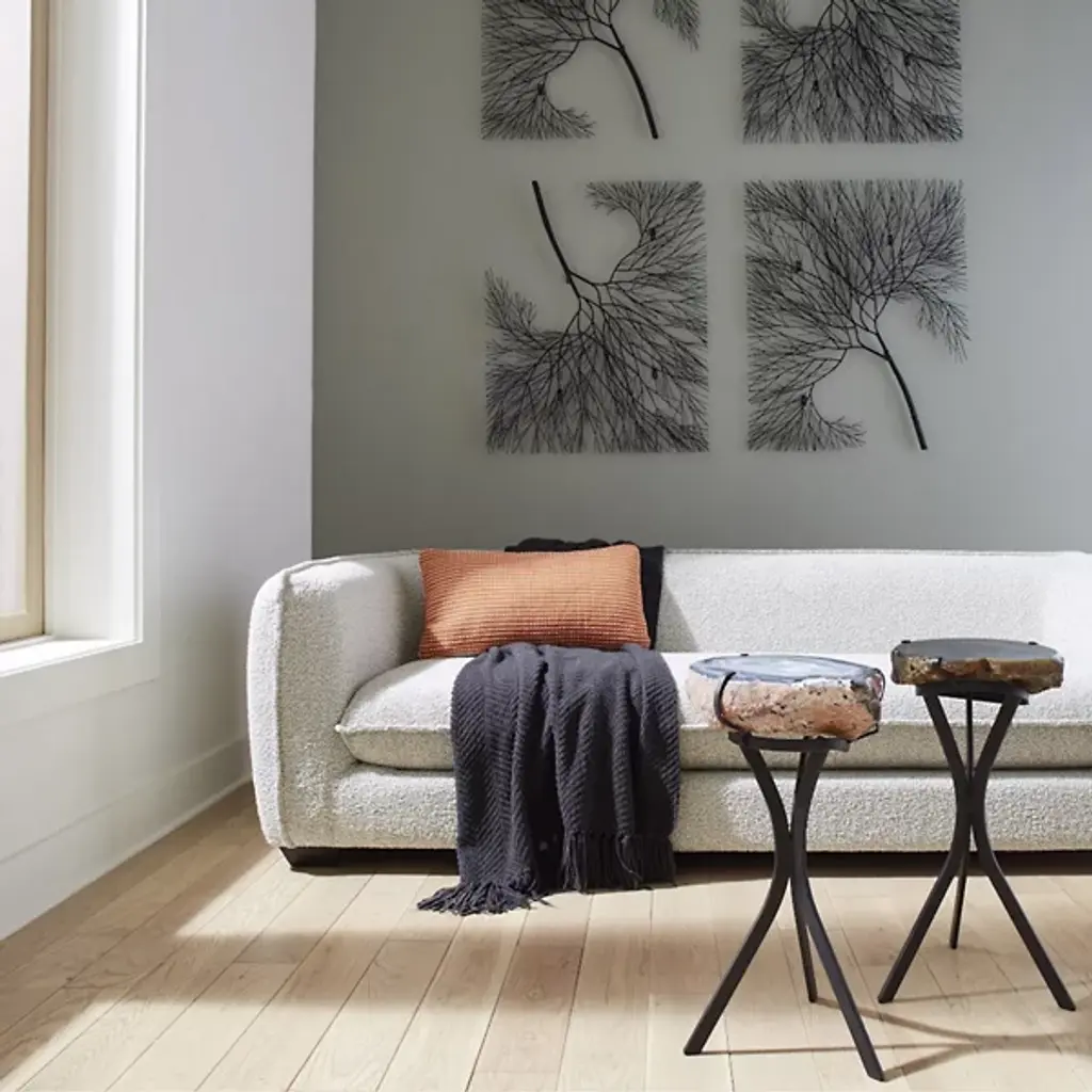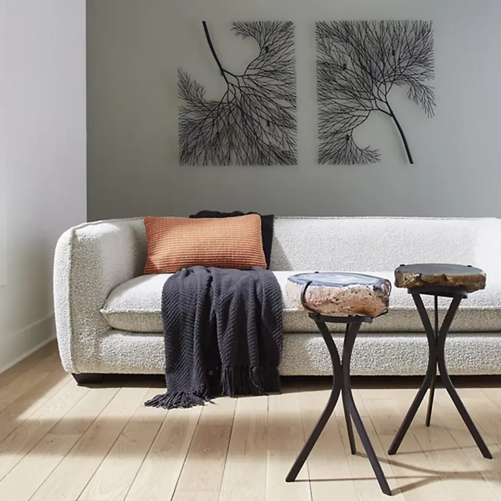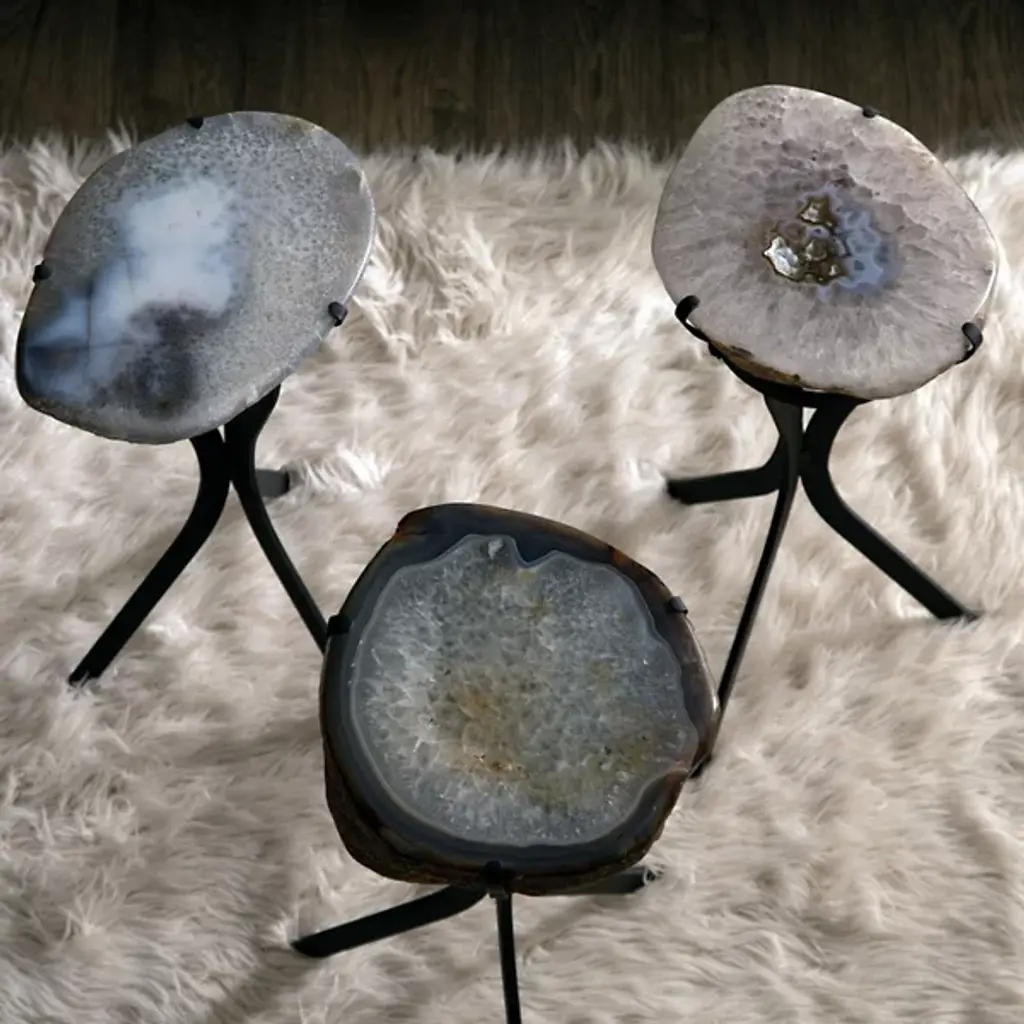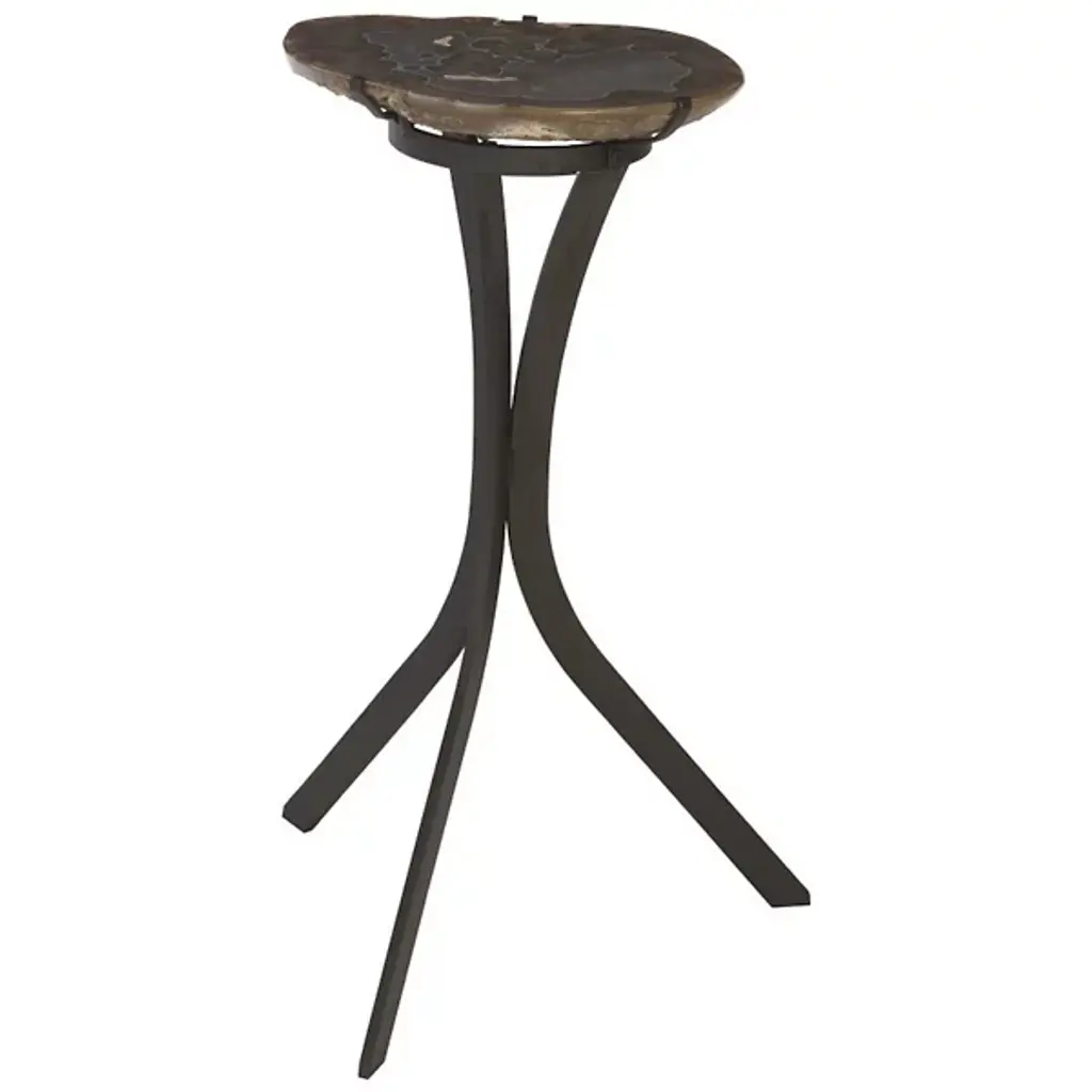The Agate Side Table from the Phillips Collection captures the beauty of natural stone in a striking, rustic-modern design. Made in Brazil, this stunning piece features a smooth, hand-cut agate stone top, showcasing the unique grains and vibrant colors found in volcanic rock formations. Its iron base provides sturdy support, while each table retains organic variations in color, texture, and shape, ensuring every piece is one-of-a-kind while offering a welcoming character to its surroundings.