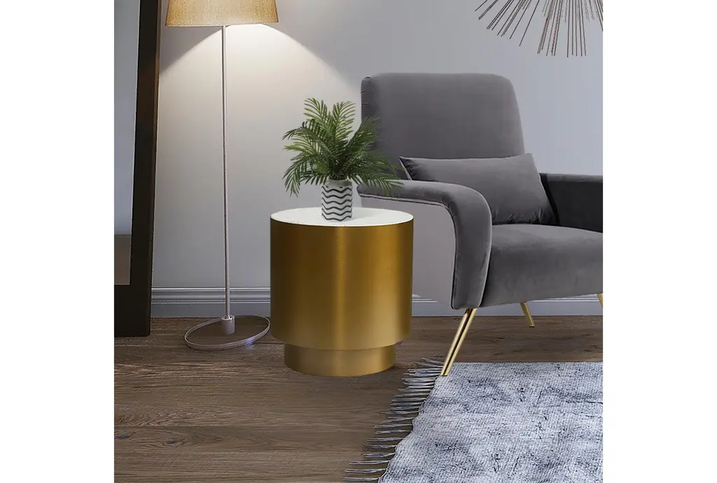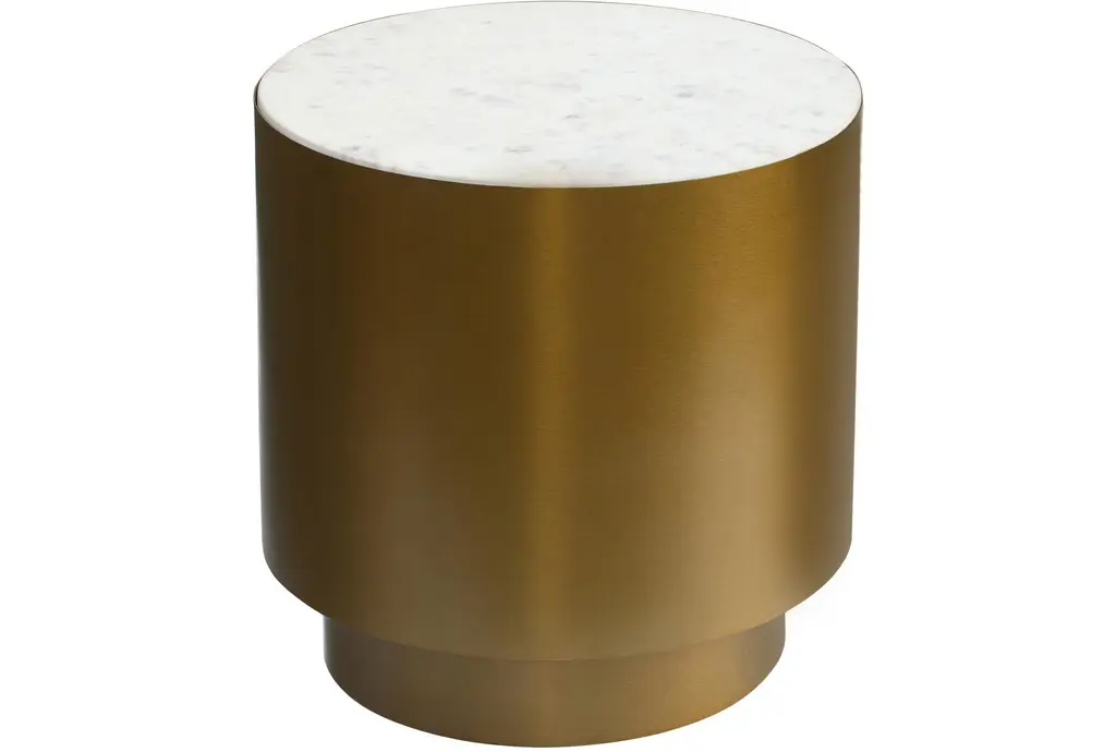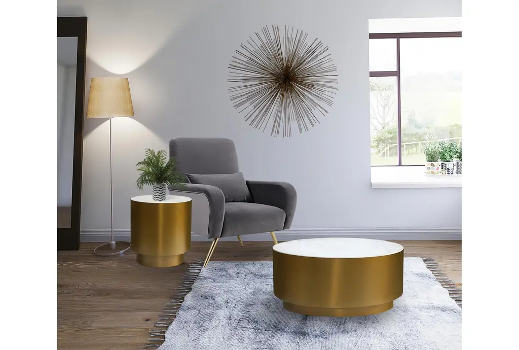 The Agatha Modern 20" Brushed Gold + Marble Top Round End Table is a stunning addition to any living room. Its modern design and luxurious materials make it a standout piece that combines both style and function. This table's round shape and marble top create a sophisticated look that is perfect for any contemporary space.