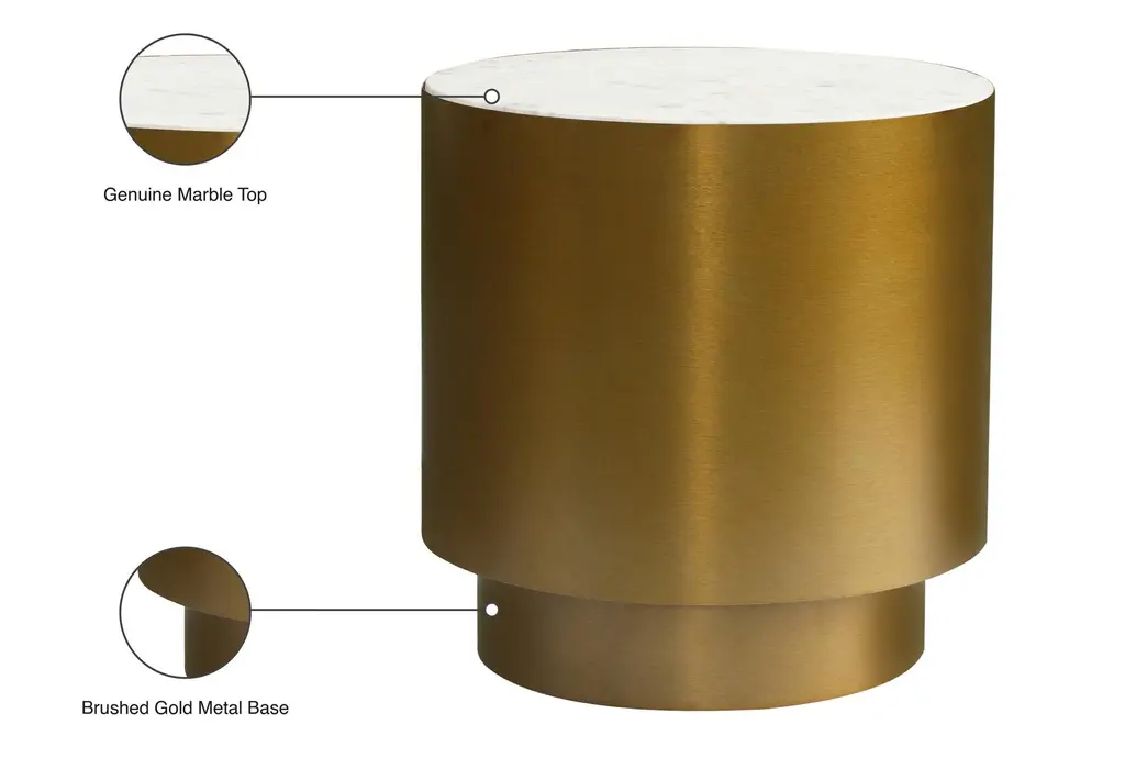 Agatha Modern 20" Brushed Golod + Marble Top Round End Table