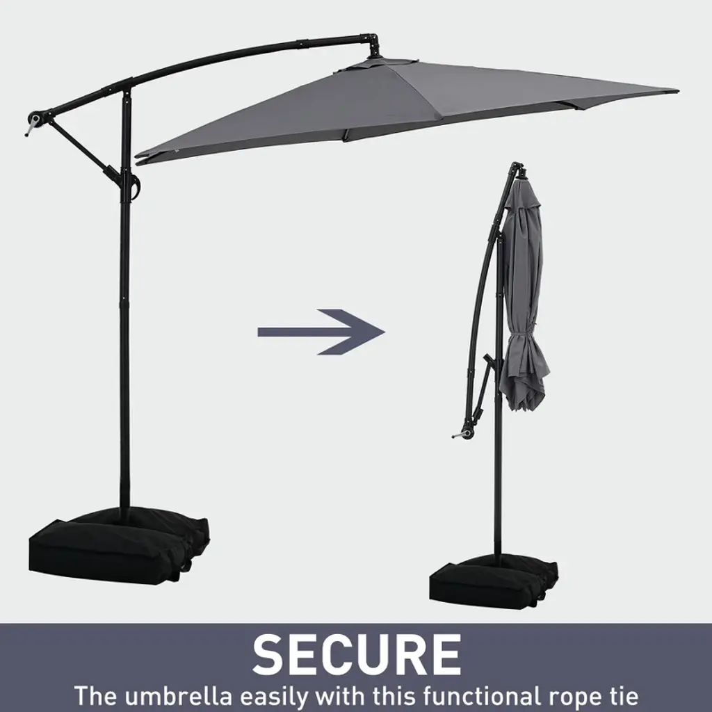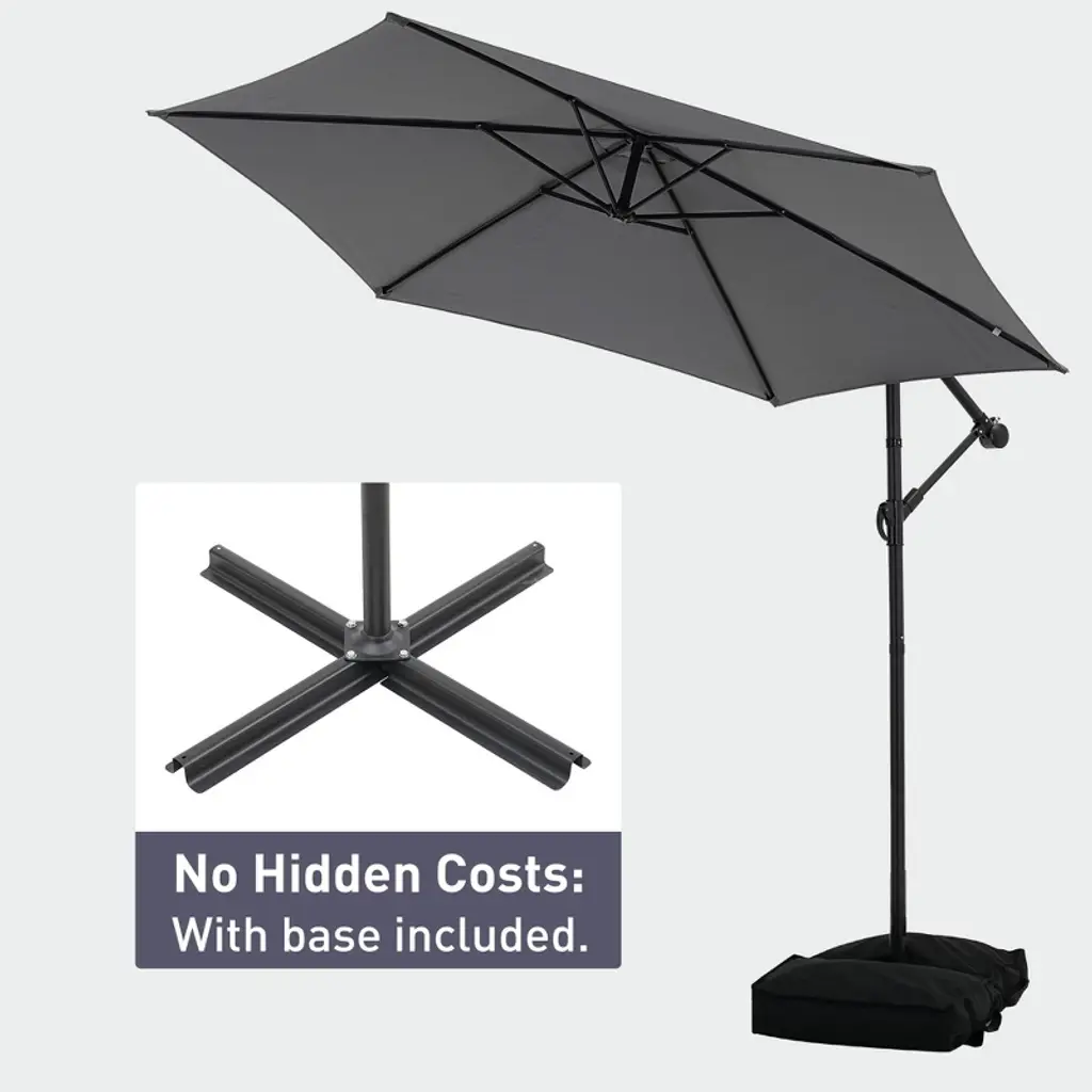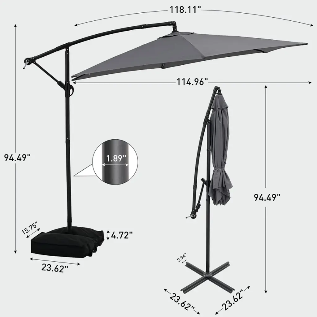 Patio Offset Umbrella Material: Steel, Polyester Package size: 46.1*12.6*6.5inch Gross Weight:25.4lbs Net Weight:23.8lbs Height of Umbrella:94.49” Width of Umbrella:23.62”