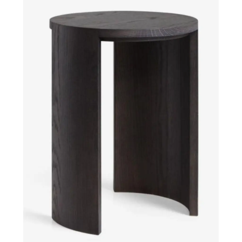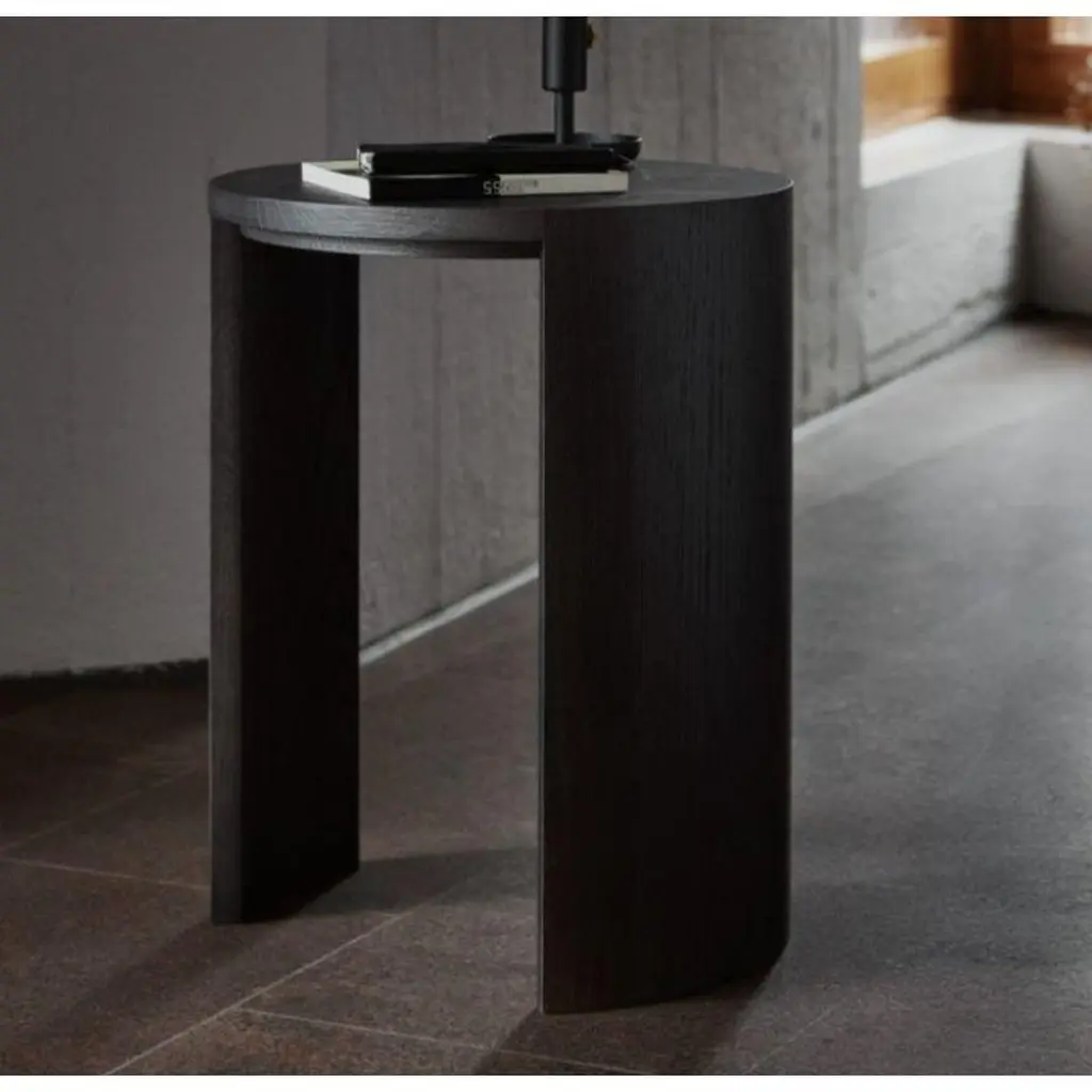 Airisto side table, black by Made By Choice with Joanna LaajistoDimensions: D35 x H45 cmMaterials: solid ash. Finishes: natural ash / painted blackAlso available: natural & custom order.The Airisto collection’s furnishings are multifunctional – they can be used as a side table, stool and a bench. The natural ash accents the beautiful features of the wood. In addition to the light wood, the other colour option is stained black, which highlights the shape of the product, representative to Laajisto’s work. ”A good product has to fit in different environments from the modern and minimalist to rich and classical,” explains Laajisto. The simple and modest design language of the Airisto furniture emphasizes the asymmetric shape of the foot structure.About Made by Choice: Nordic Happiness. Nordic Happiness is our grand theme and guiding star. Studies show that Nordic people are among the happiest on Earth. Nordic happiness is composed of authentic values and sustainable choices. The vision of Choice is based on the added value of collective creation while promoting sustainable Nordic values through authentic design. Rooted in the traditions of Finnish woodworks, Made by Choice is a creative powerhouse of collaborative thinkers, believers and makers, establishing a global brand for the 21st century. Committed to producing durable, bold and innovative designs, we combine contemporary woodworking methods and modern technology. Halikko is home to our 4000 square metre campus where we turn abstract concepts into tangible objects. Our team in our office in Helsinki coordinates all operations and installations. Made by Choice's agile, purpose driven approach means all new products are developed on demand, for a specific project and need, and carries the authentic story of it's reason of existence. Our products are developed and manufactured at our own factory in south-western Finland by some of the best craftsmen in the world. Choice is inspired by heritage and Nordic urban lifestyle. We are driven to explore the boundaries of our discipline to create new narratives. Choice collaborates with leading designers and ambitious interior architects on site-specific projects to create new urban spaces.Choice was founded by Lasse Laine, Sebastian Jansson and Niclas Ahlström – based on the common vision and mutual values to create a distinctive, value-driven brand and a new design heritage.
