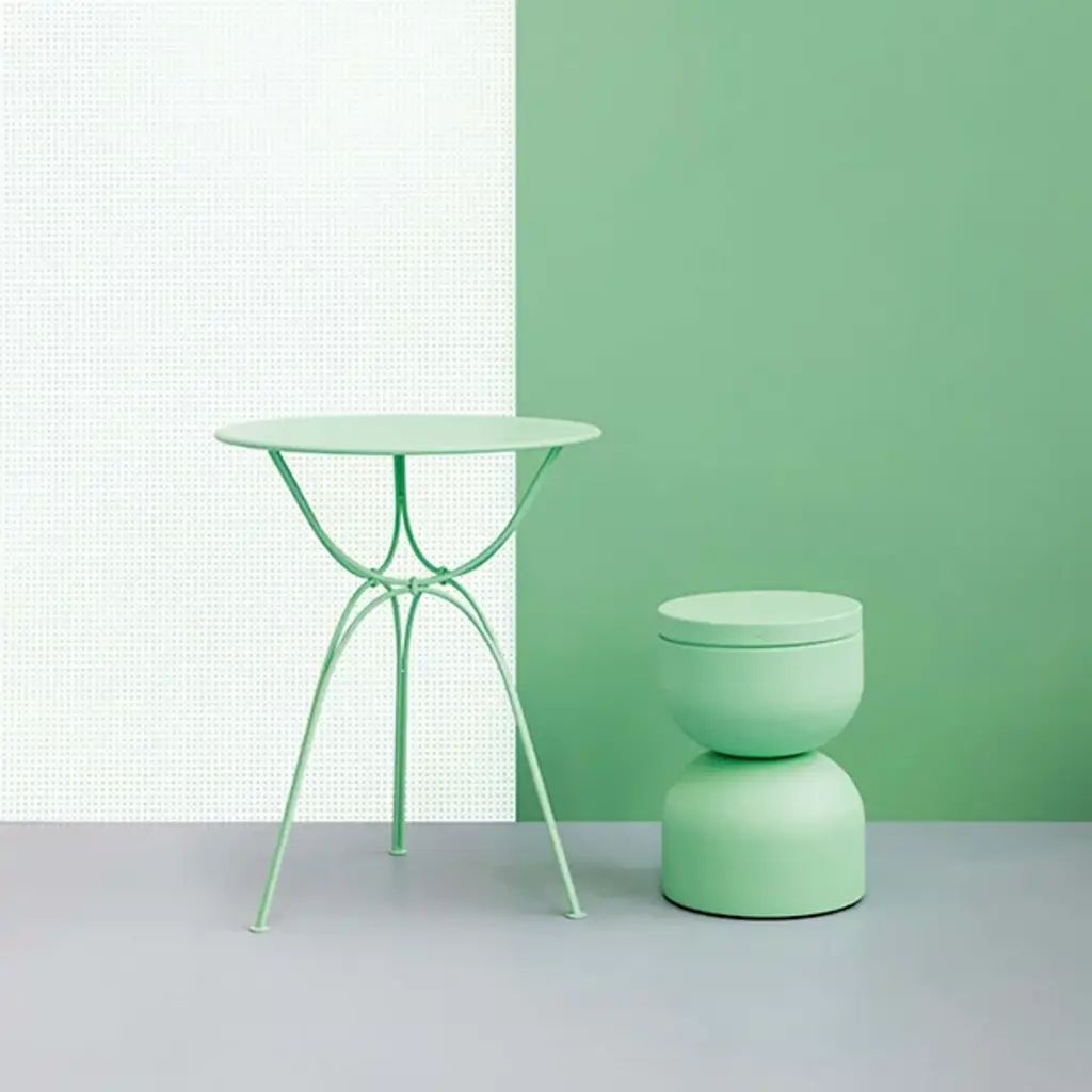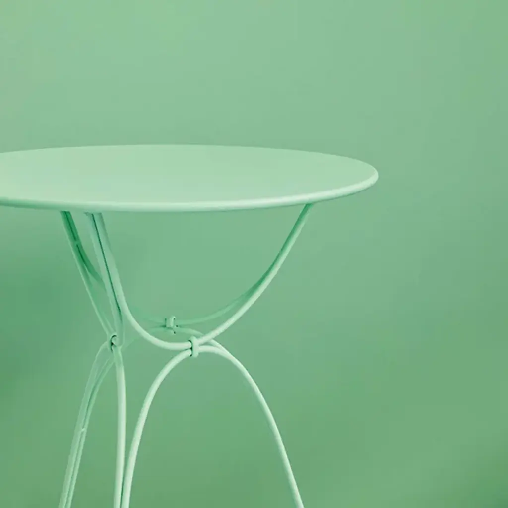 A beautifully airy and delightfully loopy table for 2. Designed by Frederic Sofia, the Airloop Round Table by Fermob features delicate-looking curves of steel, accented with petite hand-forged rings. The resulting 3-legged base is perfectly stable and strong in supporting the round steel sheet top. A powder coated polyester finish and rubber feet offer protection from light impacts and weather, making this petite table a welcome addition to a romantic patio or garden setting.