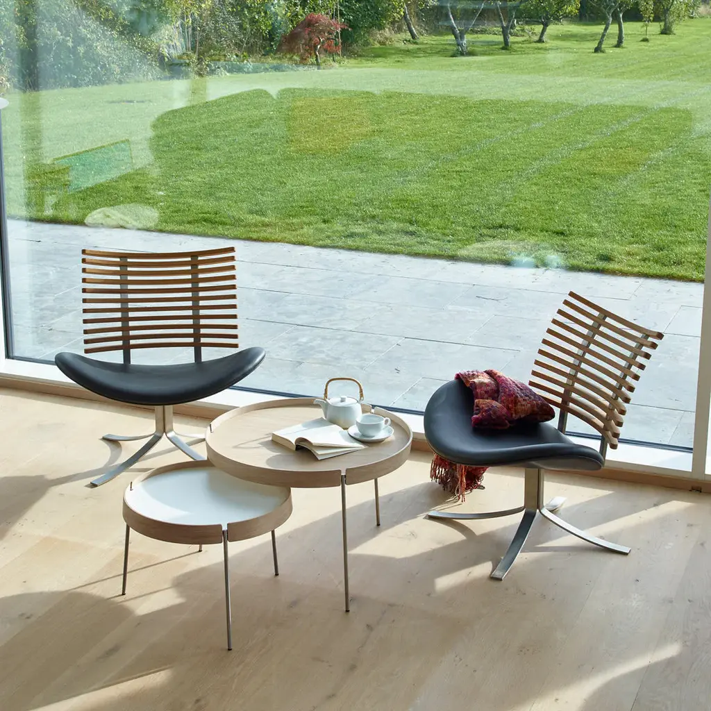 AK 710-50 Turn Table Designer: Nissen & Gehl MDD Manufactured by: Naver Collection Dimensions (in): see Options below Turn Table - a small, dainty tray table. Flexible and mobile. Use as a coffee table, side table or as you like. Pick up the tray and go. An innovative and surprising detail is the two sides of the top. Wood on one side with colored laminate on the other.