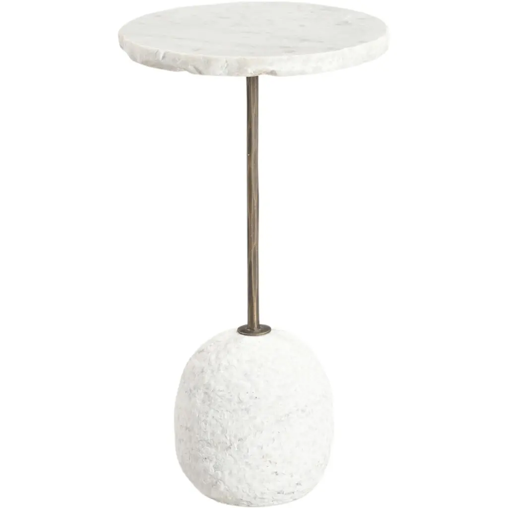 The Albert Accent Table embodies modern sophistication with its unique design and high-quality materials. Its spherical marble base perfectly complements the live-edge marble top, creating a stunning focal point for any room. The solid iron frame adds a touch of warmth and elegance to the overall aesthetic. Crafted with attention to detail, this accent table showcases the natural beauty of marble with its sandblasted texture and distinctive live-edge feature.