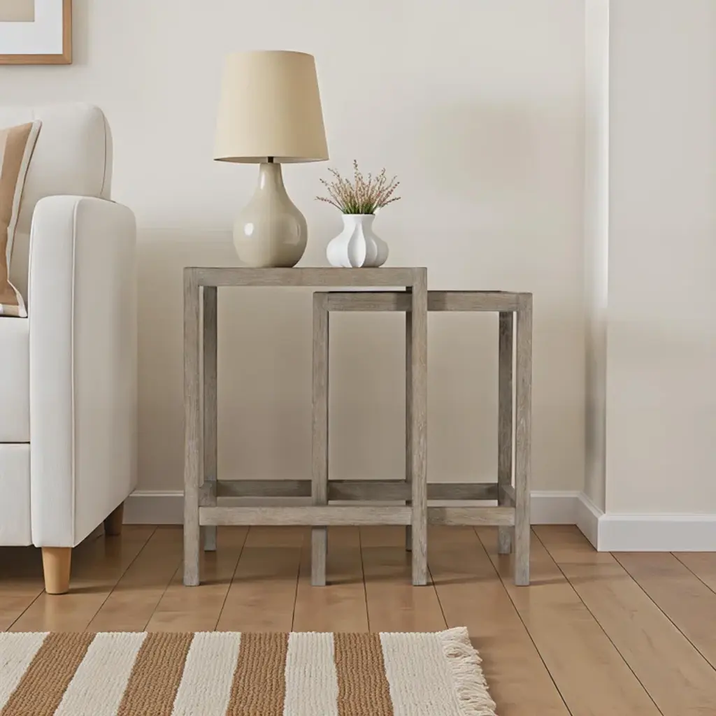 Connectivity through form and function is the compelling key to the Albion nesting tables. Clean lines are crafted with wire-brushed and cerused white oak that add texture and rustic elegance to the frames and gallery-style tops. Designed by Bernhardt, the tables can be used together for an extended tabletop, or individually when an extra surface is needed. And when space is at a premium, the smaller table quickly tucks out of sight under the taller one.