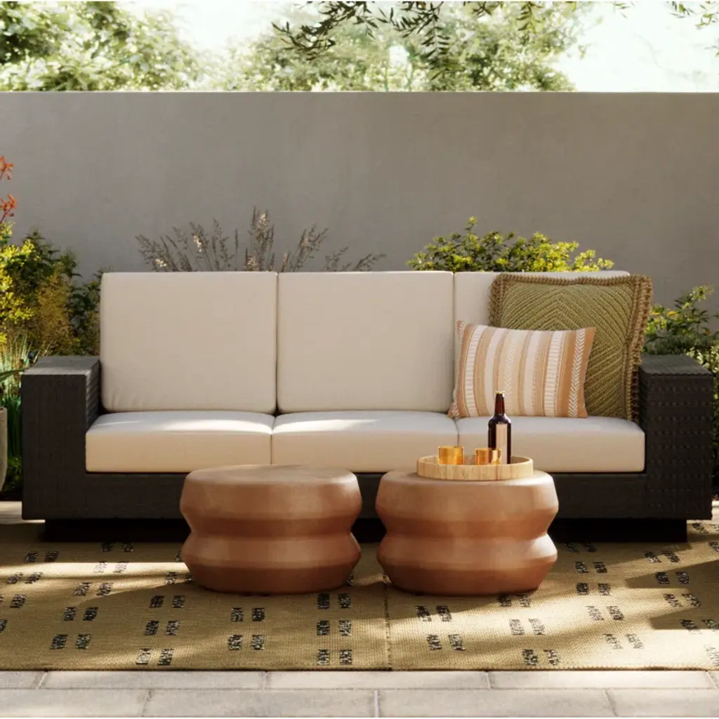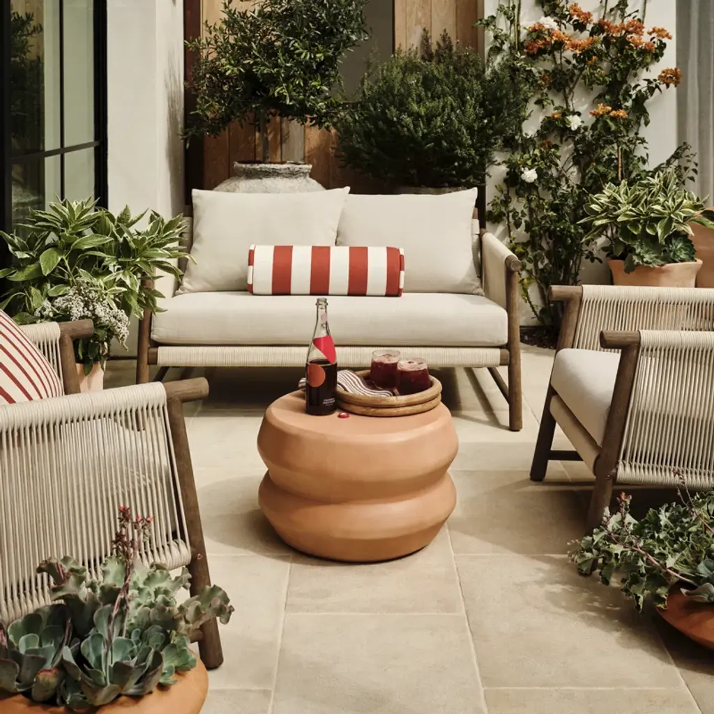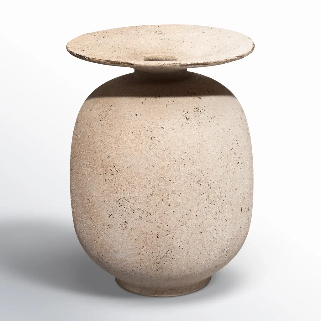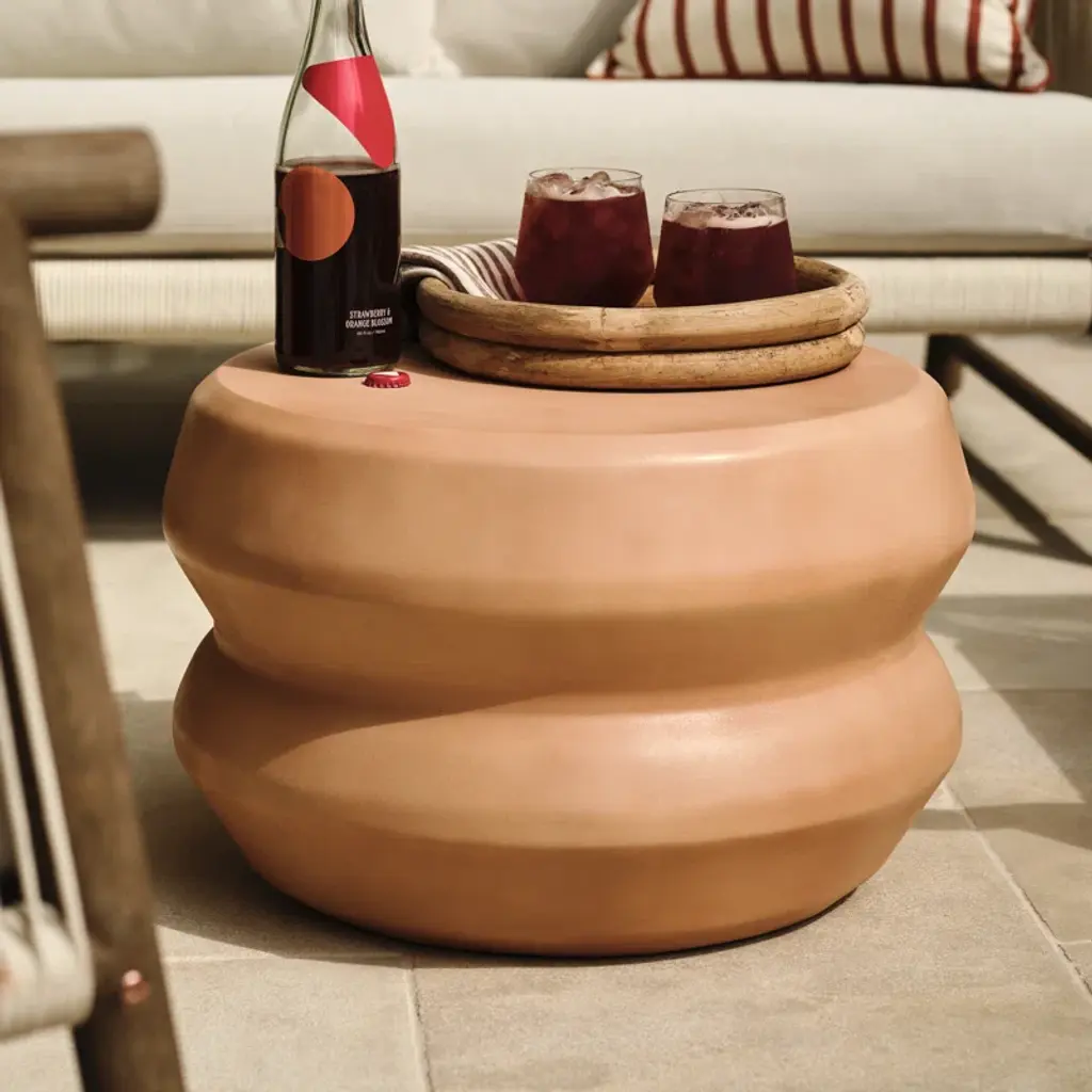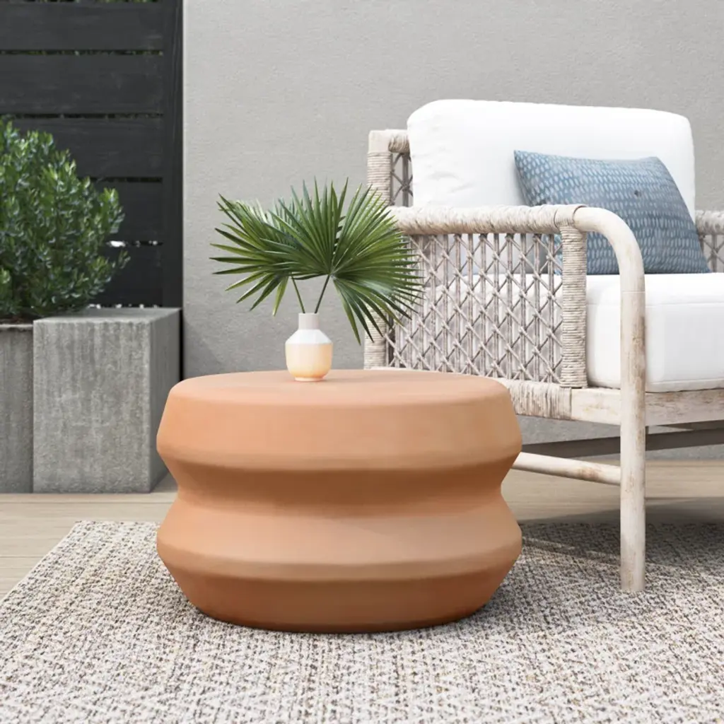 Say hello to alfresco luxury with this round side table. Crafted from solid stone and concrete, it's a sturdy addition to your outdoor living space. The terracotta color adds a warm touch to any patio or poolside setting. Designed to withstand the elements, it's an all-weather wonder, ready to hold your summertime drinks and snacks. Plus, you can start using it as soon as it arrives - no assembly required.