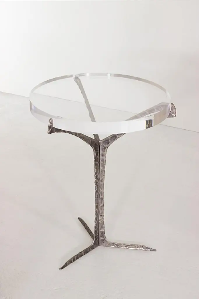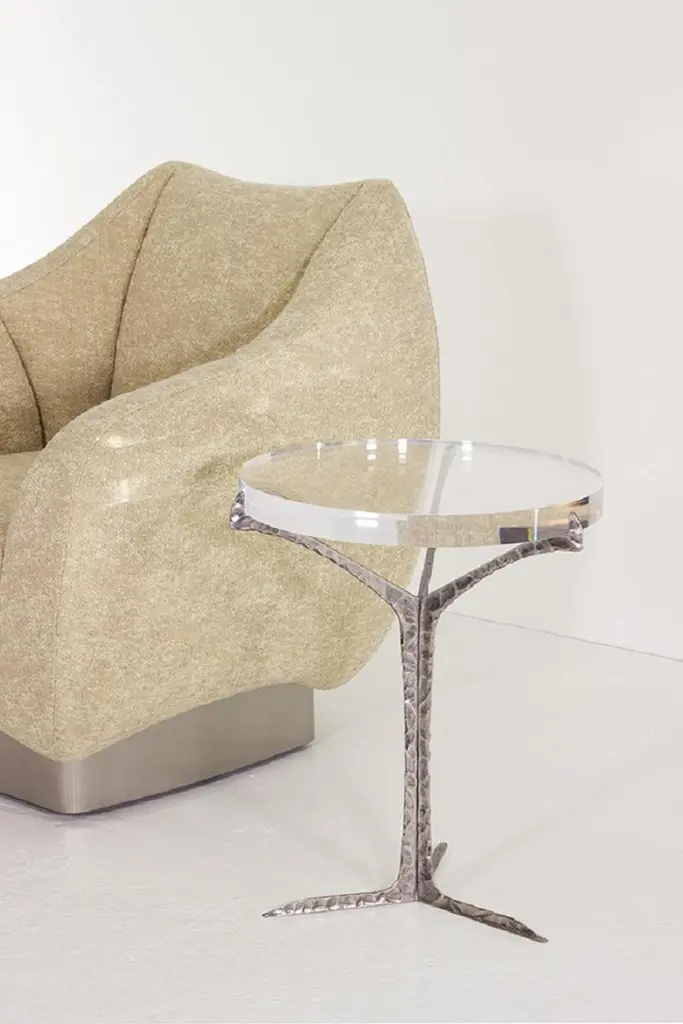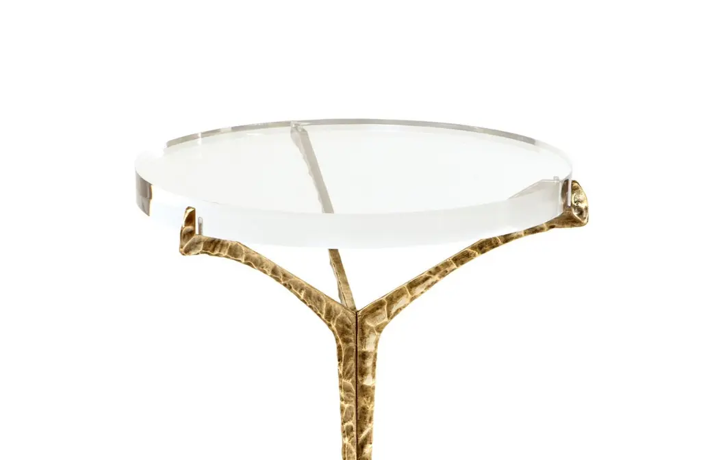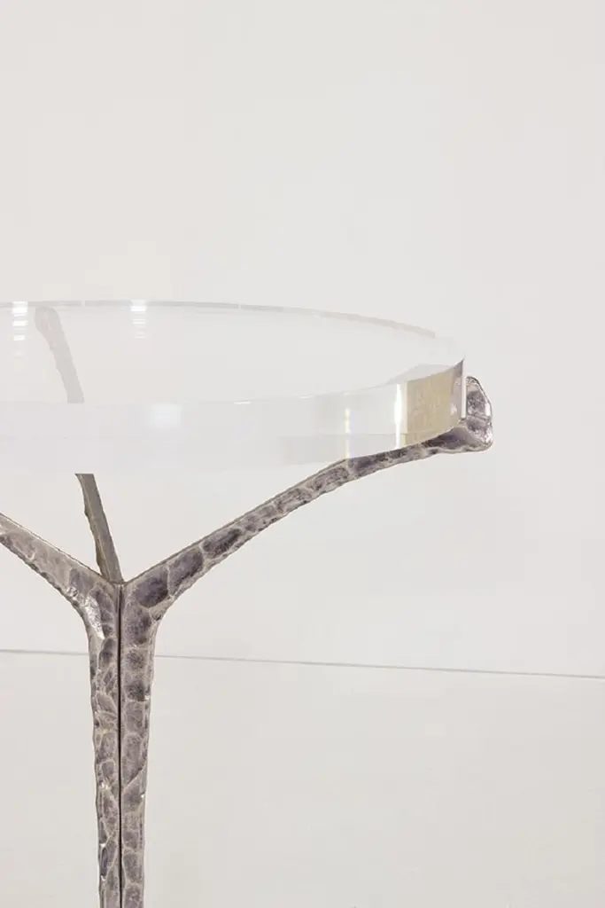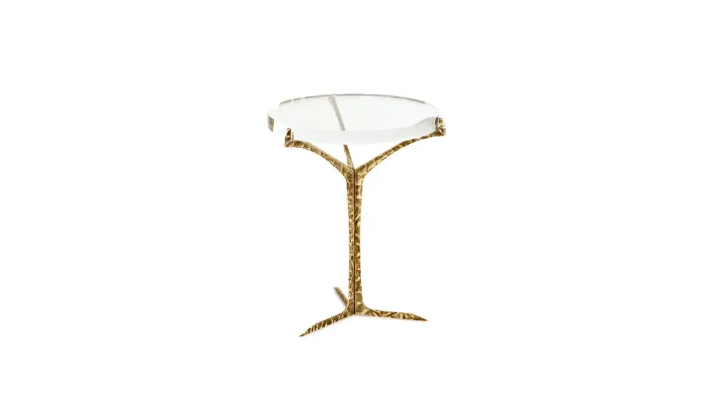 Alentejo Acrylic Side Table by InsidherLandDimensions: D 49 x W 49 x H 60 cm.Materials: Acrylic, cast brass with patinated effect.11 kg.Other materials available.Alentejo side table is a glimpse over the South of Portugal where thousands of cork oaks trees raise their canopies to the sky. Overlapped on branches opened in obtuse angles, the canopies are separated from their support bases, being gracefully balanced above the ground. These typical trees seem like tables spread across the horizon.Choosing one of the four tops available, we approach the different seasons: Spring in a dark green lacquered, Summer in a sunburned tone of walnut marquetry, Autumn in an empty space of acrylic and Winter in the white hues of Estremoz marble.The slender base in cast brass with patinated effect results of a careful sculpted work that highlights the natural details. Each root lightly touches the ground taking its own direction as shadows that vanish into the landscape.Created by Architect Joana Santos Barbosa in 2012, InsidherLand is a Portuguese brand of exclusive design. Drawn with the signature of the creator, the impressive range of contemporary luxury furniture, lighting, upholstery and accessories are connected to her personal memories and have been highlighted for their innovative and soulful designs.Joana explores several influences from travels around the world to define her own Land as a place that allows her to translate her perceptions into objects of art.The essence of InsidherLand is presented by two inspiring collections. Beyond Memory Collection is deeply influenced by organic forms of nature, legends and traditional cultures, as for the Identity Collection is molded by forms of Architecture and Art. Both collections are designed as a dialog in which nature meets strong architectural lines to create relaxed and sophisticated interiors surrounded by natural materials and meaningful art pieces.Being positioned in strategic markets of high-end luxury decoration, InsidherLand team is proud of working with the best architects and interior design studios from all over the world who seek for handmade exclusive objects that arouse emotions and stand out in exquisite spaces.We are dedicated with love and enthusiasm into every creation to surprise a sensitive but demanding public. Using the expertise of traditional craft techniques, all creations are made by the hands of Portuguese master craftsmen and jewelers who wisely sculpt them in noble materials, finalizing every detail with elegance and perfection.