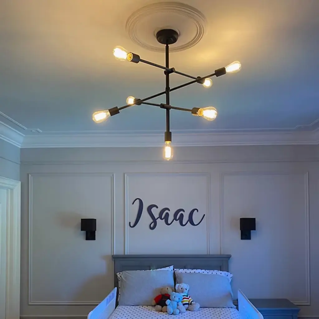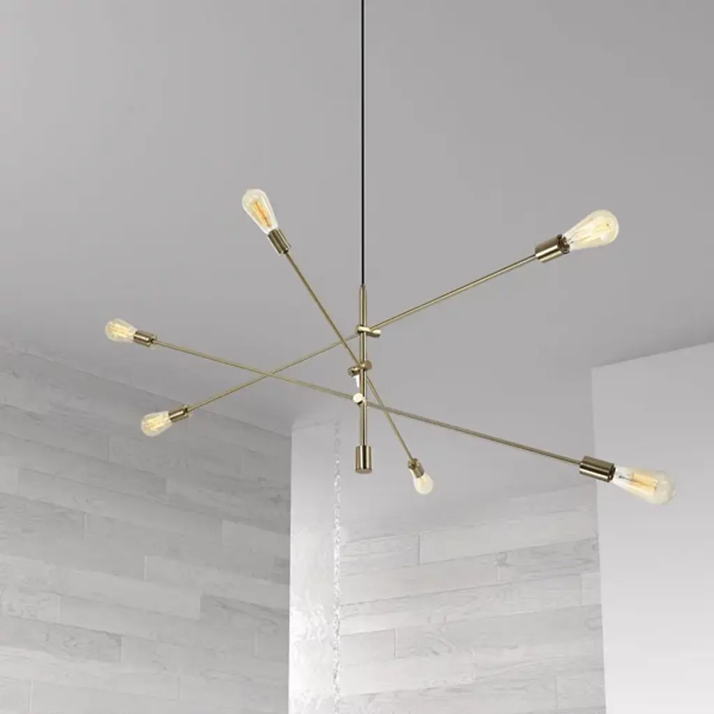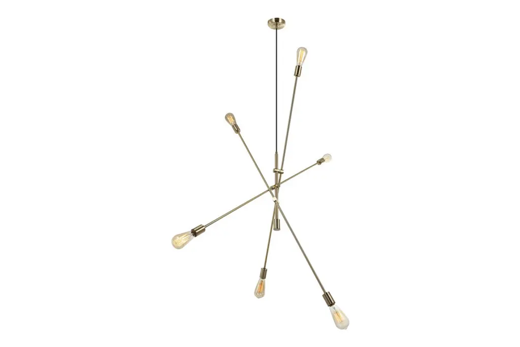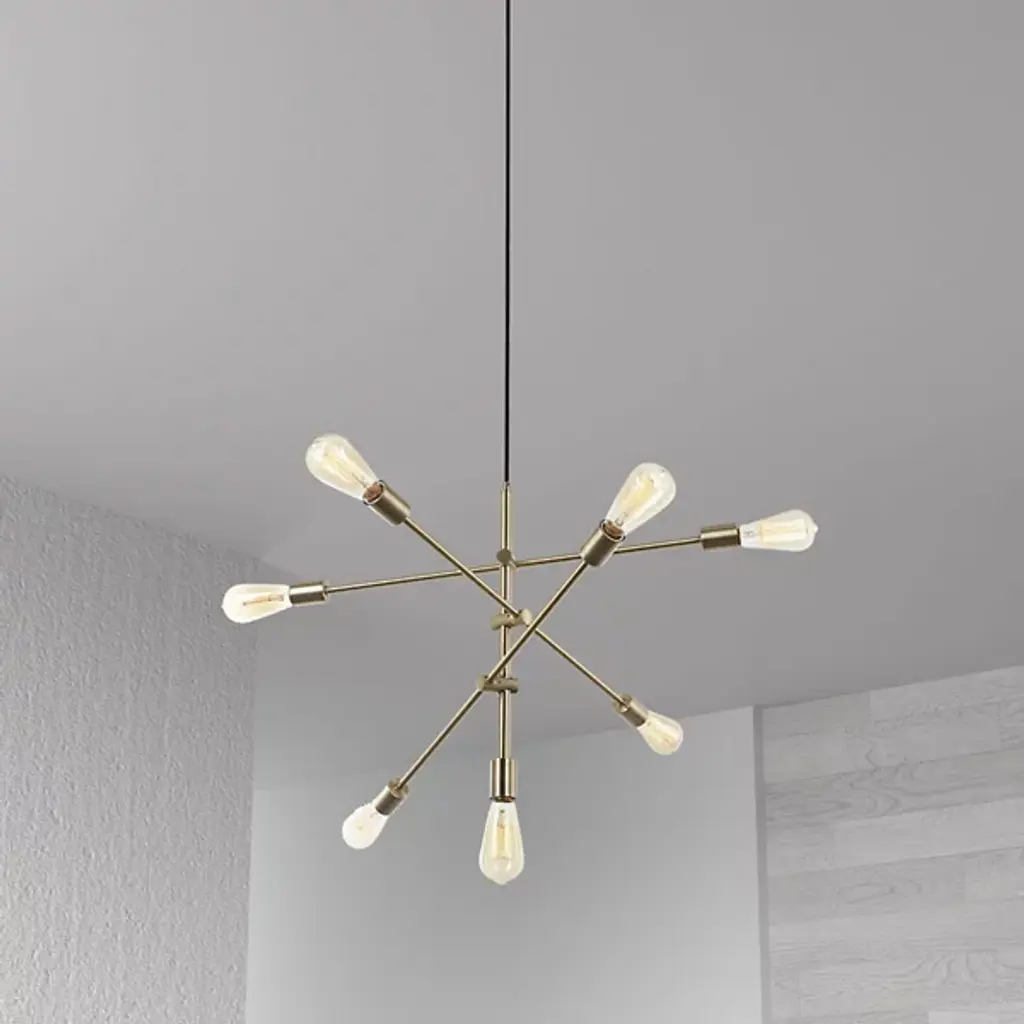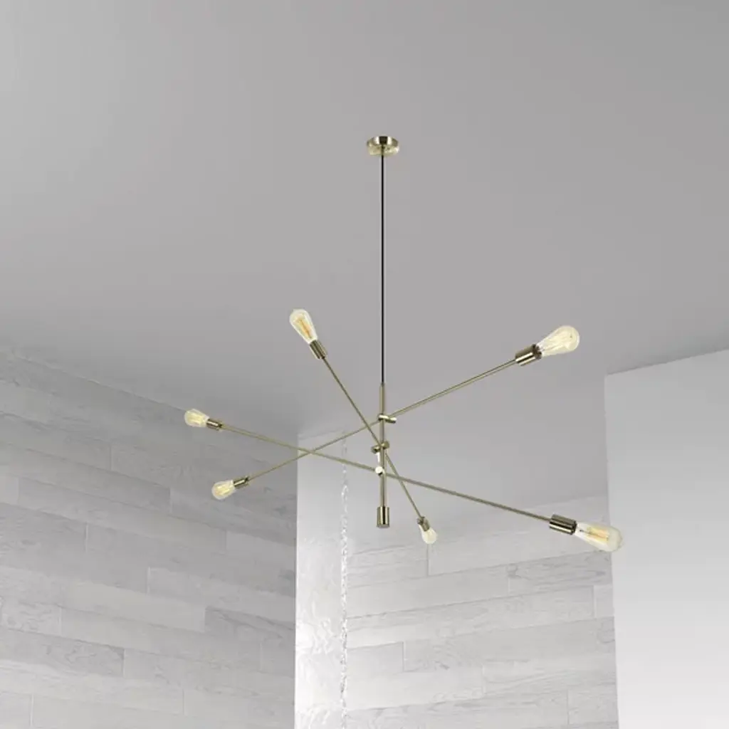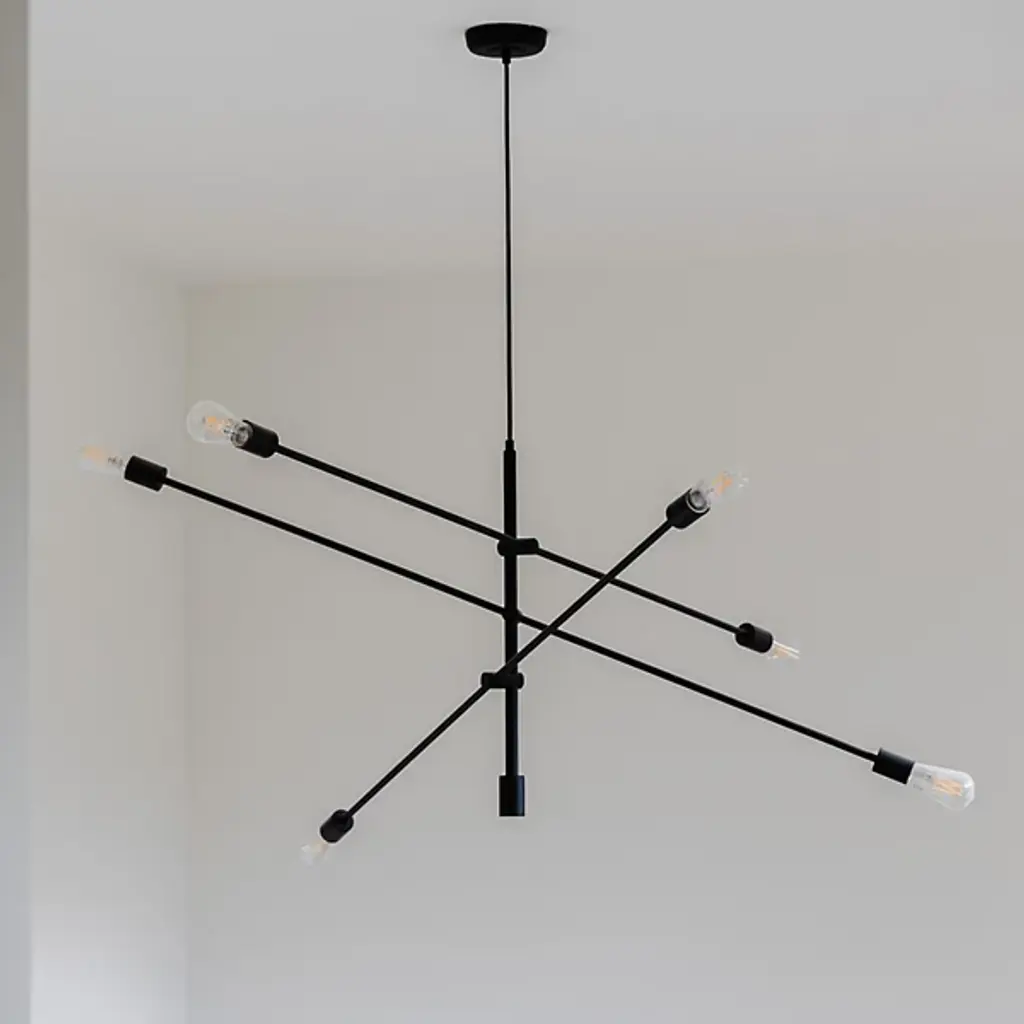 Simple, modern, and adaptable. The Alexa Adjustable Pendant by Dainolite is a striking fixture comprised of a set of slender arms affixed to a dropped downrod. Each arm holds a single exposed bulb at its end and can be adjusted to create a unique structural display via pivoting joints. With the ability to be arranged in vertical, horizontal, or any position in between, this fixture allows for a versatile statement piece while its warm light heightens the ambiance.