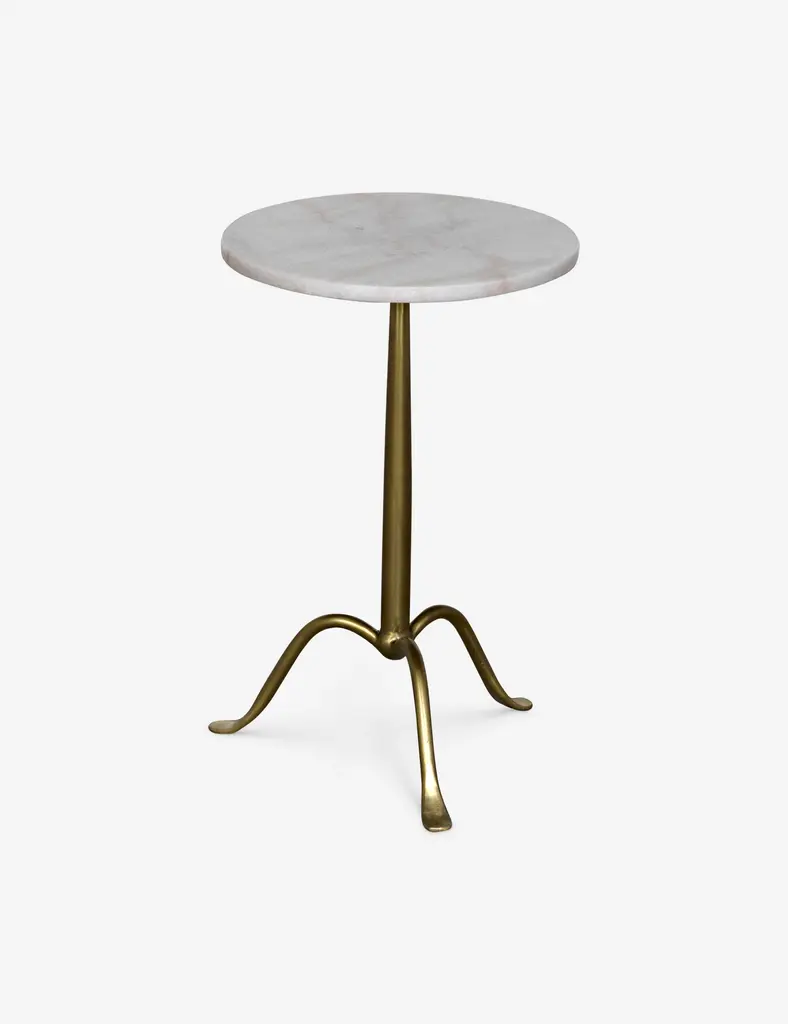 A slender post on tripod legs brings an airy lightness to the profile of this marble-topped side table. With its timeless charm, this piece can be styled as a small end table or as a chic pedestal for greenery or decor.