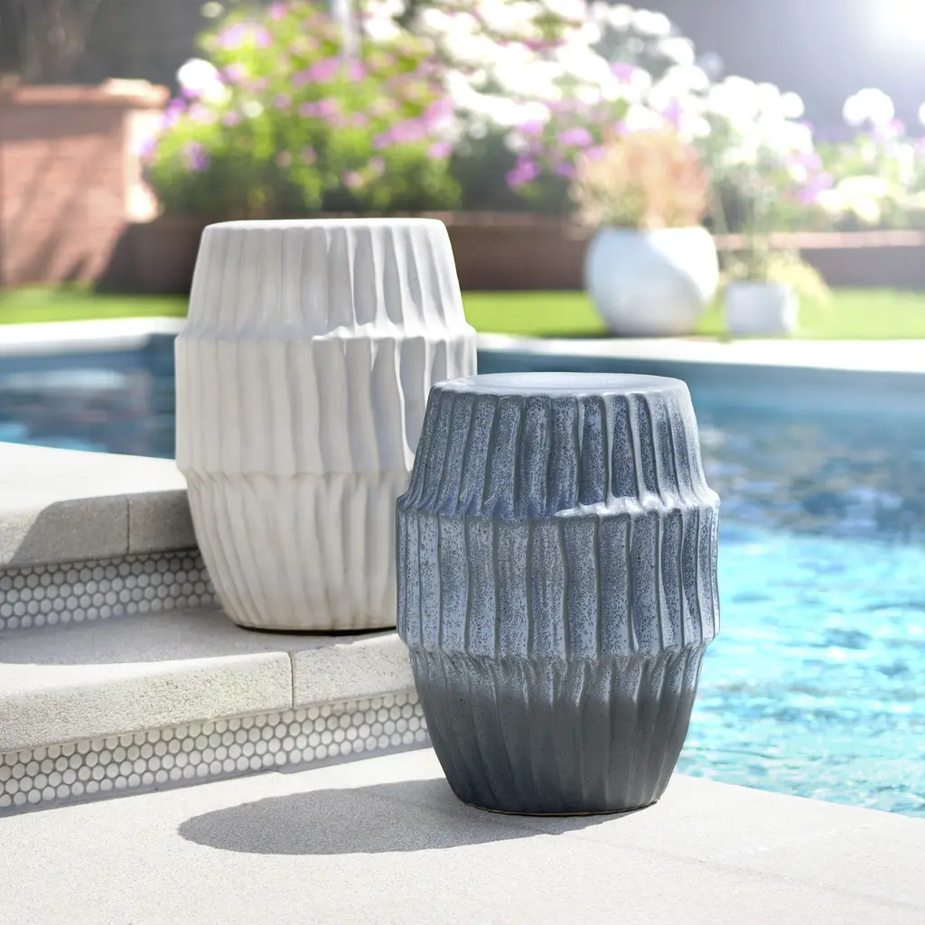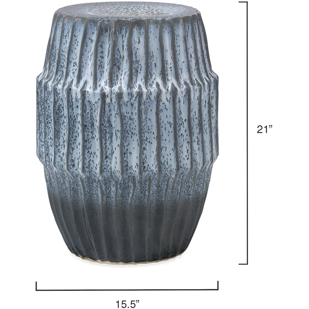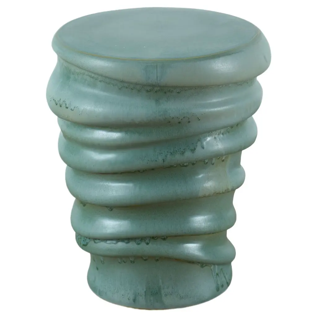 Reminiscent of textural sea algae, the rippled silhouette of this ceramic side table is perfect for any coastal inspired interior. The aquatic shape is glazed with ocean inspired hues that ombre from lighter colors, similar to the color of the ocean water dappled in sunlight, changing to the dark blue tones deep from the ocean depths.