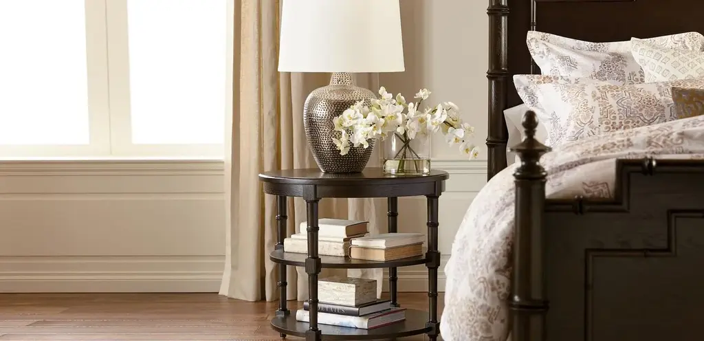 This well-rounded solid oak table has random match veneers and a visible, beautifully textured grain. Allistair works as an end table in a living room or library or as an end table in any stylish bedroom. With its comfortable scale and roomy shelves, the Allistair delivers plenty of open storage—and a confident style statement in any setting.