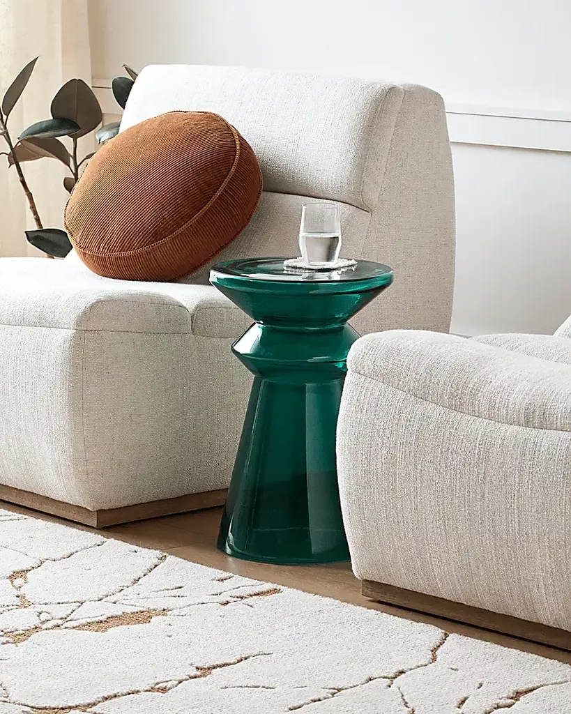 Introducing the Aloh end table, a sleek and stylish addition to any home. With its minimalist modern design, this piece exudes sophistication and simplicity. Made of high-quality glass, it offers a clean and elegant aesthetic that effortlessly enhances your living space. This exquisite end table is truly unique. It is also easy to maintain just give it a quick wipe with a dry cloth to keep it sparkling. Just be sure to avoid harsh cleaners as they may damage its beautiful finish.