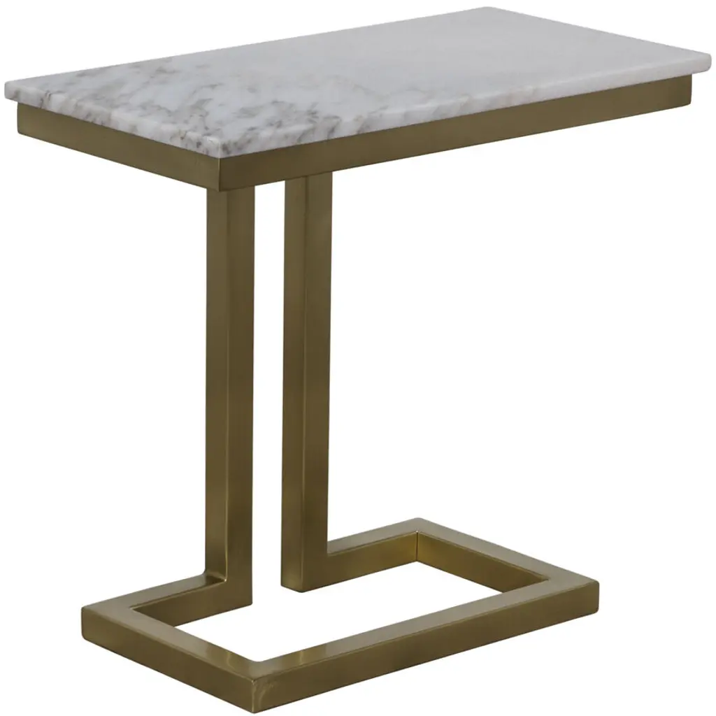 Grecian inspired lines are updated with modern metallic finishes and rectangular tops created with solid slabs of marble. Artisan-crafted to honor the variances in color, pattern, texture, and veining in the natural stone, no two will be identical.