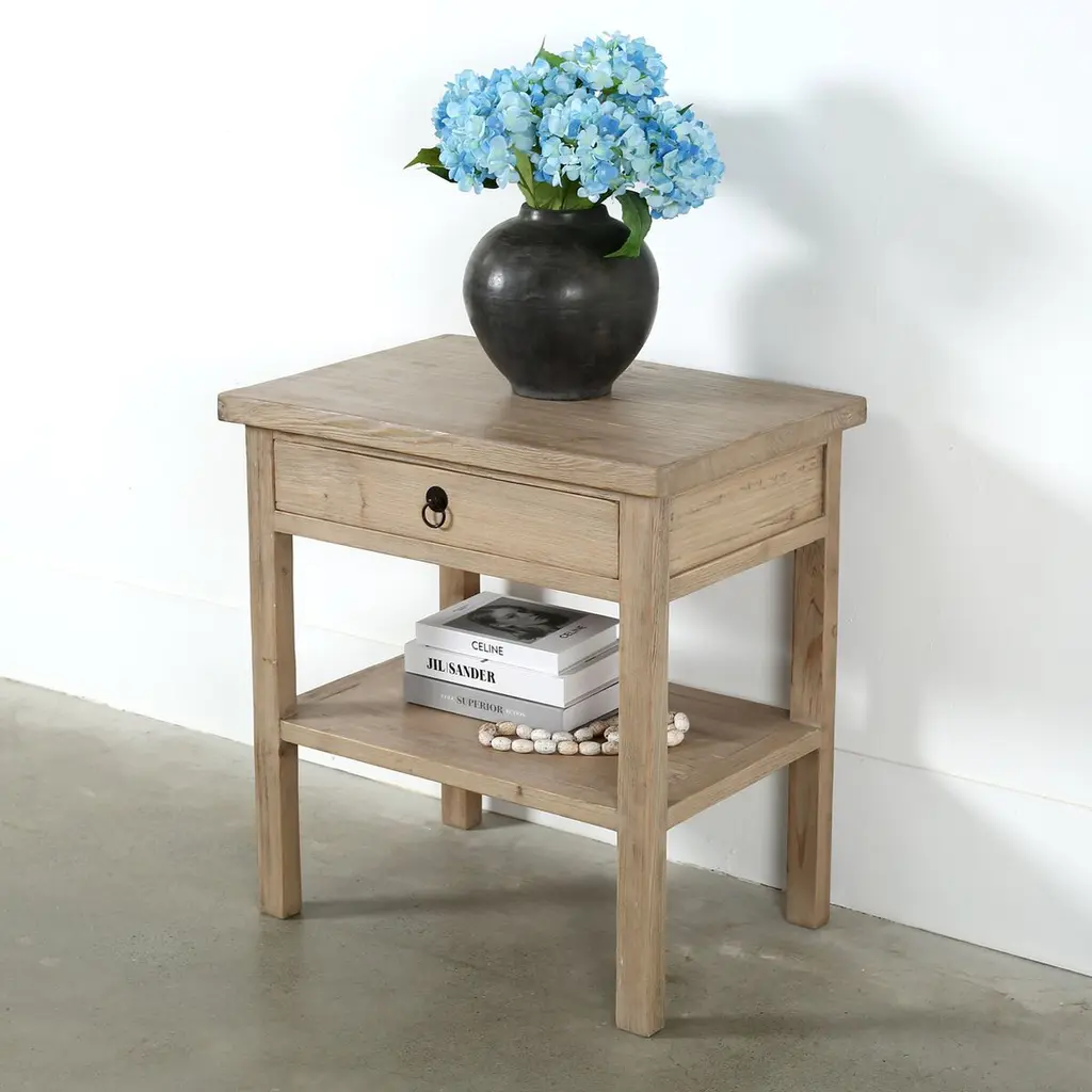 Introducing the Althea 1-Drawer side table, a masterpiece that blends elegance and functionality. Crafted with precision, this table is designed to elevate your living space. Perfect for any decor, this accent table adds a touch of sophistication. Each piece is a unique blend of traditional craftsmanship and modern design, ensuring it stands out in any setting.