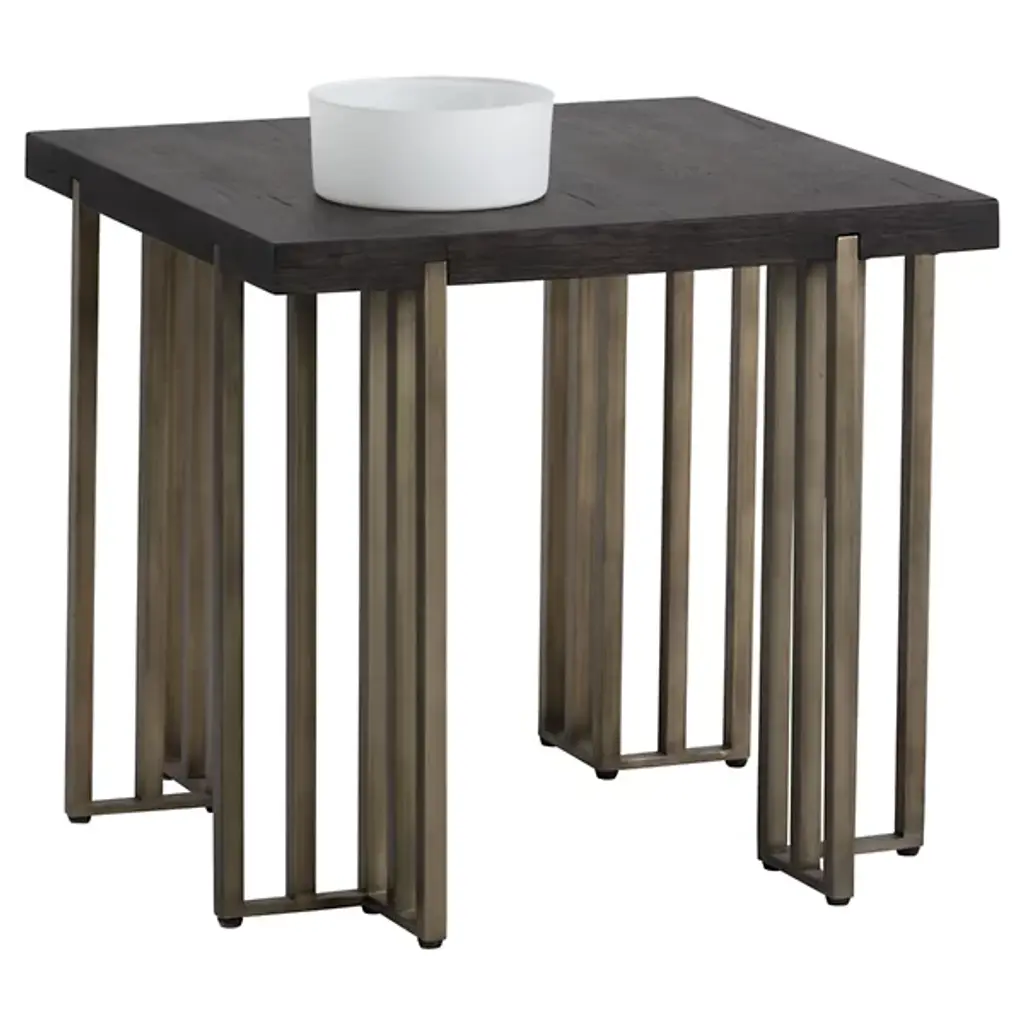 The Alto Side Table from Sunpan adds a touch of warmth and style to your living and lounge spaces. Its oak wood veneer top, with distinctive cracks and deep lines for a distressed appearance, is perfectly complemented by the architectural antique brass iron legs, enhancing its visual appeal. Ideal for both residential and contract environments, this versatile table effortlessly combines rustic charm and contemporary design, making it a suitable and stylish addition to any space.