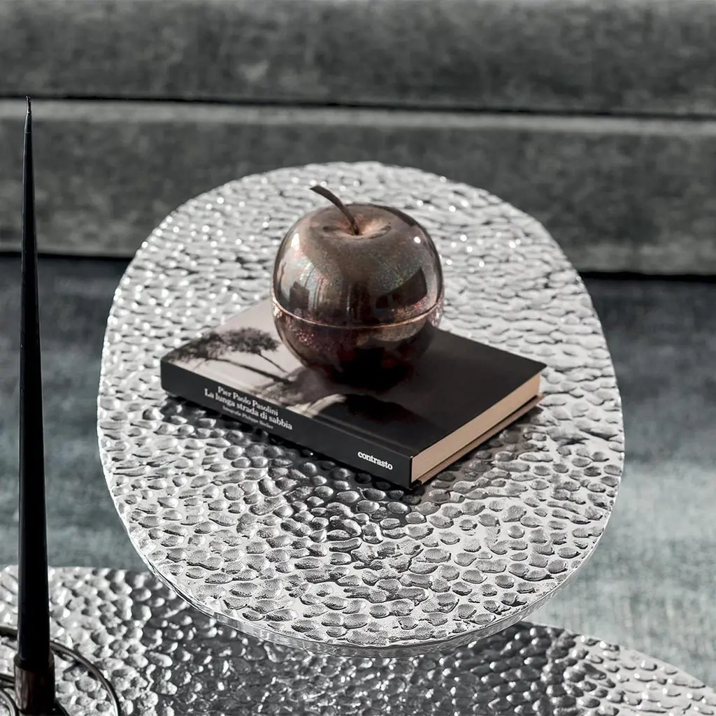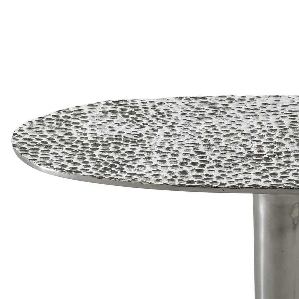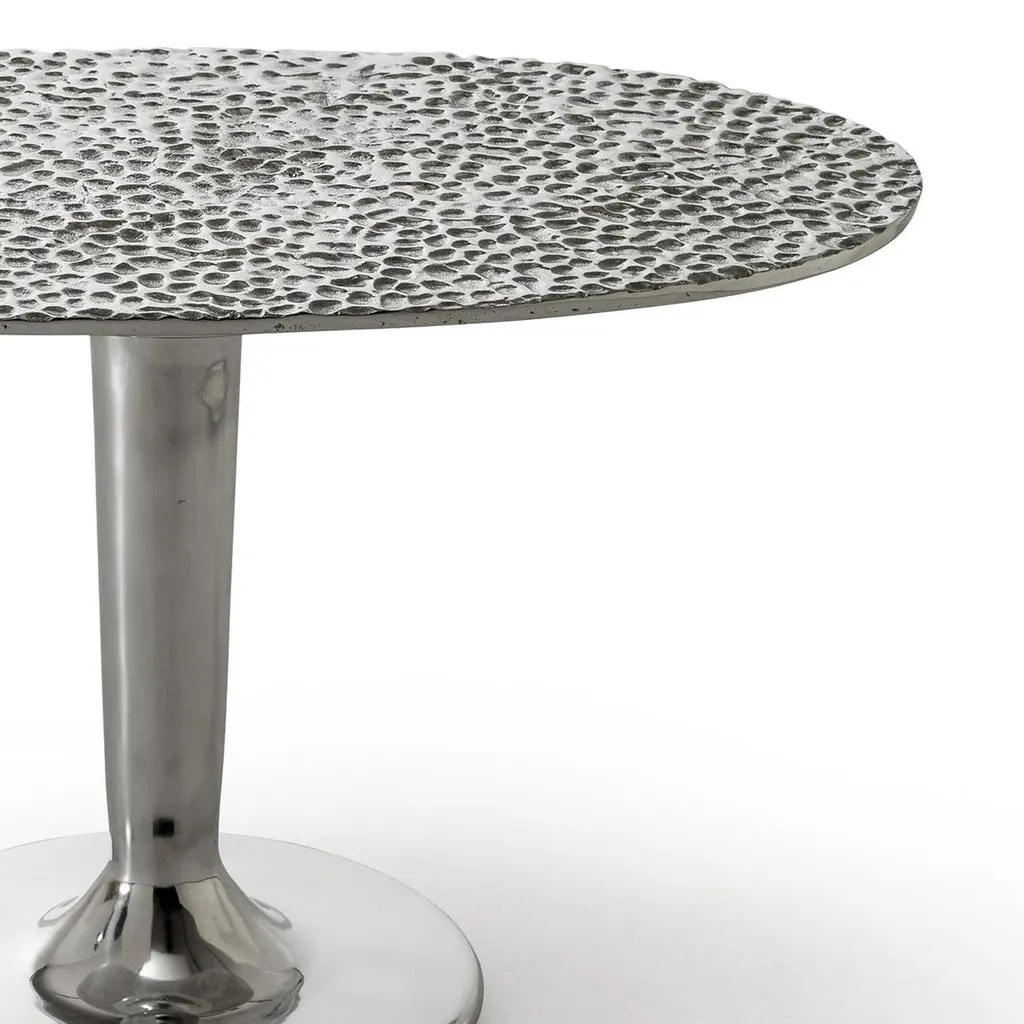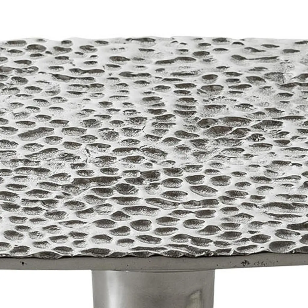 Side table Alu drops in polished castedaluminium. Hand-hammered aluminium.