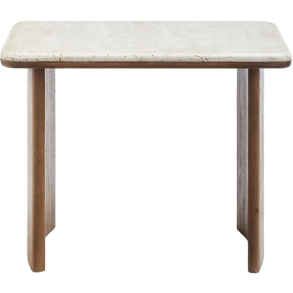 Aluna 23.62 X 18.11 Inch Top: Cream; Base: Dark Brown End Table