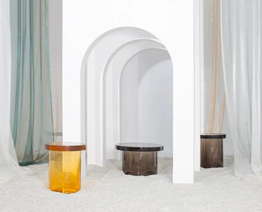 Alwa three white side table by PulpoDimensions: D38 x H44 cmMaterials: casted and handblown glassAlso available in different colors. Normally, glass is regarded as being lightweight with sharp edges. In contrast, Sebastian Herkner’s alwa is massive and possesses gentle contours. The raw, hot, glass mass with its natural bubbles is an imprint of the structure, including the uneven, sensitive surface. So nice to touch … but also ideal for placing a variety of items.Pulpo is a design editor for high-end products in the home sector.Design is our passion. Art is our engine. We are fascinated by the craft of the ceramic and glassblowing workshops and are guided by the rough aesthetics of these unique pieces.Pulpo’s philosophy goes back to the idea of ??the “carte blanche”. Our designers and artists develop their designs freely and experimentally. A variety of materials and a weakness for structures are our strengths.The headquarters of pulpo is in Weil am Rhein, near the Swiss border. Consisting of the creative and sales department, warehouse and logistics, this is the think tank for our artists and designers. pulpo’s dealer network extends far beyond Weil am Rhein – from Iceland and Dubai to Australia.Pulpo is movement – is possibility – is passion.In 2006, pulpo was founded by Ursula and Patrick L’hoste as a design brand at the interface between shape and material. pulpo’s conception is to edit lighting, furniture and accessoires on editor’s choice. The company’s focus is to conduct up-and-coming designers and selected manufacturers, using the nature of material’s to form the score. Materials such as ceramics, stone and especially glass, which is pulpo’s primary focus since 2013.