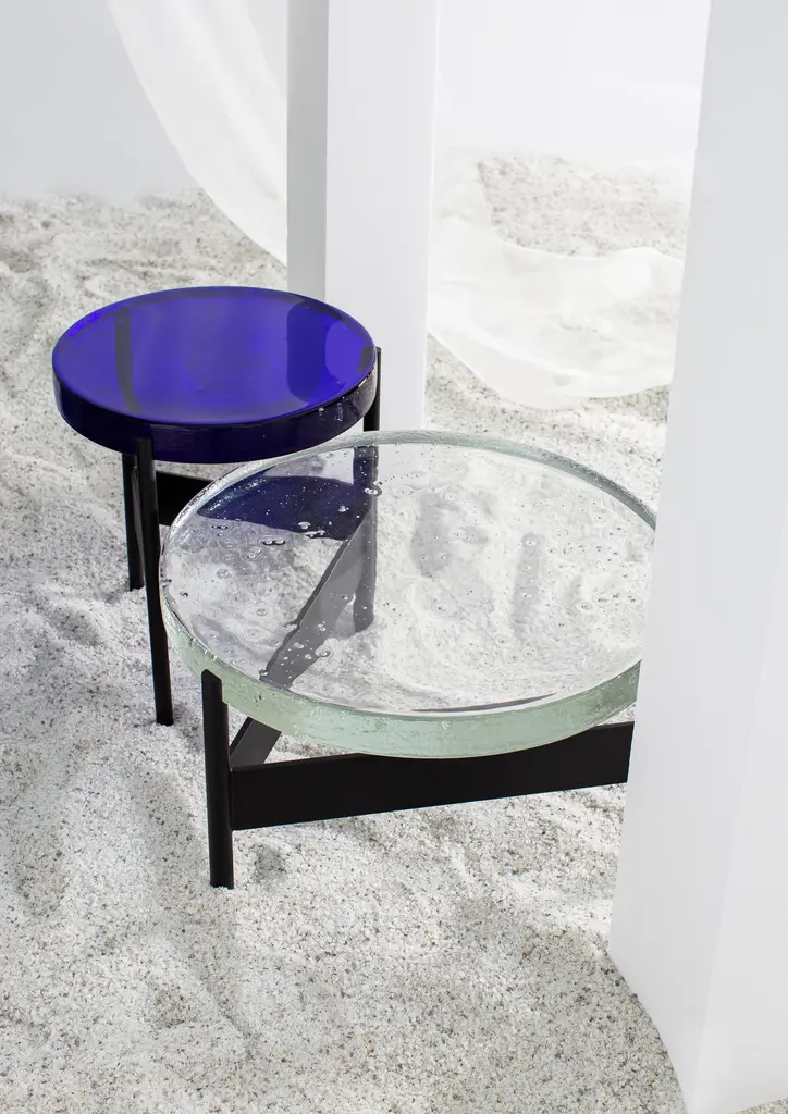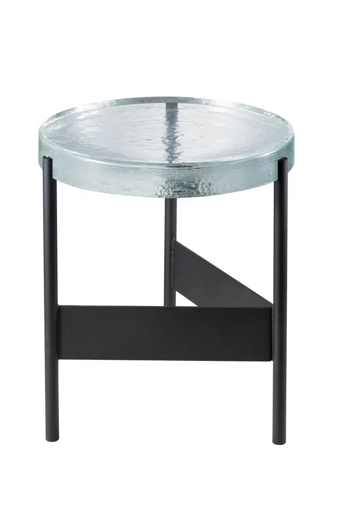 Alwa two transparent black side table by PulpoDimensions: D38 x H44 cmMaterials: casted glass; powder coated steel Also available in different finishes.Normally, glass is regarded as being lightweight with sharp edges. In contrast, Sebastian Herkner’s alwa is massive and possesses gentle contours. The raw, hot, glass mass with its natural bubbles is an imprint of the structure, including the uneven, sensitive surface. So nice to touch … but also ideal for placing a variety of items.Pulpo is a design editor for high-end products in the home sector.Design is our passion. Art is our engine. We are fascinated by the craft of the ceramic and glassblowing workshops and are guided by the rough aesthetics of these unique pieces.Pulpo’s philosophy goes back to the idea of ??the “carte blanche”. Our designers and artists develop their designs freely and experimentally. A variety of materials and a weakness for structures are our strengths.The headquarters of pulpo is in Weil am Rhein, near the Swiss border. Consisting of the creative and sales department, warehouse and logistics, this is the think tank for our artists and designers. pulpo’s dealer network extends far beyond Weil am Rhein – from Iceland and Dubai to Australia.Pulpo is movement – is possibility – is passion.In 2006, pulpo was founded by Ursula and Patrick L’hoste as a design brand at the interface between shape and material. pulpo’s conception is to edit lighting, furniture and accessoires on editor’s choice. The company’s focus is to conduct up-and-coming designers and selected manufacturers, using the nature of material’s to form the score. Materials such as ceramics, stone and especially glass, which is pulpo’s primary focus since 2013.
