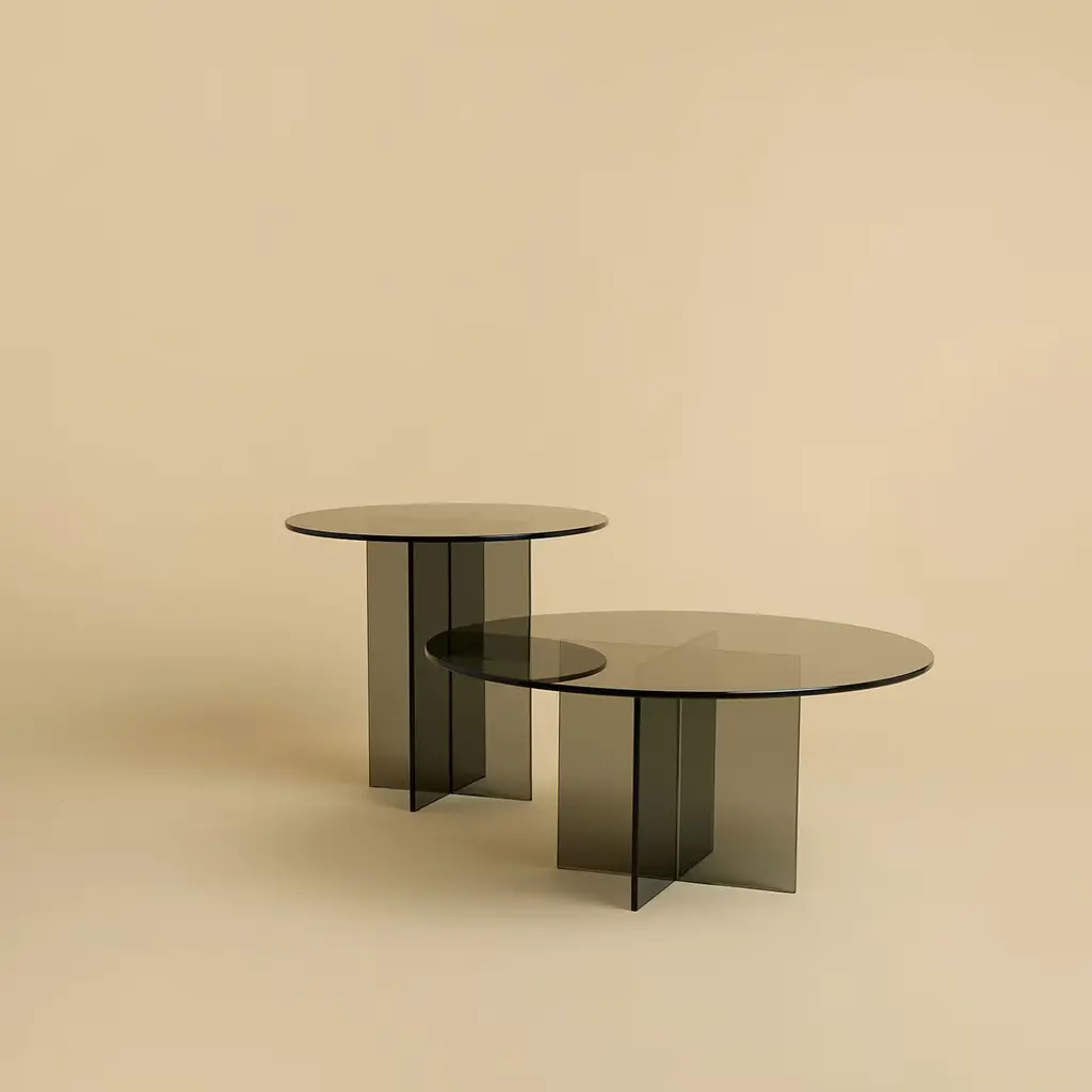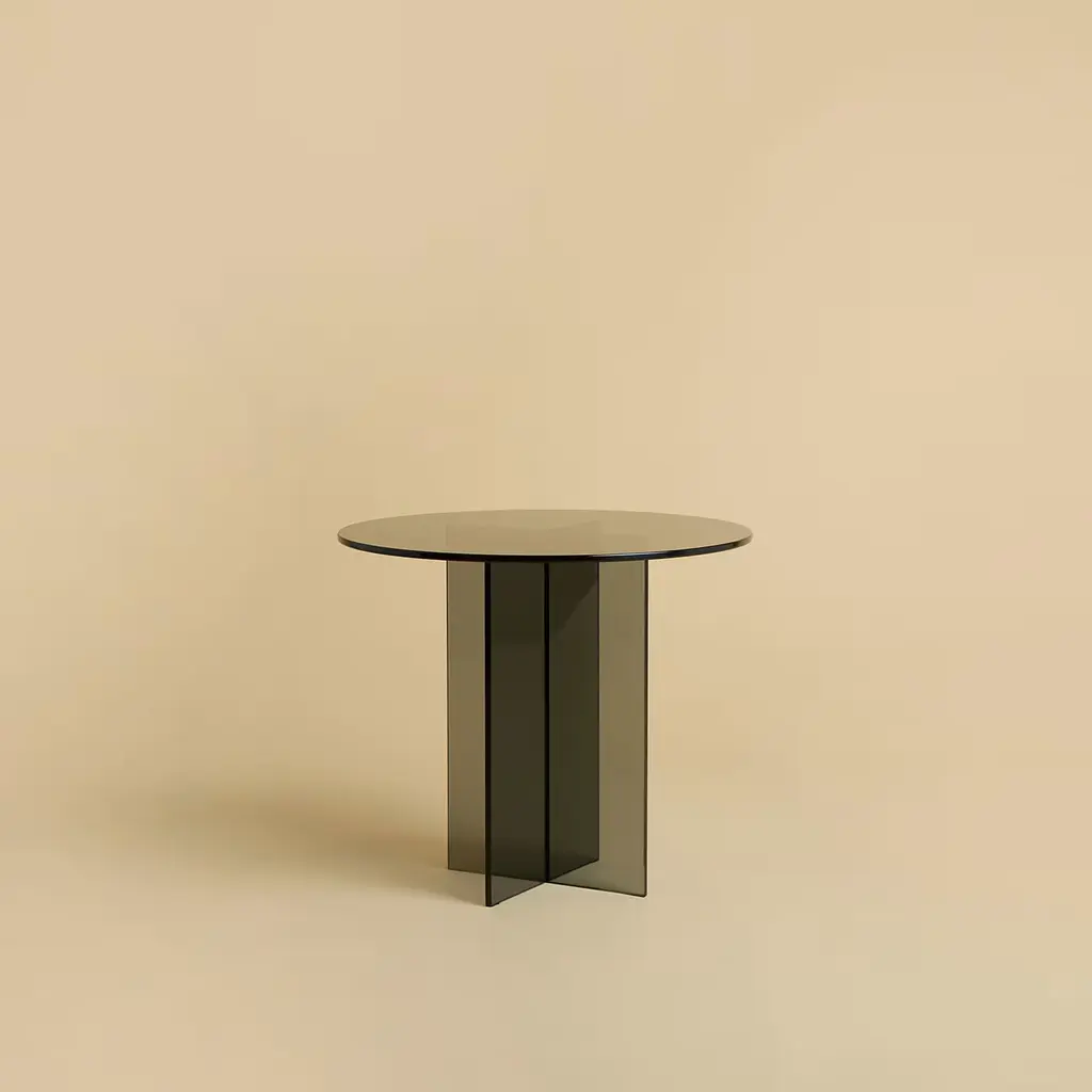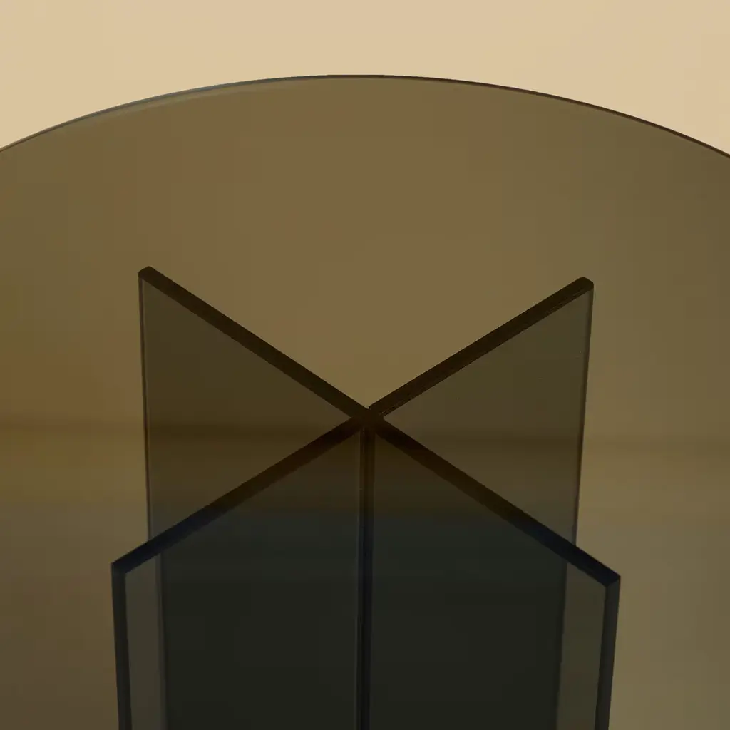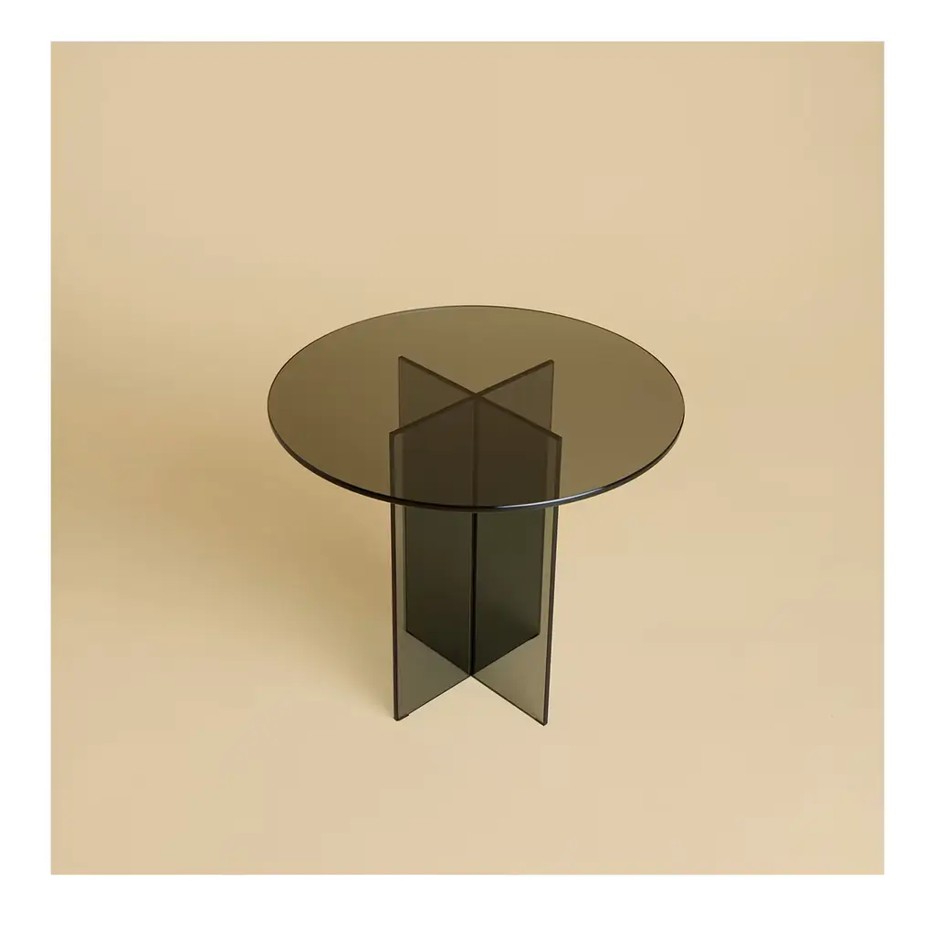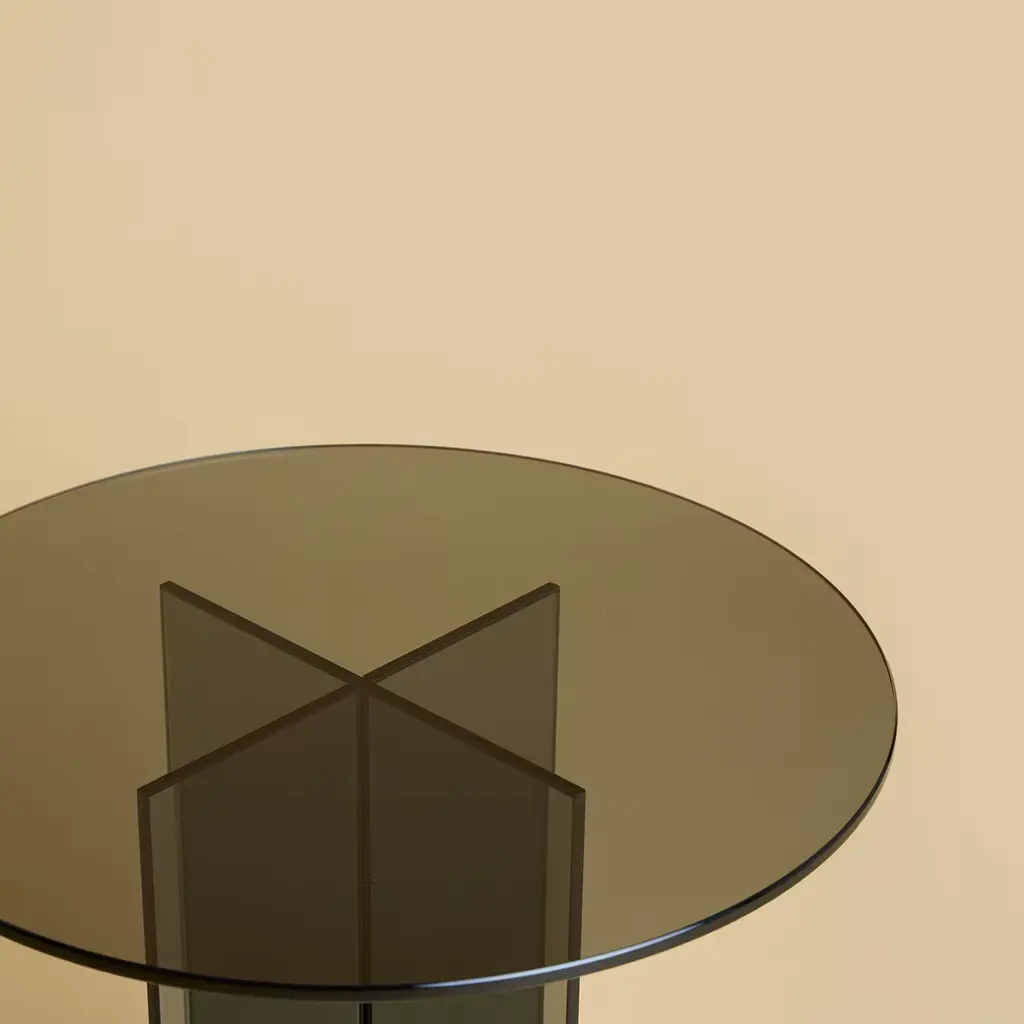A sophisticated and versatile accent designed to complement indoor and outdoor settings, this side table belongs to the Honshu Collection, a series of minutely crafted designer furniture. Handmade of smoked glass, it features a circular tabletop and a sleek geometric base. Please consult the Concierge for further information on this design.