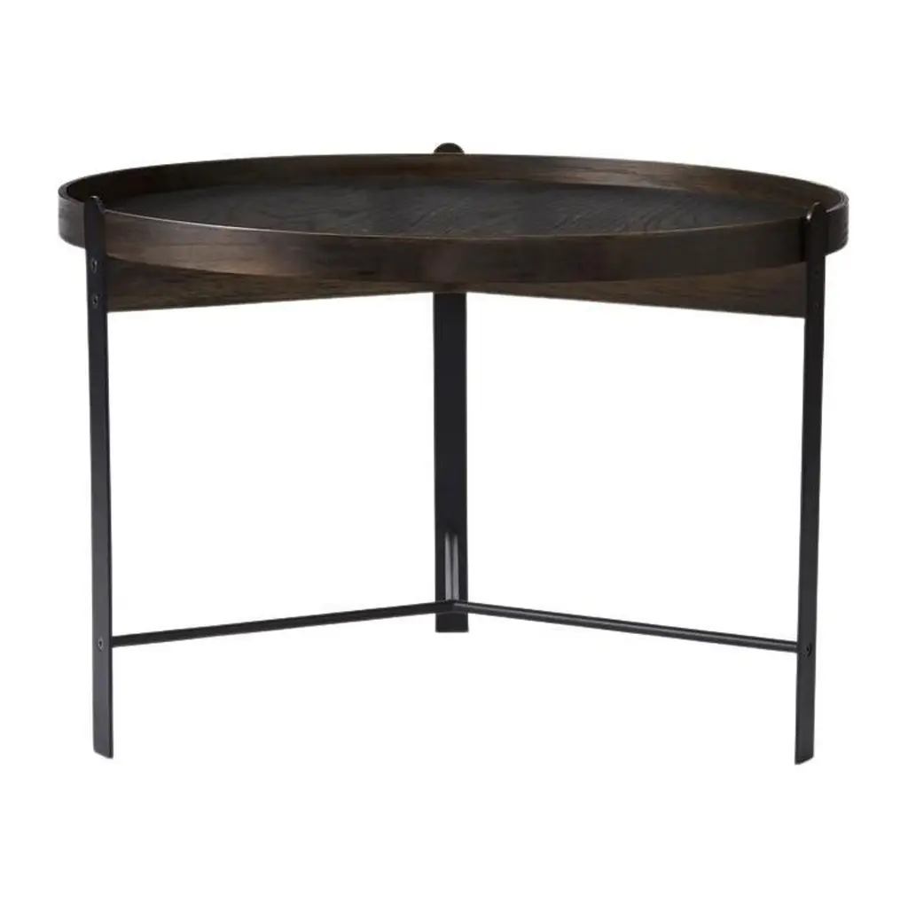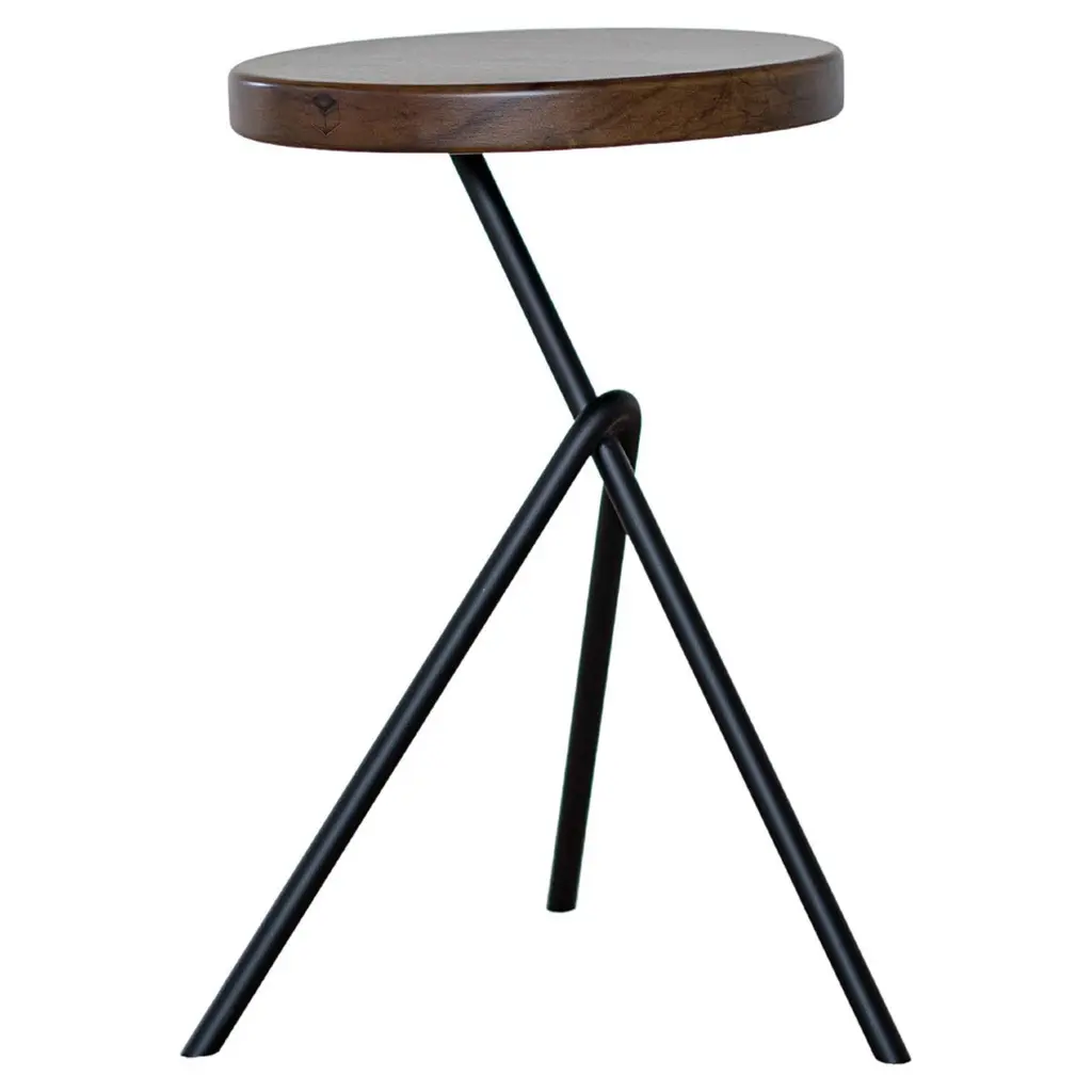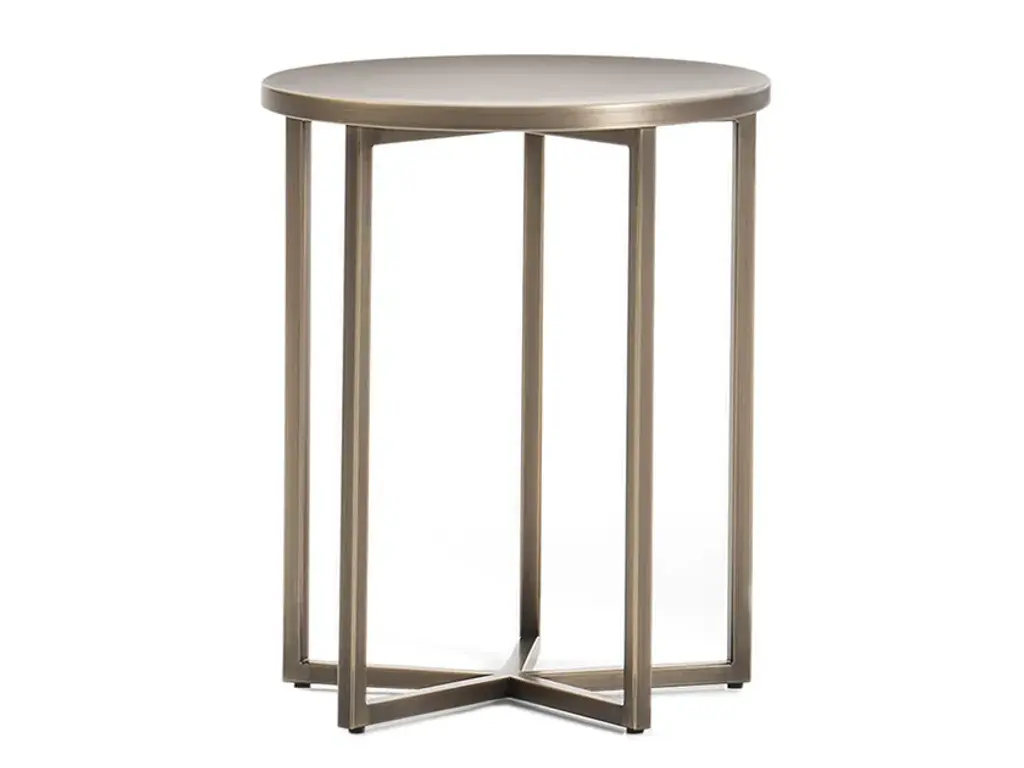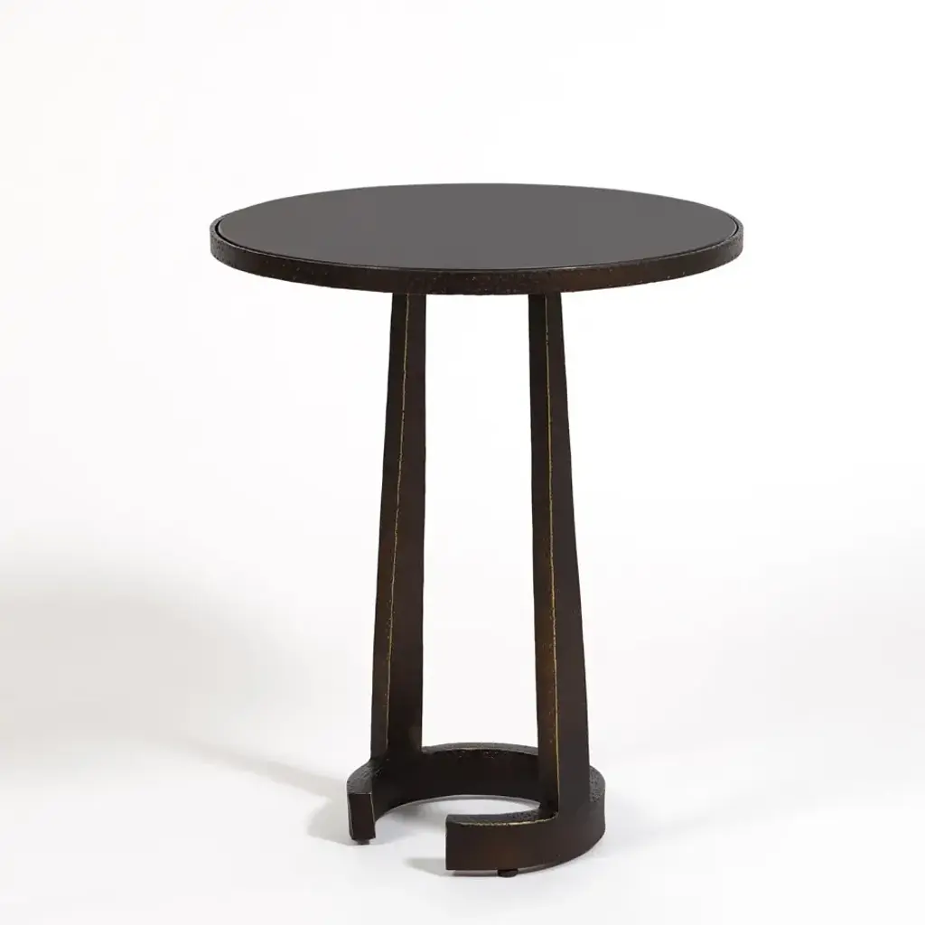 A stylish and practical addition to the porch, patio, or deck, this side table is crafted of aluminum with a round galleried top, asymmetrical tripod base, and antiqued rust finish.