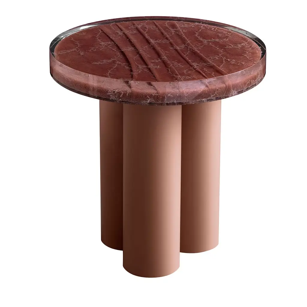 Amber Round Antiqued-Pink & Dark-Gray Metal & Resin Side Table