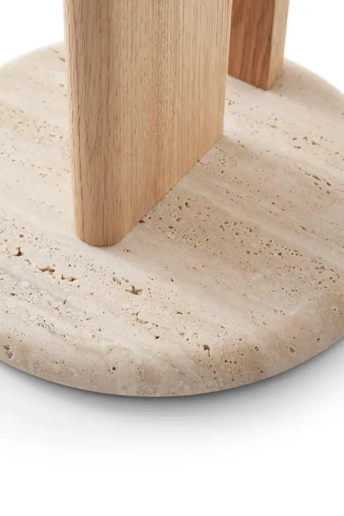 Small in size, but big in personality. The Ambrogio side table is the perfect companion for moments of relaxation. A harmony between solidity and lightness, thanks to the small arch in the base that lends movement and character: an architectural detail that evokes the portals of ancient palaces. Ambrogio is designed to fit naturally into any corner of the living area, as a shelf next to the sofa or in a reading corner.FeaturesCoffee table with turned base in real Roman Travertine marble. Structure in solid Natural Oak wood with top veneered in Natural Oak wood with membrane pressing finish.Haute Couture gets its inspiration from high fashion, where stitching, workmanship and materials are at the core of the design. Dressers are outfitted using hand-crafted leather, the furniture is embellished using precious marble, and the wood is selected on the basis of its grain. The synthesis of this collection is a modern line with a contemporary slant that is embodied in a luxury that is not overly flashy but grounded in sophistication. Timeless products made with high quality materials and handcrafted in Italy.