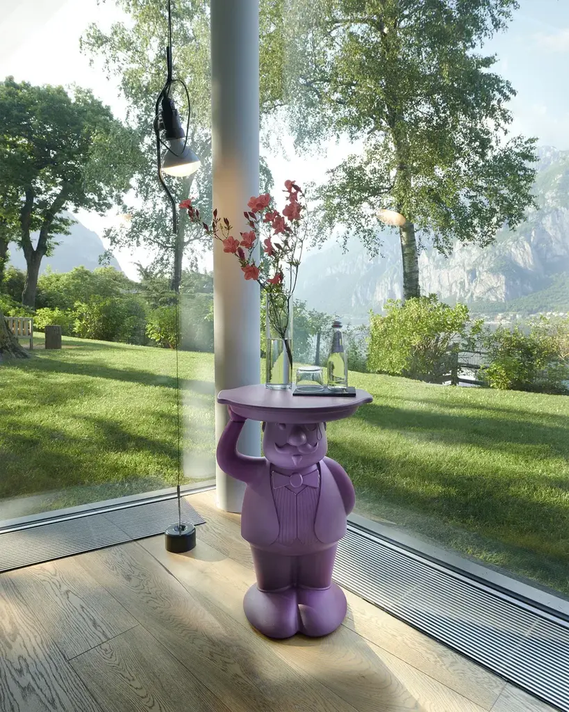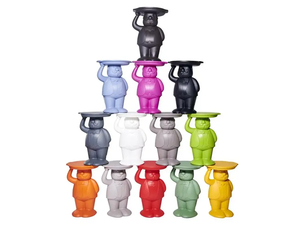Ambrogio is the most versatile, colourful and green butler you have ever met. Ambrogio is the servant table ideal for residential projects, shop windows, store or any setting that needs a helper ready to support anything you want. Franceso Favaretto pays a tribute to his father mustaches when he created Ambrogio. Ambrogio loves the environment: for the first time, we use a new kind of plastic material, named EcoAllene, associated to a design object. EcoAllene is 100% recycled materials, wich gives a second life to the plastic present in Tetrapack boxes, otherwise destinated to incinerators or landfills. Ambrogio is the perfect combination between comics design and serious product, but it is also ethic: we want to create a soustainable design for people and for the environment, thanks to a vituous path of circular economy.MATERIAL30% EcoAllene, 70% polyethylene
