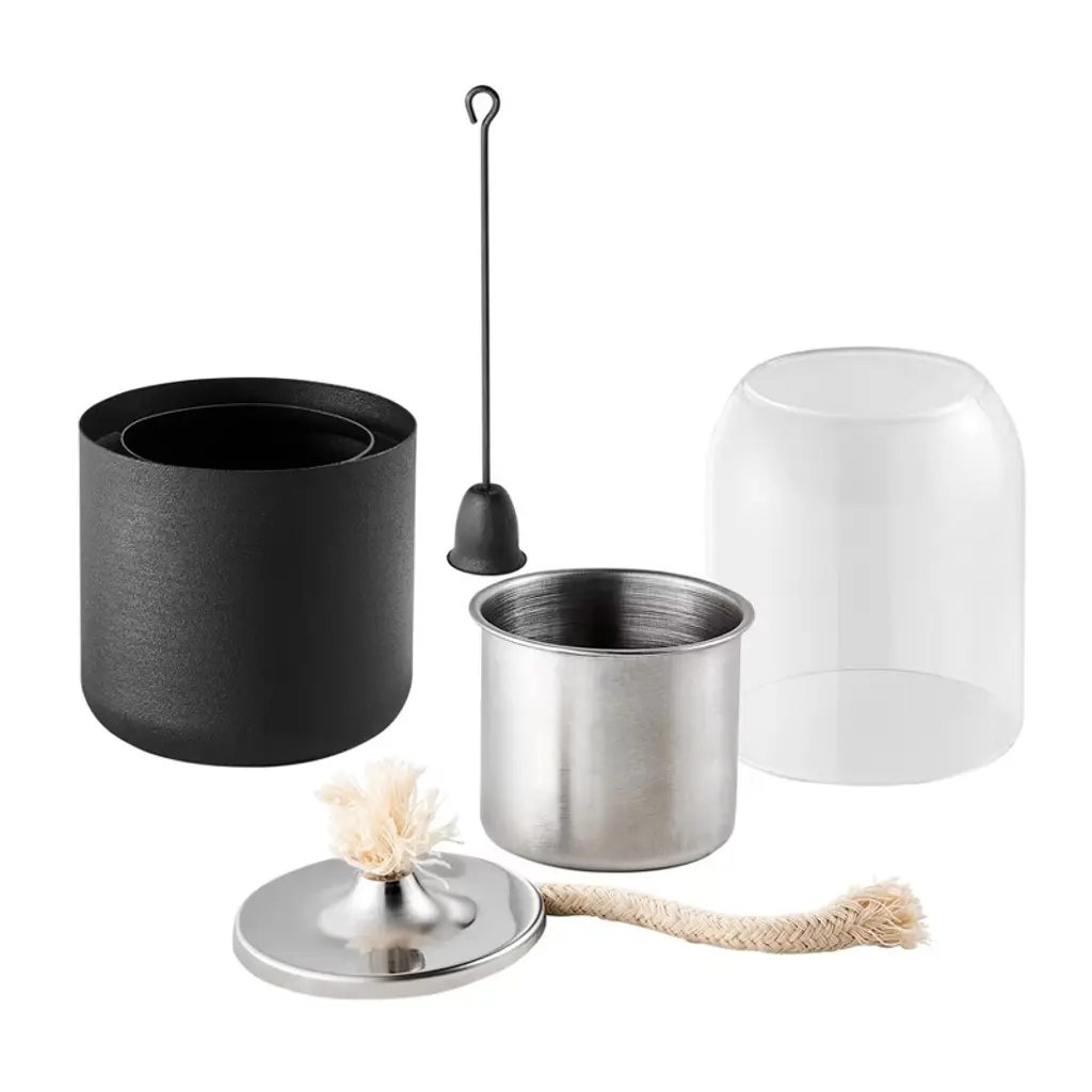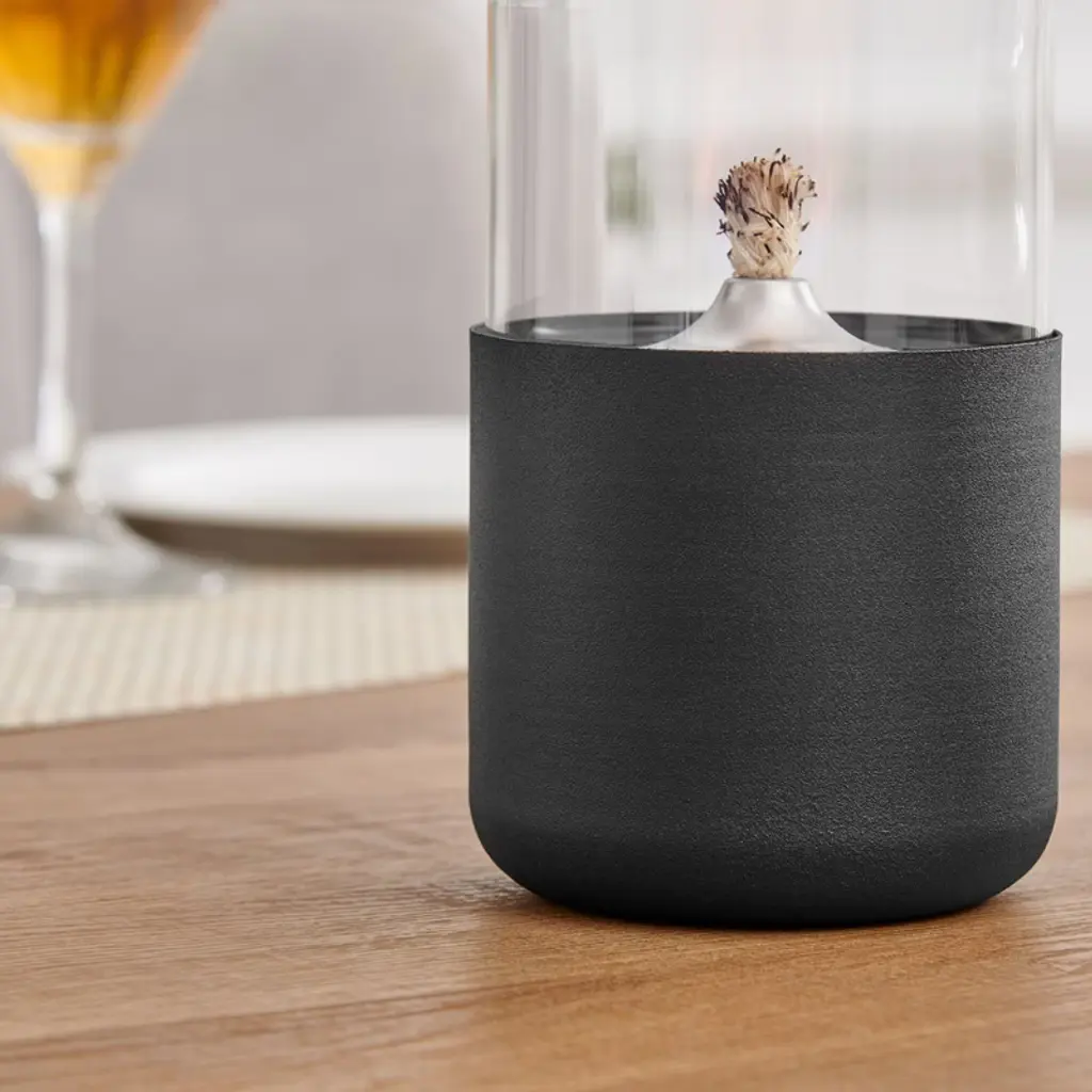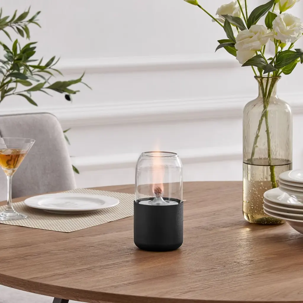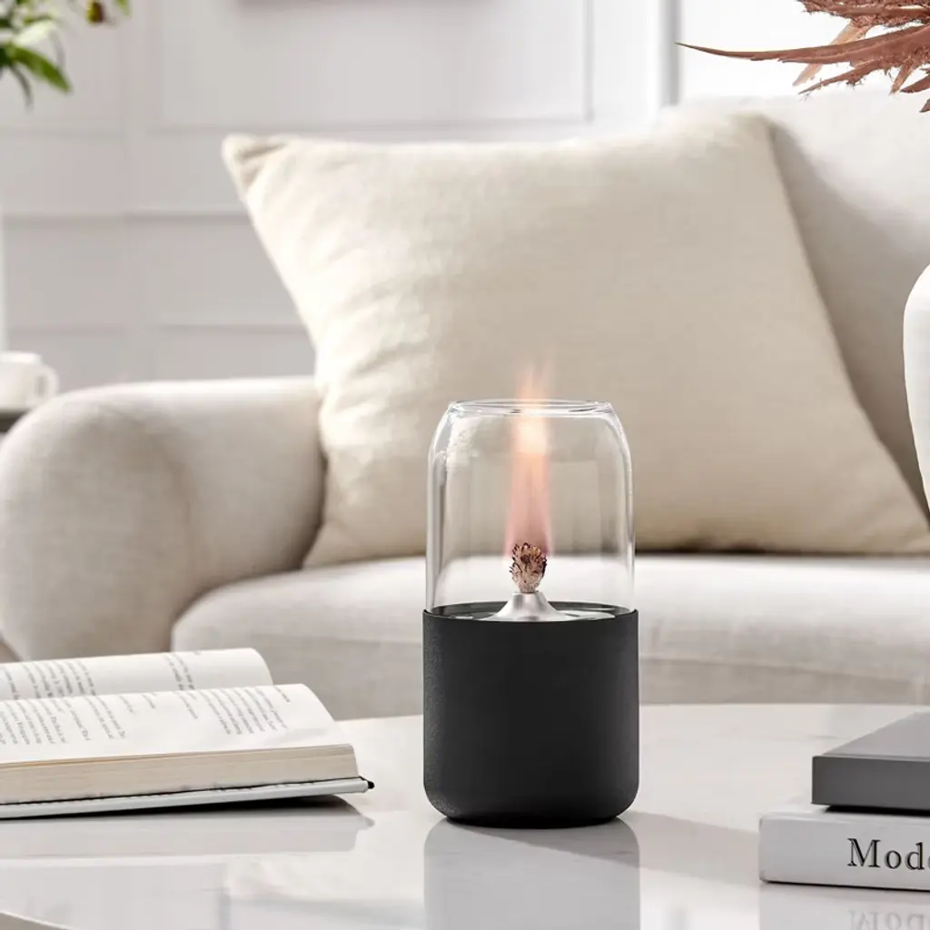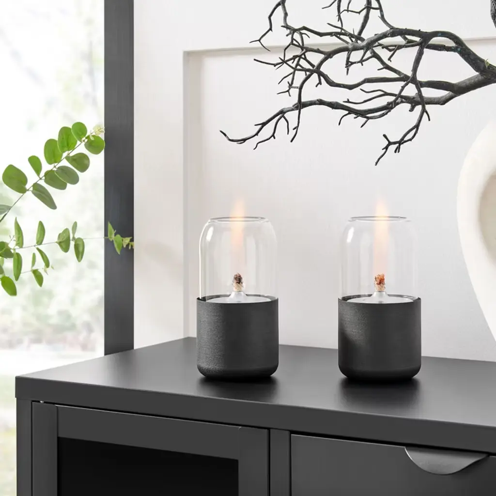 Recreate the soothing ambiance of a fireplace without the smoke, soot, ash, and the smell of melting wax with the Danya B. Ambrose Oil Lamp Style Rope Wick Set of 2 Fire Pits. The elegant contemporary design of metal and glass instantly elevates the sophistication of any indoor or outdoor space while also doubling as a fantastic heat source. The base of the fire pit houses and disguises the functional rope wick and a metal container. Simply open the metal container, fill with bioethanol fuel, replace the wick top, and ignite the wick for an elegant and clean-burning experience. The cylindrical glass is easily removable for easy cleaning and access to the wick base. This fire pit set also includes a metal snuffer to extinguish the wick flame at your convenience. Easy to integrate into any d�cor and dinner party, on your coffee table, end table, or dinner table, this bio ethanol fireplace set will light up your room and heat up your life! *Fuel is not included. Burn time averages 45 minutes.