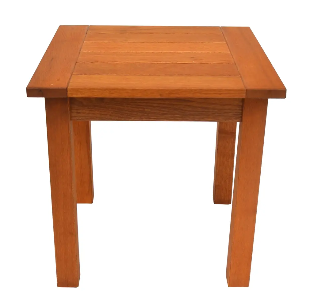 The Americana Side Table in Natural Finish is made to complement our all weather rocking chairs, but its design and scale work well next to almost any outdoor chair. It is available in Natural finish, White, and Black. Built from weather-resistant Robinia, a material similar to teak yet paintable, this side table will last a lifetime. The 18 in. square size is perfect for most any space and is large enough to accommodate a cold drink and a good book. Easily Assembled in less than 5 minutes with included instructions. Matching Rocker Available Here