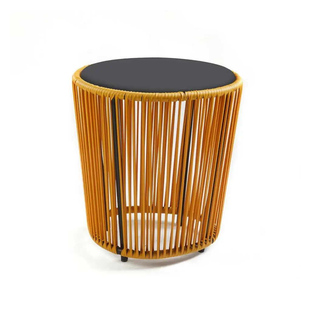 METAL TOPThe Cartagenas side table makes a perfect companion to any lounge area. Designed by Sebastian Herkner, the piece features rounded corners and a frame that gently tapers towards the base. Their curved aesthetic corresponds perfectly with the lounge and cocoon chairs of the series, while these tables will also liven up any seating area with exciting colours. This collection is an ode to Cartagena, the lively coastal metropolis on Colombia's Caribbean coast. It has long been an energetic melting-pot, where Colombia’s diverse ethnic communities live side-by-side, creating a city landscape where various cultural backgrounds merge with each other. When walking through its streets and alleyways, new colours, patterns, and perspectives await behind every corner – just like these pieces reveal a new side from every angle. The designs come with table tops made from either marble or metal – both materials create a calming contrast to the radiant colours. The metal version can also be used outdoors.Like the rest of the Cartagenas collection – which includes dining chairs, lounge chairs, dining tables and a cocoon chair – the tables' webbing is hand-woven in ames ateliers in Bogota, Colombia’s capital. The skilled craftspeople work with coloured strings made from recycled PVC and tie them artfully around a steel frame.