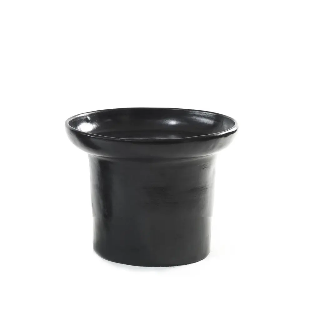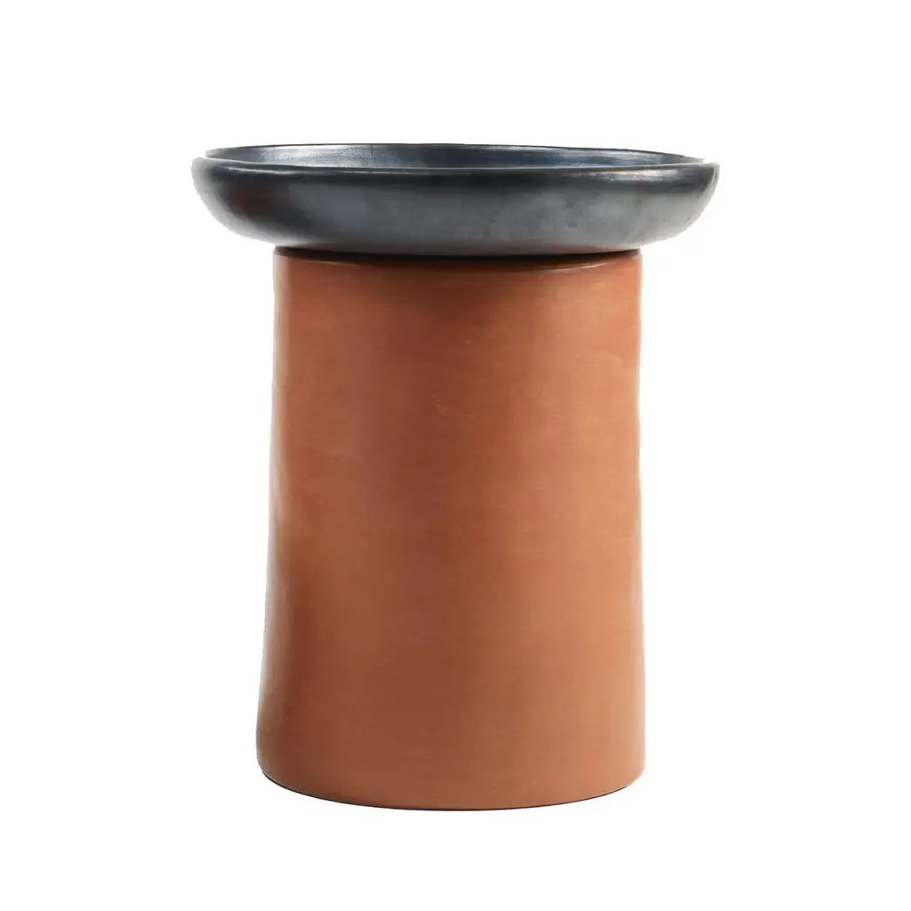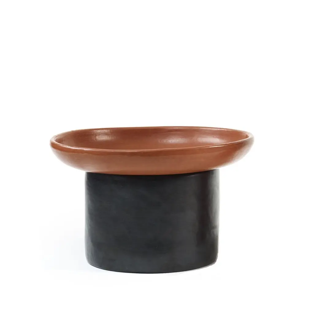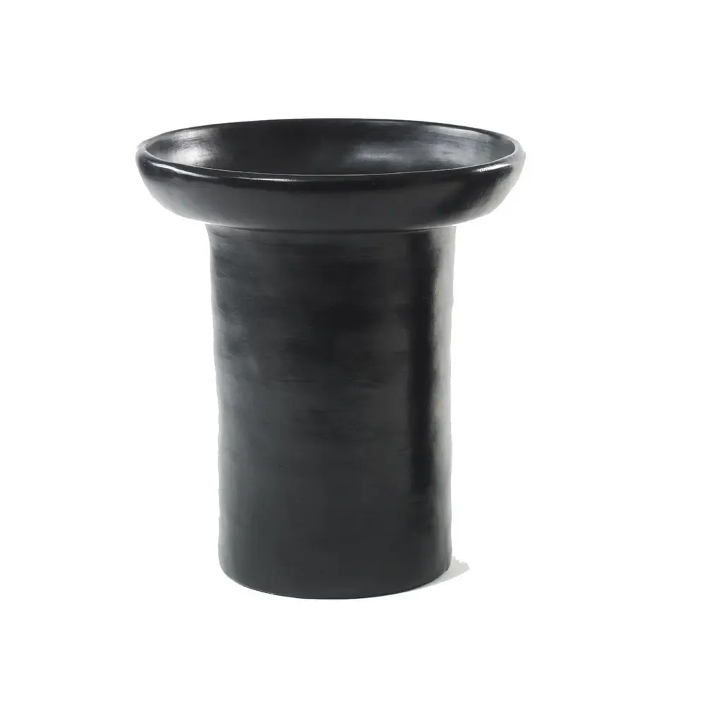 Ames collaborates for the production of these ceramics with two family-owned businesses based in Tolima, a province that’s been a centre for pottery making and ceramic production for more than 300 years. Their workshops employ more than 70 people, many of them are family members, with specialists for each production stage – from clay digging to kiln firing to polishing. One of the few tools the makers use - most of the work is done by hand - are corn husks. Once water and clay have been mixed, the mixture is simply left to dry in the sun. This natural process requires stable weather conditions and air temperatures of more than 35 degrees Celsius. The dark glaze is applied to the vases before they go into a kiln that’s fired by wood. As the last step, the pieces are polished with semi-precious stones to create a subtle shimmer. To manufacture these ceramics, ames workswith two family-owned businesses based inTolima. This province has been a centre forpottery making and ceramic production formore than 300 years. Their workshops employmore than 70 people, many of them are familymembers, with specialists for each productionstage – from clay digging to kiln firing topolishing.