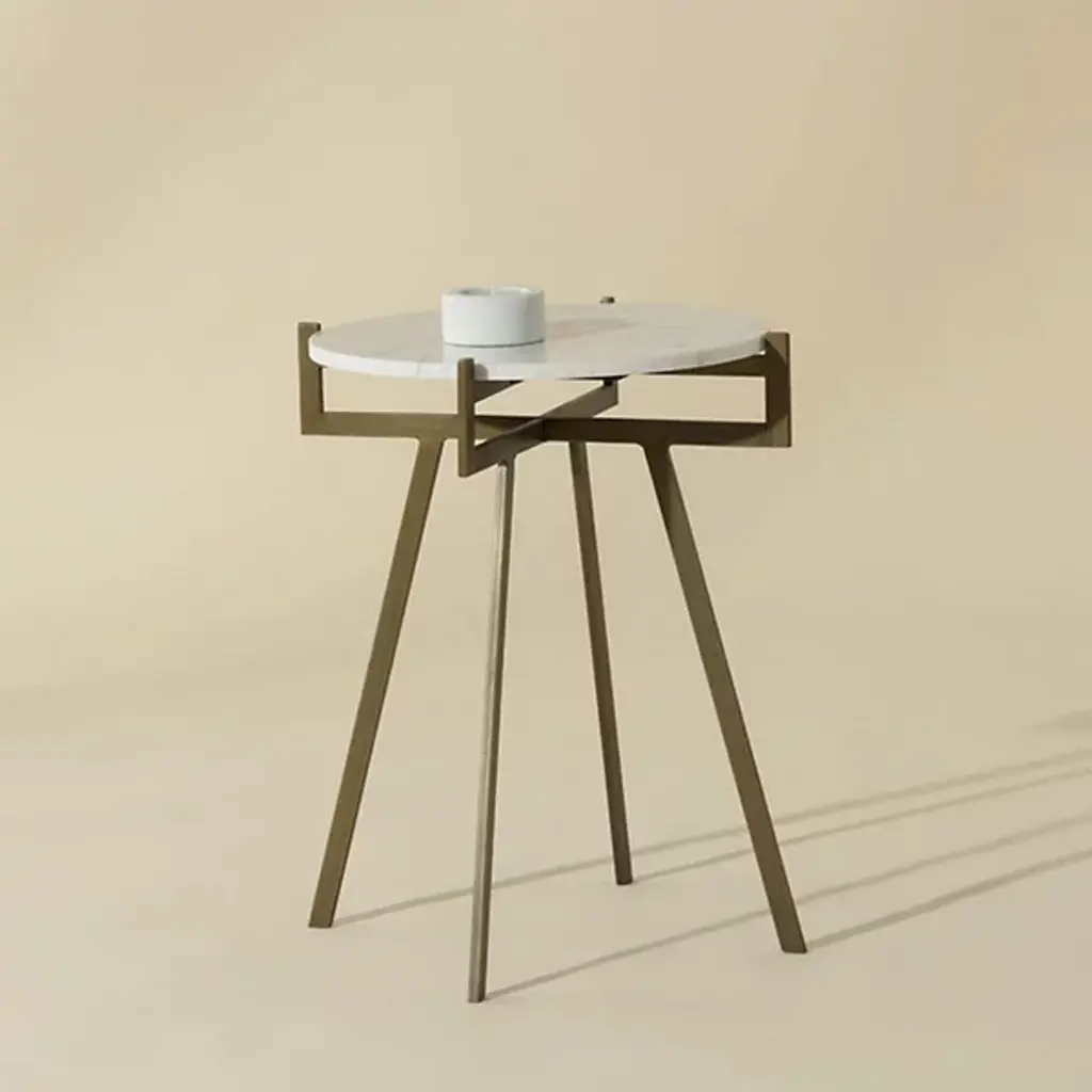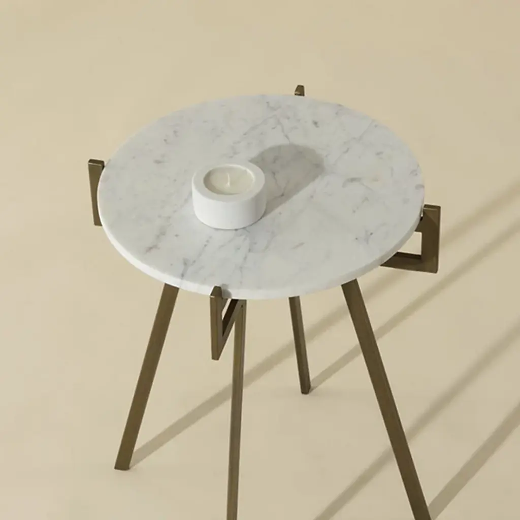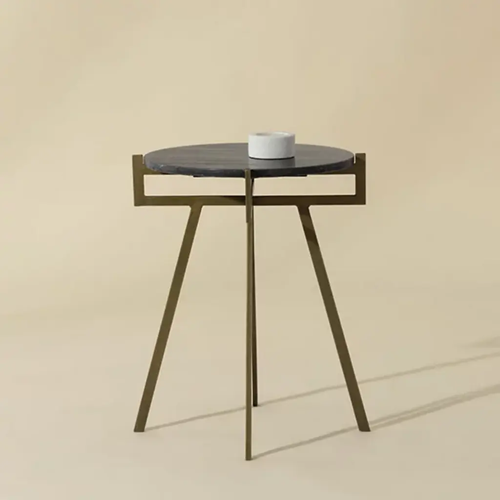 Elevate your space with the Anak End Table from Renwil, a perfect blend of rustic charm and refined elegance. The antique brass iron frame supports a striking round marble top. Each piece showcases the natural beauty of marble, with unique veining, pitting, fissures, and color variations that make it truly one-of-a-kind. Crafted by skilled artisans in India, this table exemplifies exquisite artistry and attention to detail. Embrace the inherent imperfections and subtle variations that give this piece its distinctive character, adding a touch of sophistication to any room.