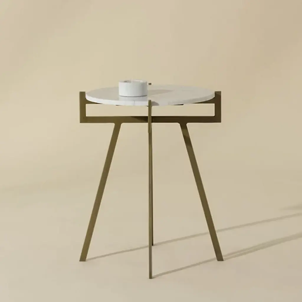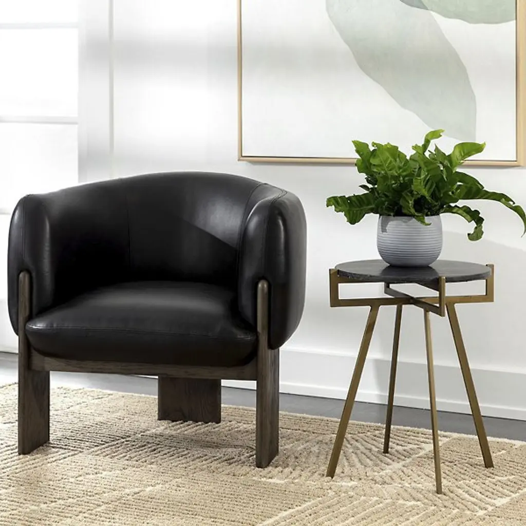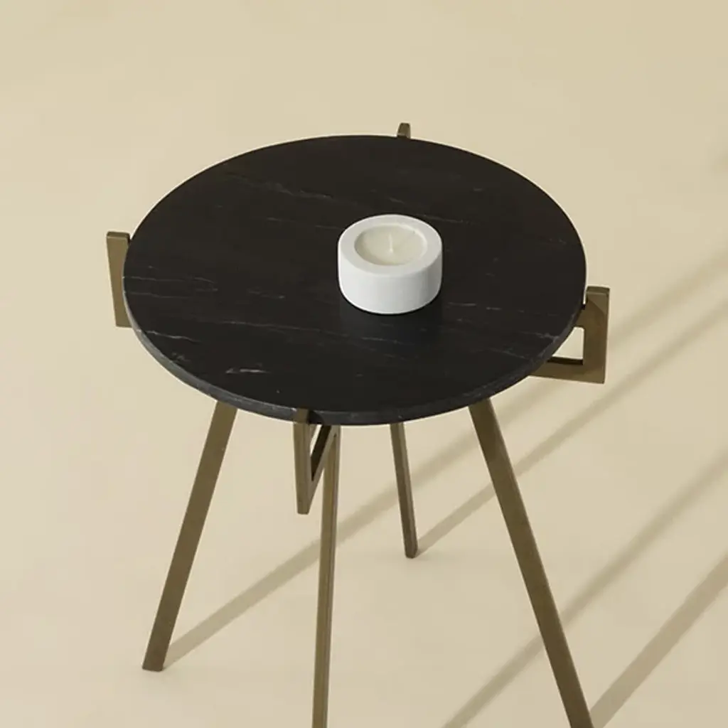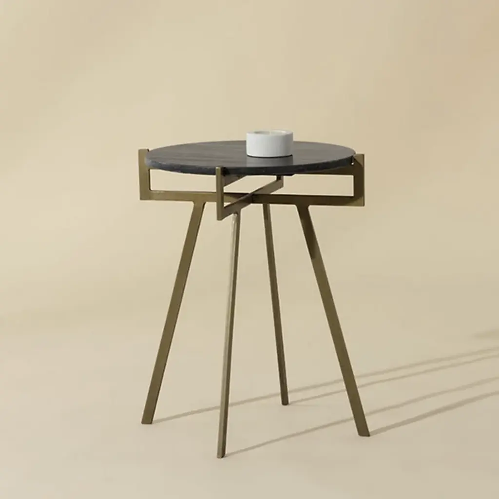 Elevate your space with the Anak End Table from Renwil, a perfect blend of rustic charm and refined elegance. The antique brass iron frame supports a striking round marble top. Each piece showcases the natural beauty of marble, with unique veining, pitting, fissures, and color variations that make it truly one-of-a-kind. Crafted by skilled artisans in India, this table exemplifies exquisite artistry and attention to detail. Embrace the inherent imperfections and subtle variations that give this piece its distinctive character, adding a touch of sophistication to any room.